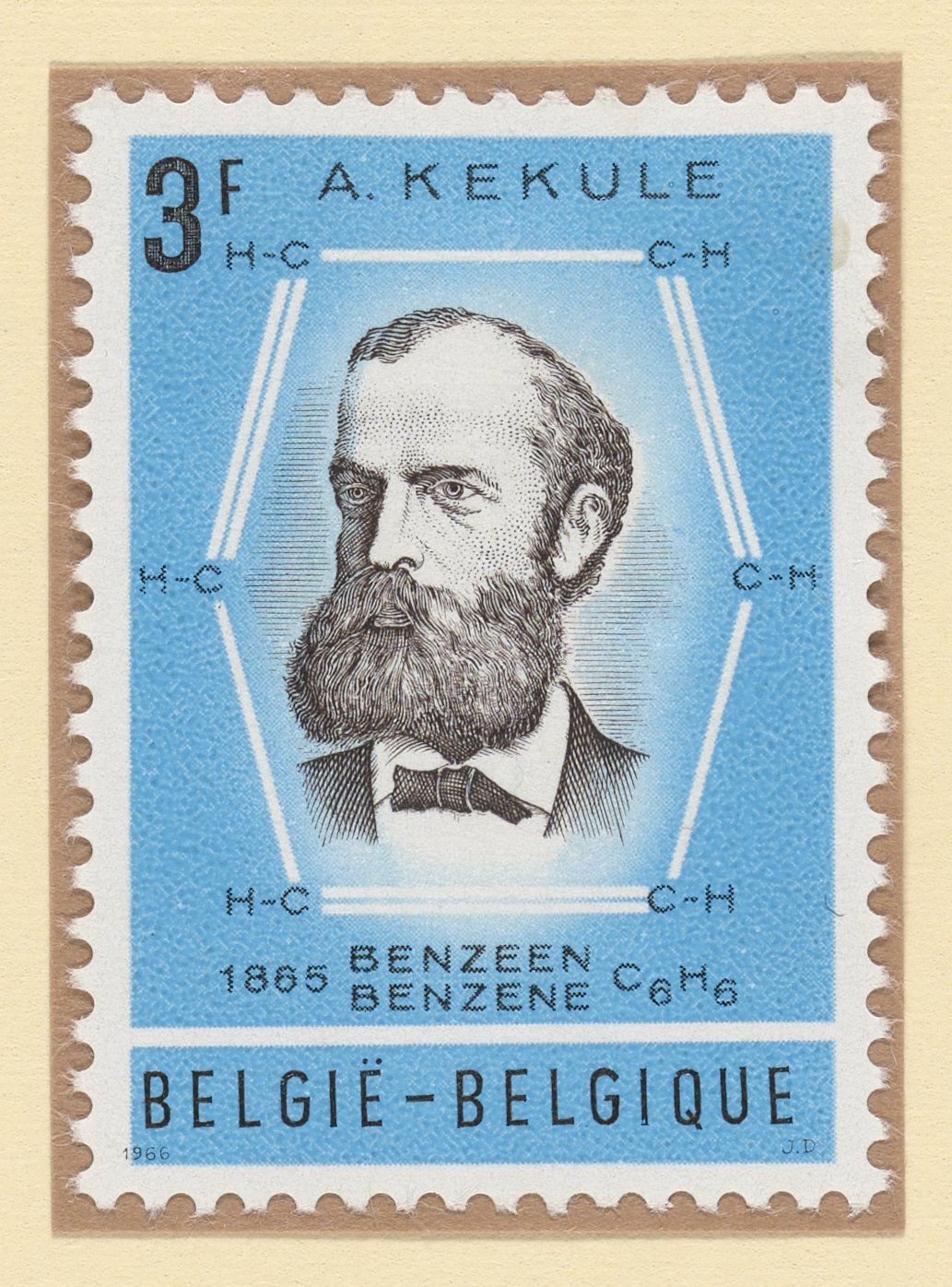 Bast, Jean De. “Stamp Commemorating August Kekulé.” Belgium, 1966. Witco Stamp Collection, Box 1. Science History Institute. Philadelphia. https://digital.sciencehistory.org/works/d1xlr9u.