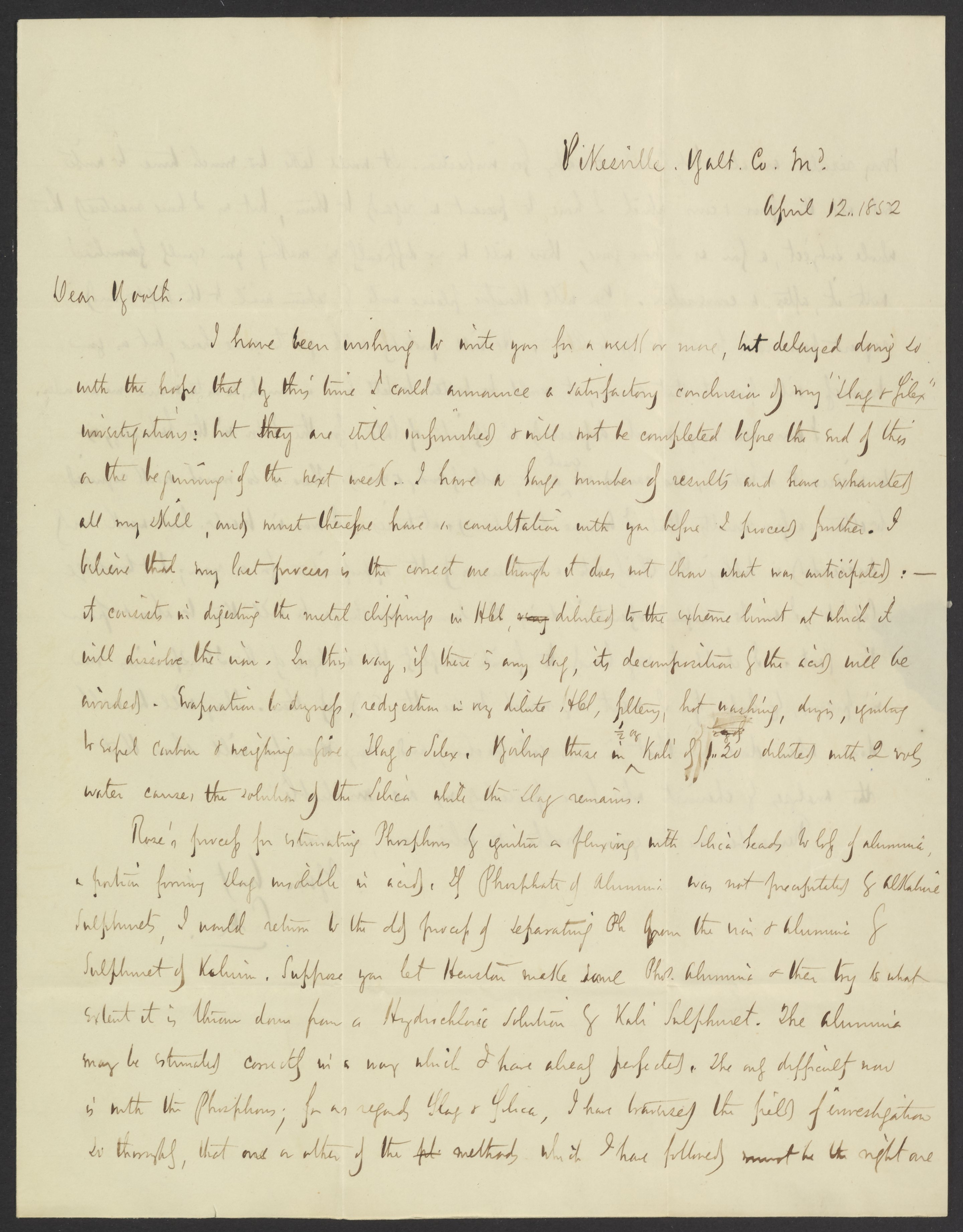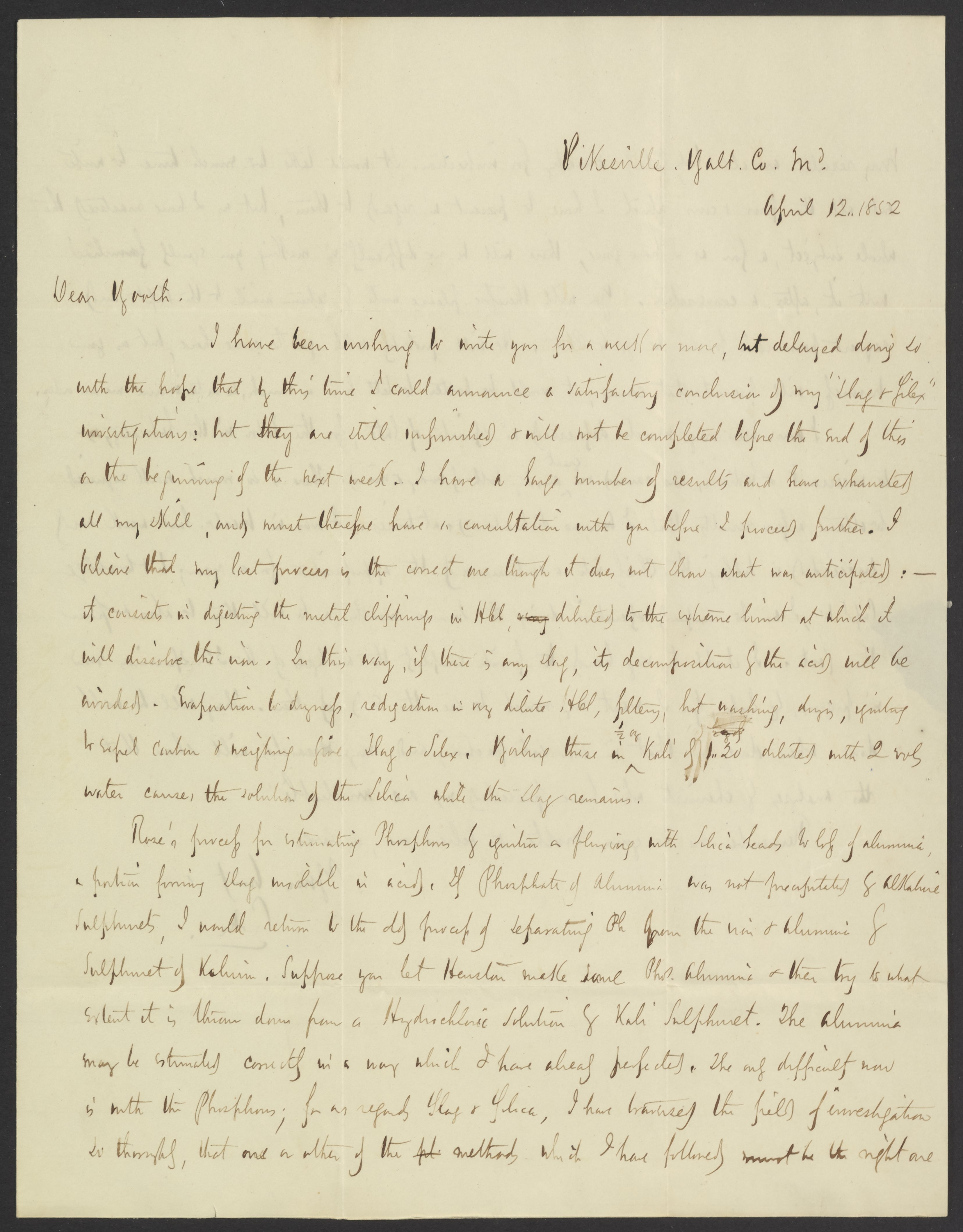 Morfit, Campbell. “Letter from Campbell Morfit to James Curtis Booth, April 12, 1852,” April 12, 1852. Papers of James Curtis Booth, Box 1, Folder 10. Science History Institute. Philadelphia. https://digital.sciencehistory.org/works/d1zylxm.