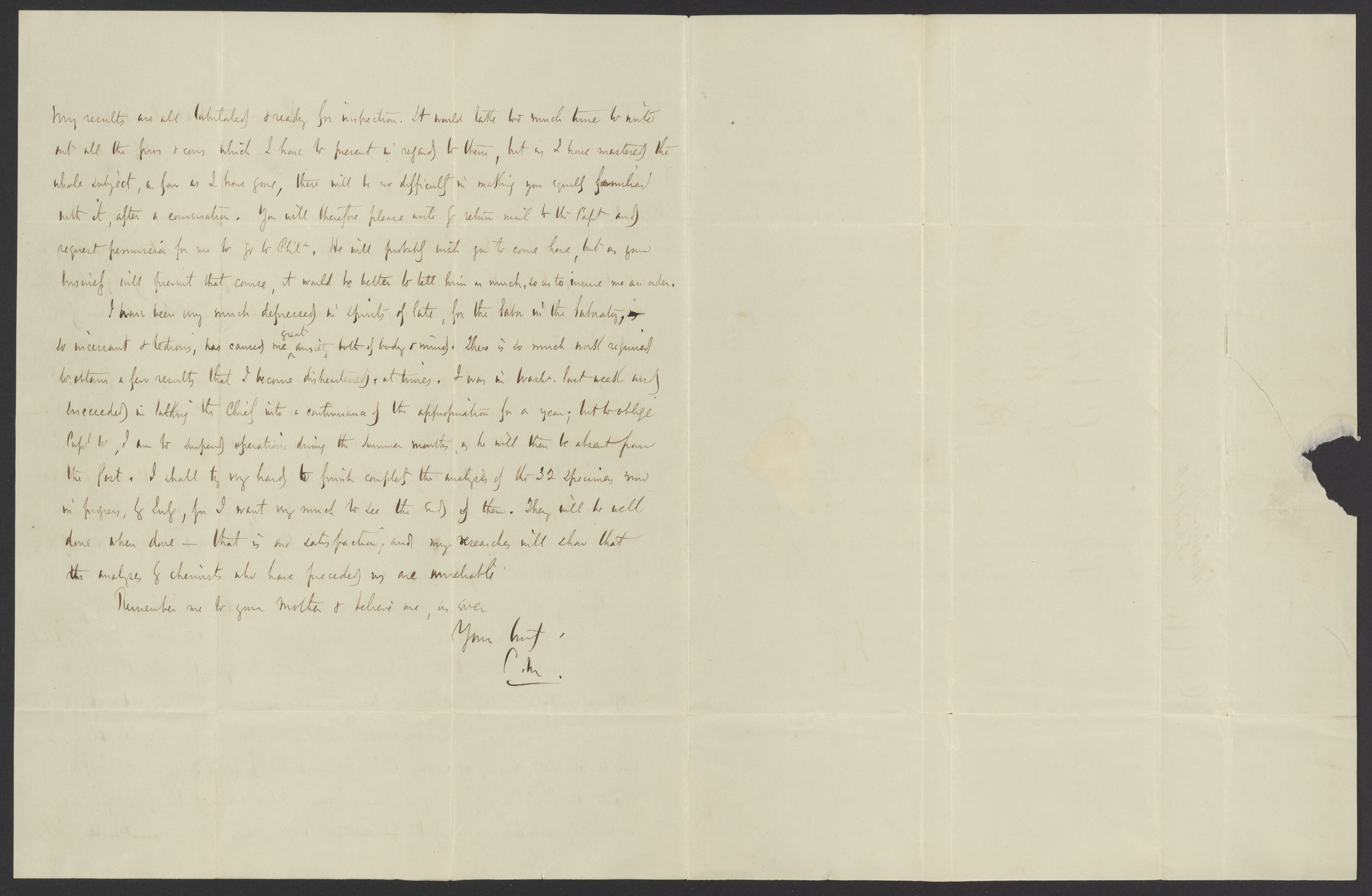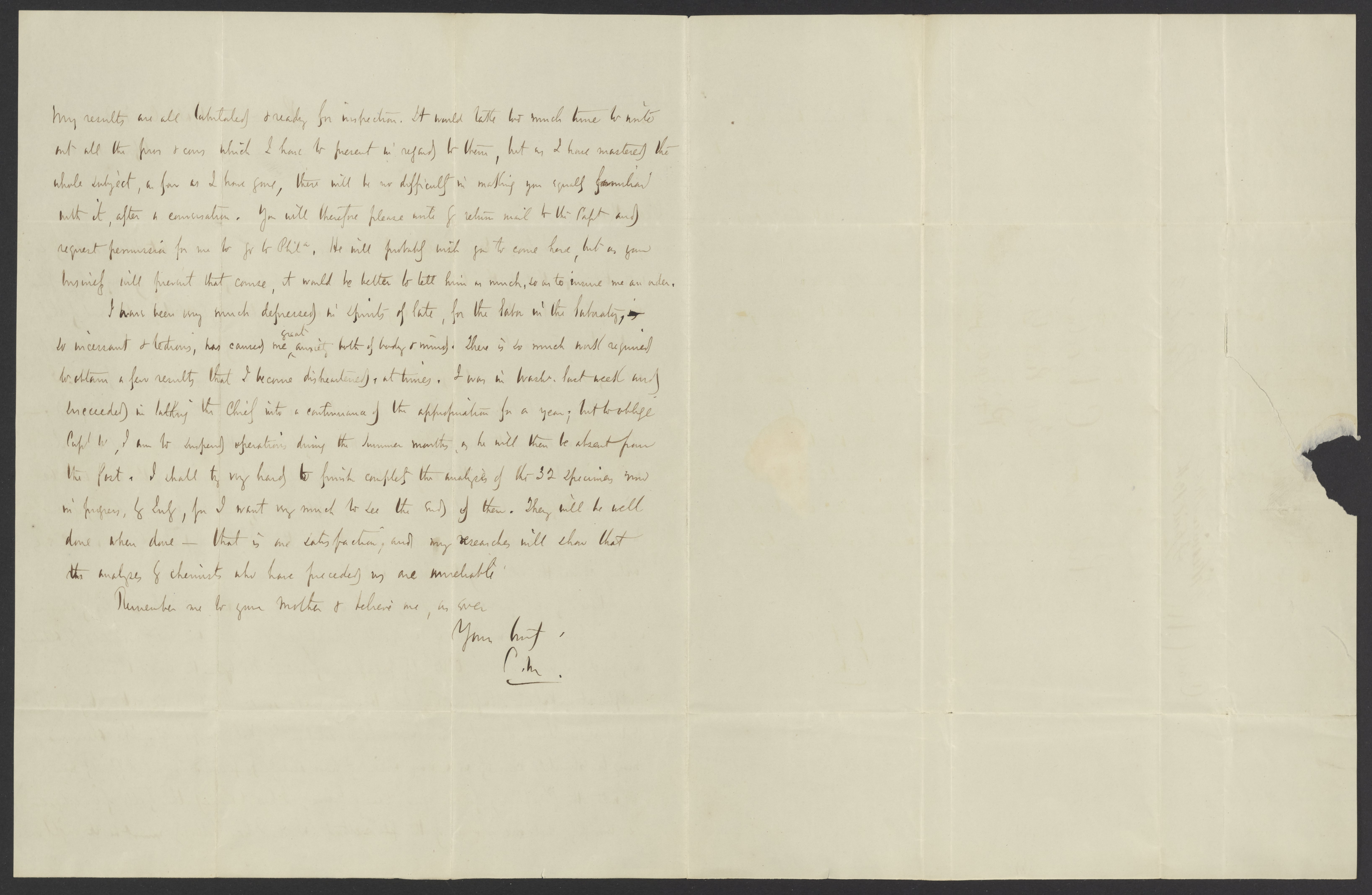 Small JPG1200 x 1535px — 219 KBLarge JPG2880 x 3683px — 890 KBFull-sized JPG3311 x 4234px — 1.1 MBOriginal fileTIFF — 3311 x 4234px — 40.2 MBCampbell Morfit (1820-1897), a distinguished chemist and co-editor with James Curtis Booth (1810-1888) of the Encyclopedia of Chemistry (1850), writes to complain to Booth about the tedious nature of the work in his lab.