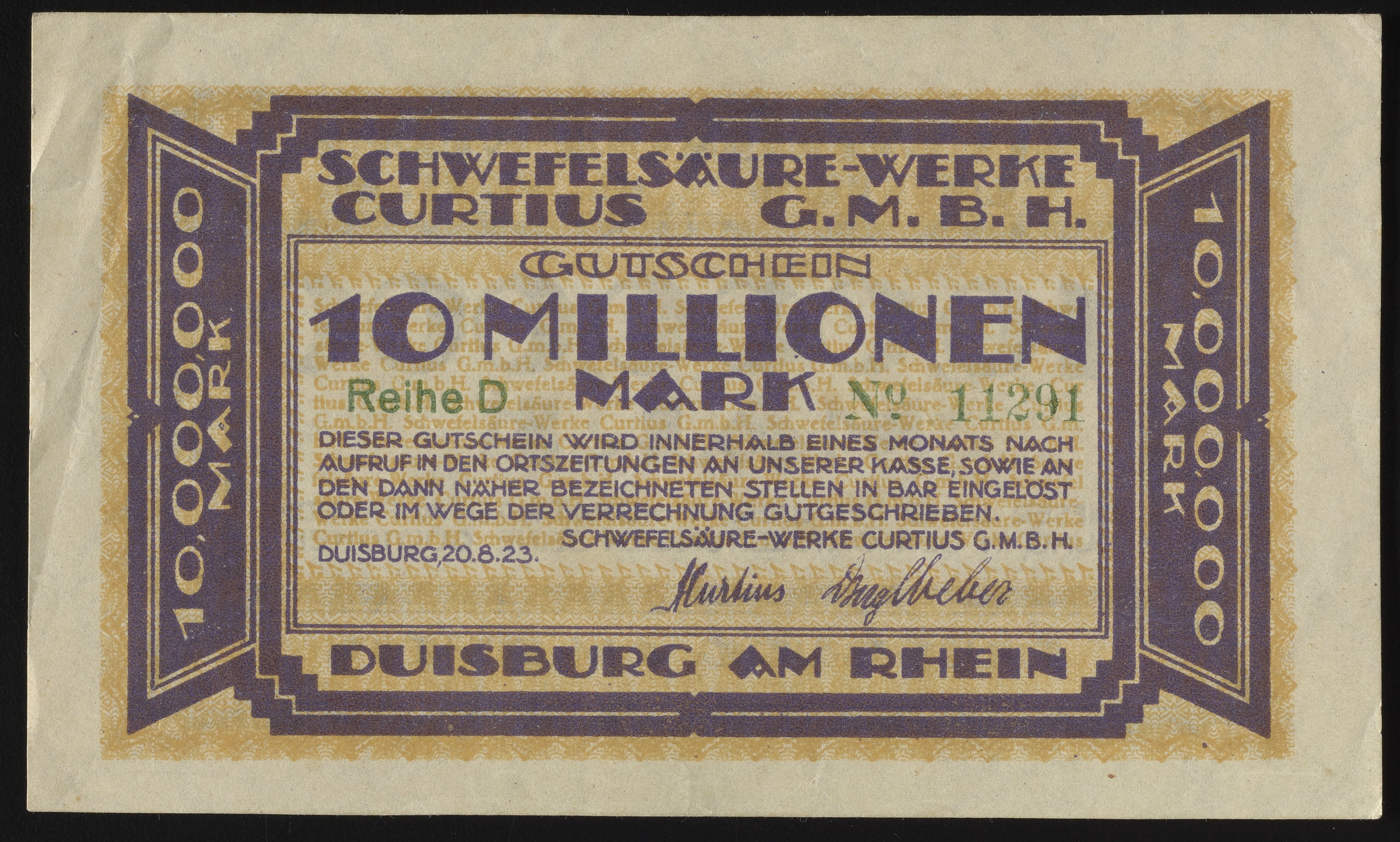 Schwefelsäure-Werke Curtius GmbH Ten Millionen Mark Gutschein