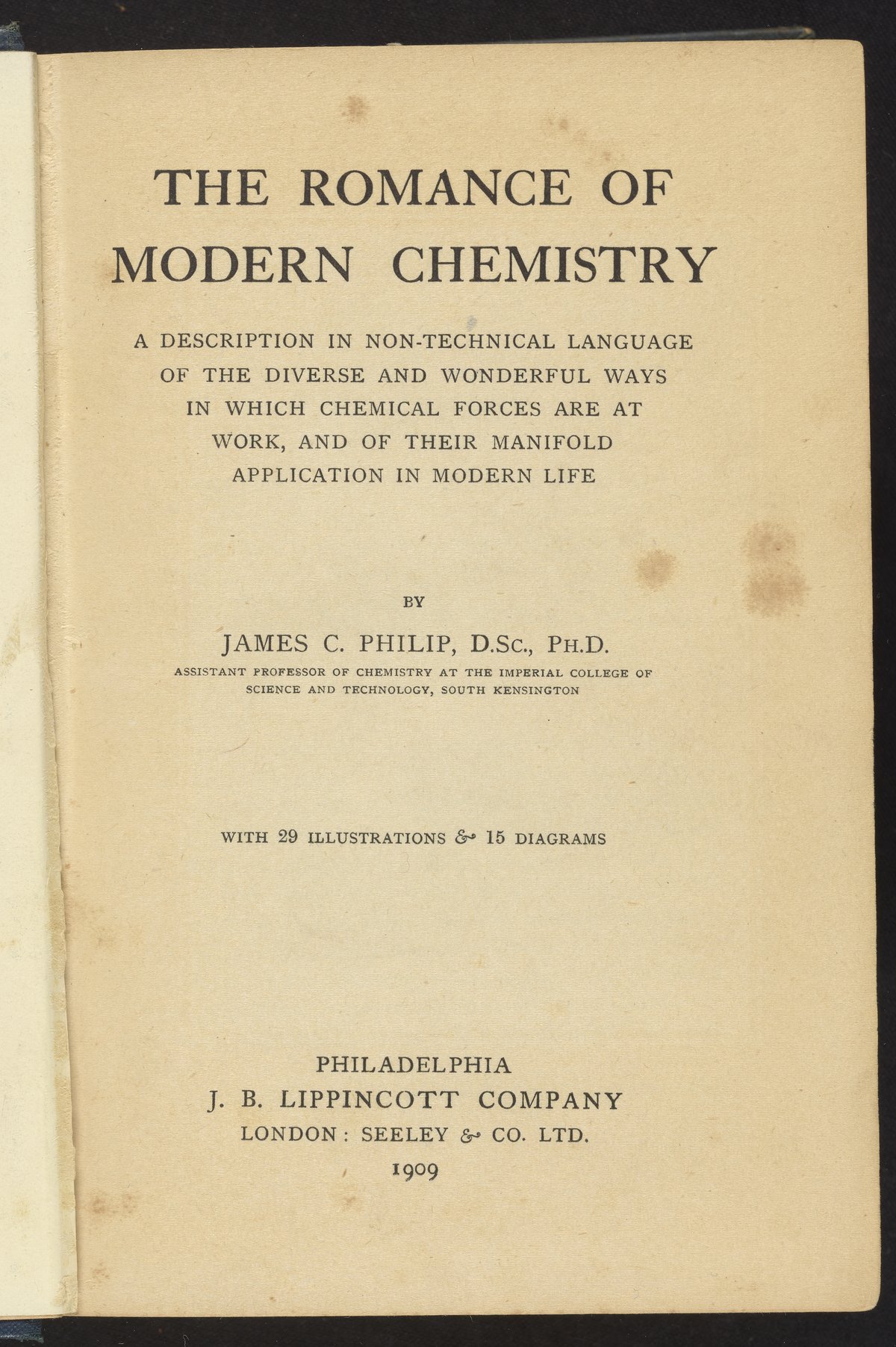 Philip, James Charles. “The Romance of Modern Chemistry.” London, England, 1909. https://digital.sciencehistory.org/works/d217qq890.