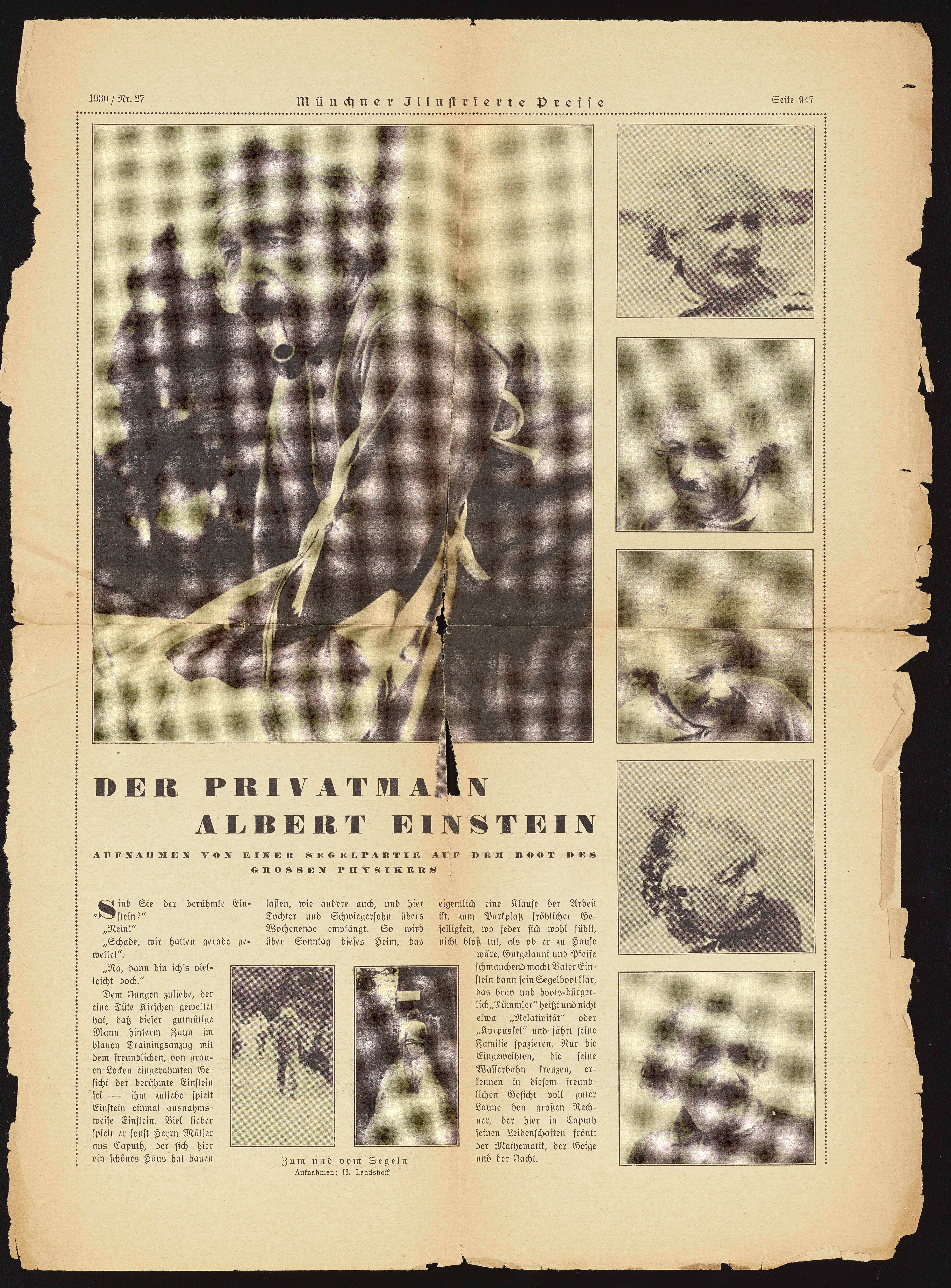 “Der Privatmann Albert Einstein.” Münchner Illustrierte Presse, July 6, 1930. Papers of Georg and Max Bredig, Box 6, Folder 5. Science History Institute. Philadelphia. https://digital.sciencehistory.org/works/d4ld7qx.