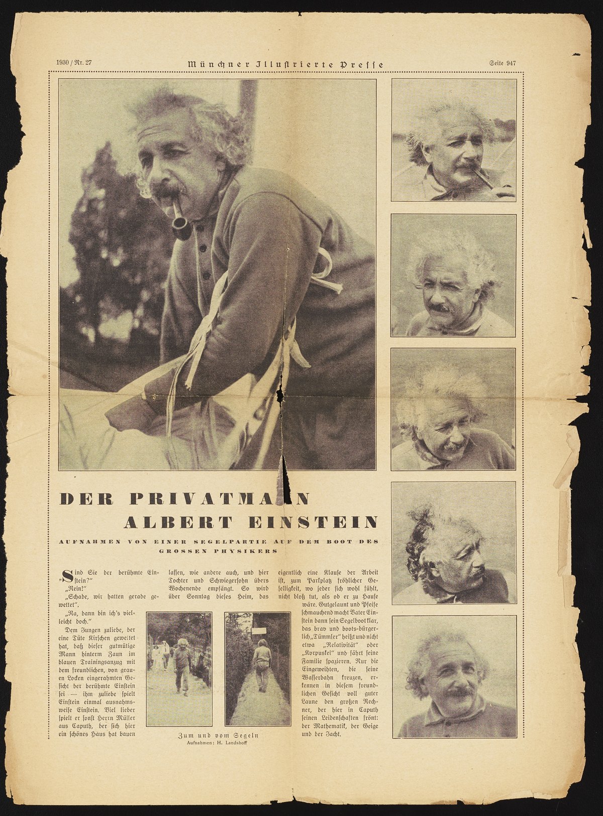 Small JPG1200 x 1613px — 349 KBLarge JPG2880 x 3871px — 2.8 MBFull-sized JPG4648 x 6247px — 7.3 MBOriginal fileTIFF — 4648 x 6247px — 83.1 MBArticle translating in English to The Private Man, Albert Einstein published in the Münchner Illustrierte Presse on July 6, 1930. The front page features Albert Einstein (1879-1955) in his boat "Tümmler".