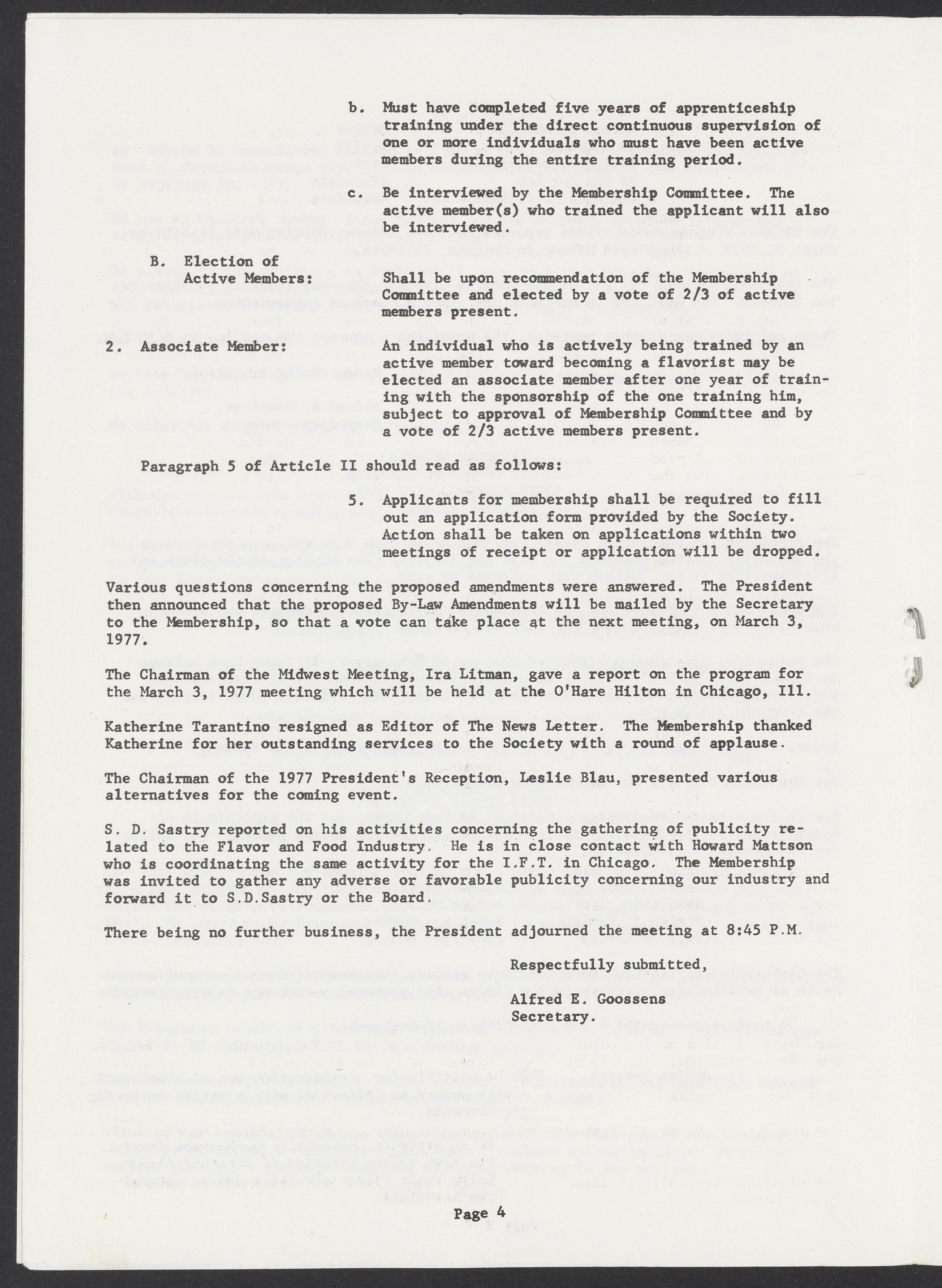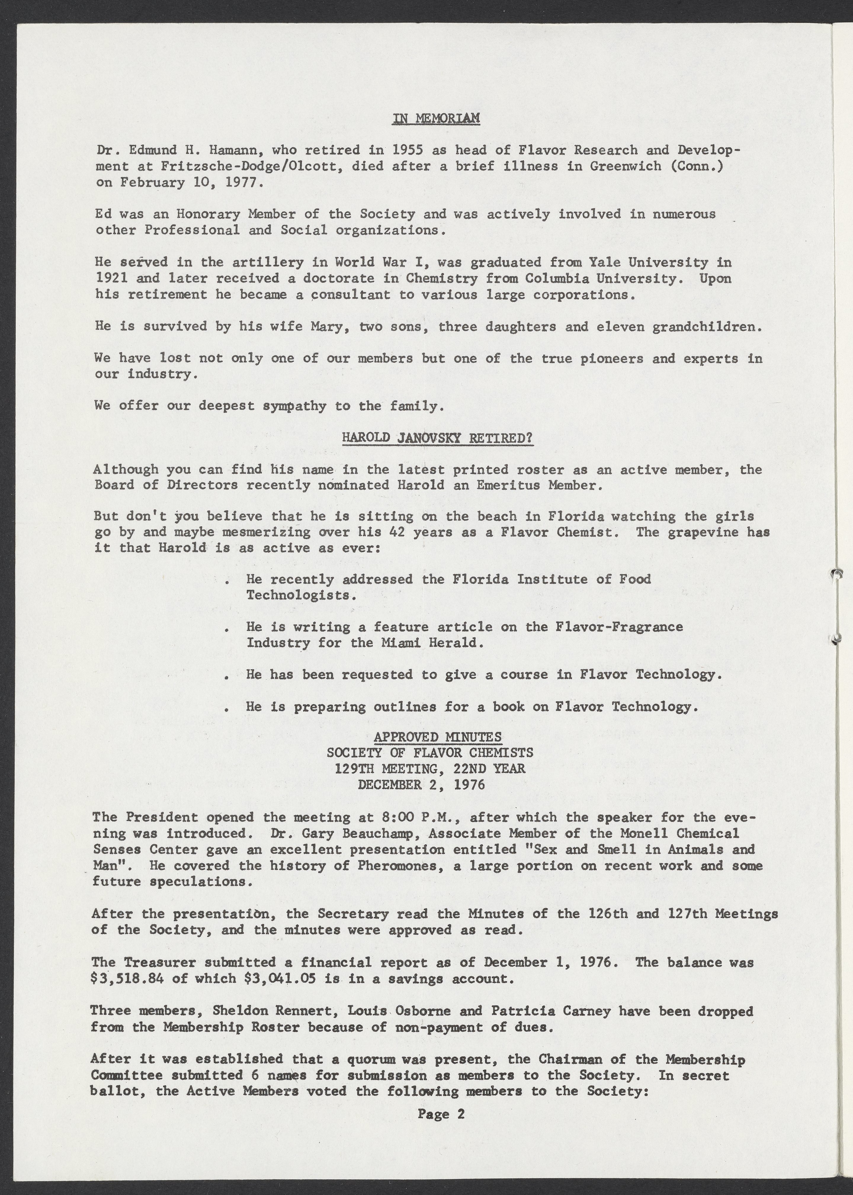 Society of Flavor Chemists newsletter, March 1977