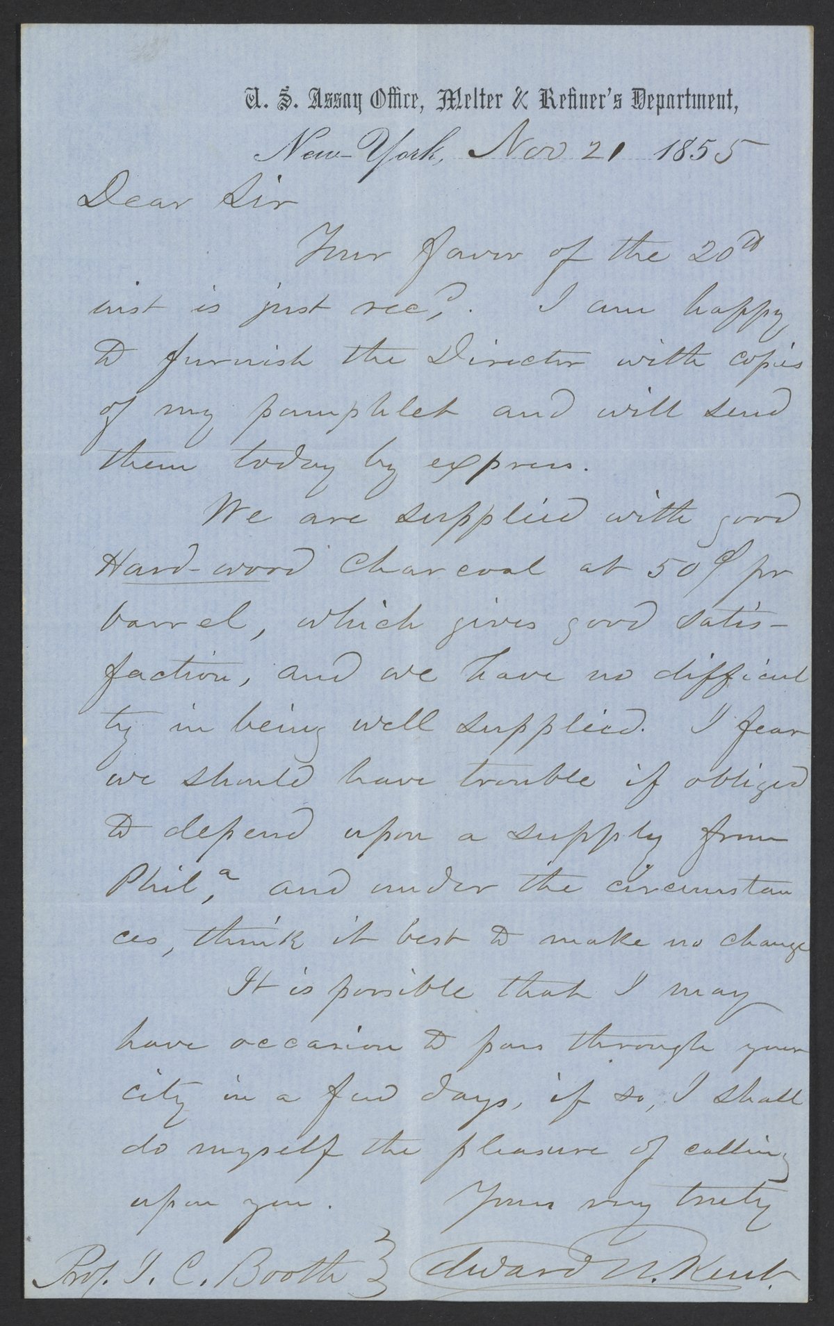 Letter from Edward N. Kent to James Curtis Booth, November 21, 1855