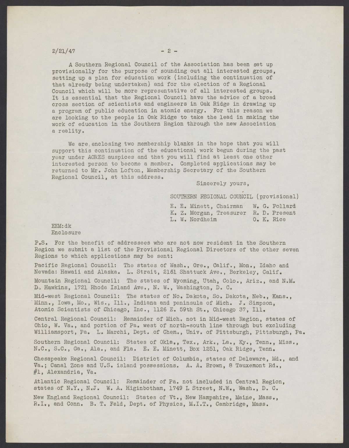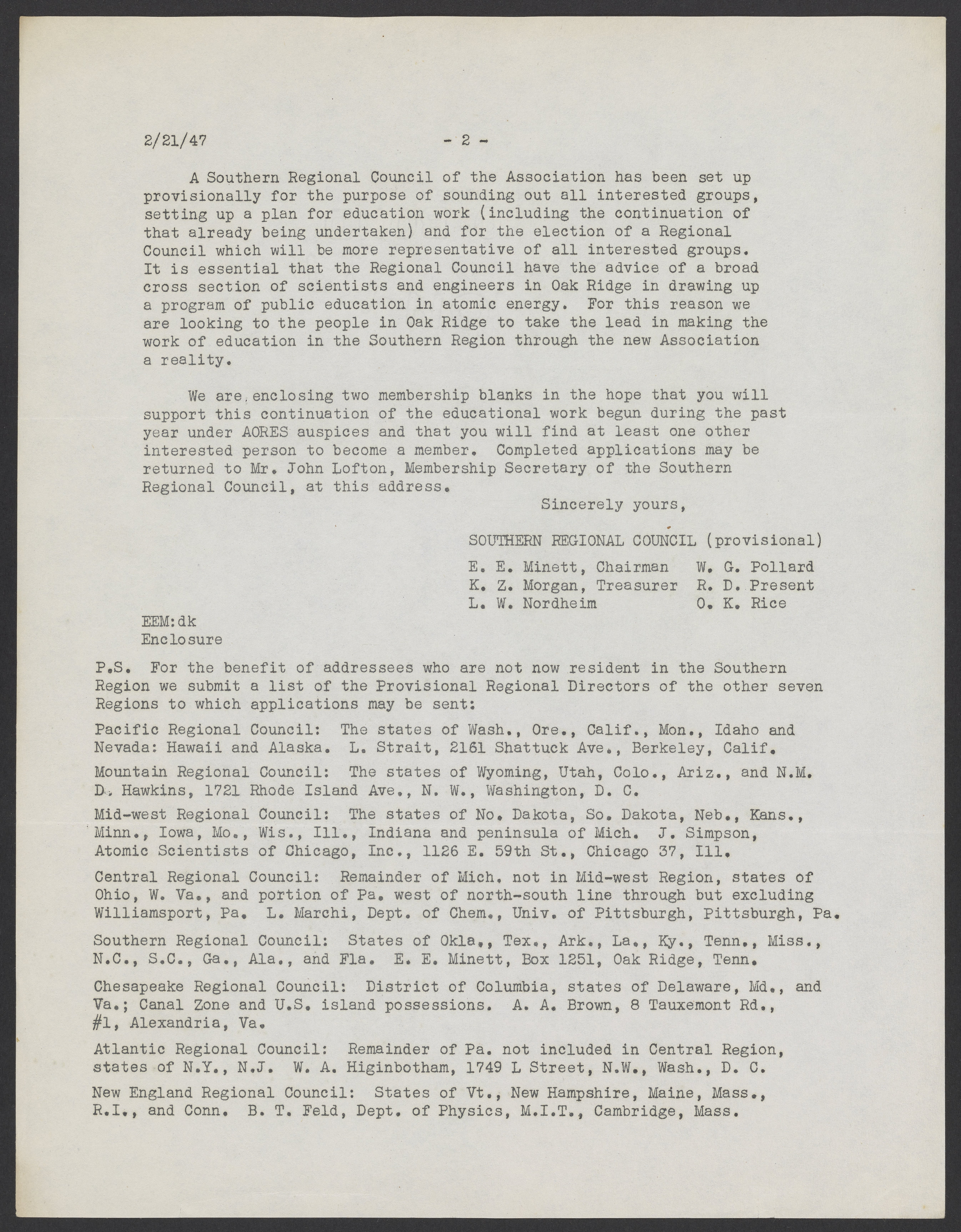 Small JPG1200 x 1545px — 297 KBLarge JPG2880 x 3707px — 1.7 MBFull-sized JPG5386 x 6933px — 6.1 MBOriginal fileTIFF — 5386 x 6933px — 107 MBLetter to the members of the Association of Oak Ridge Engineers and Scientists (AORES) from the newly formed Association of Scientists for Atomic Education (ASAE). ASAE was founded on December 19, 1946. It was created for scientists and engineers interested in educating others on the social implications of science.