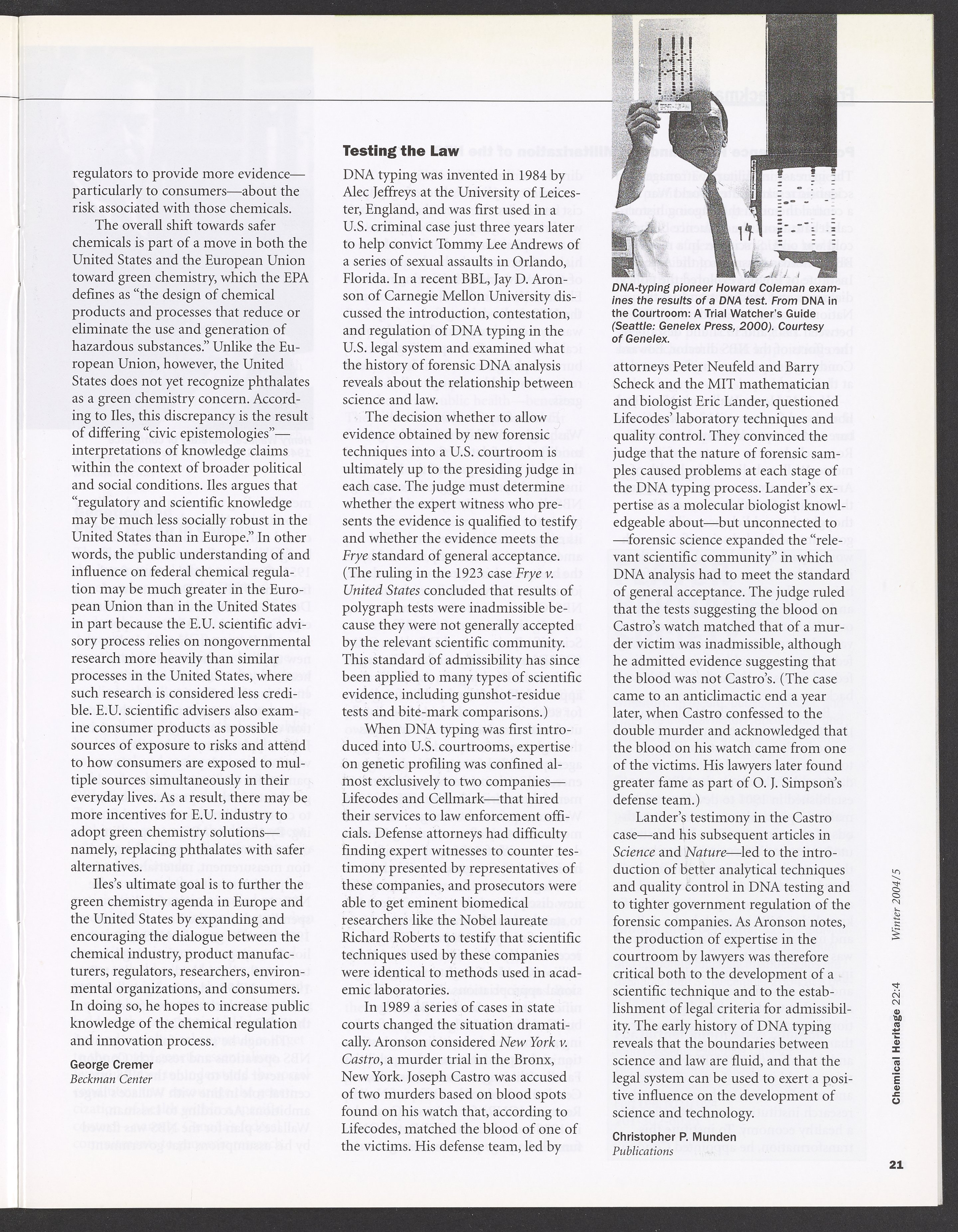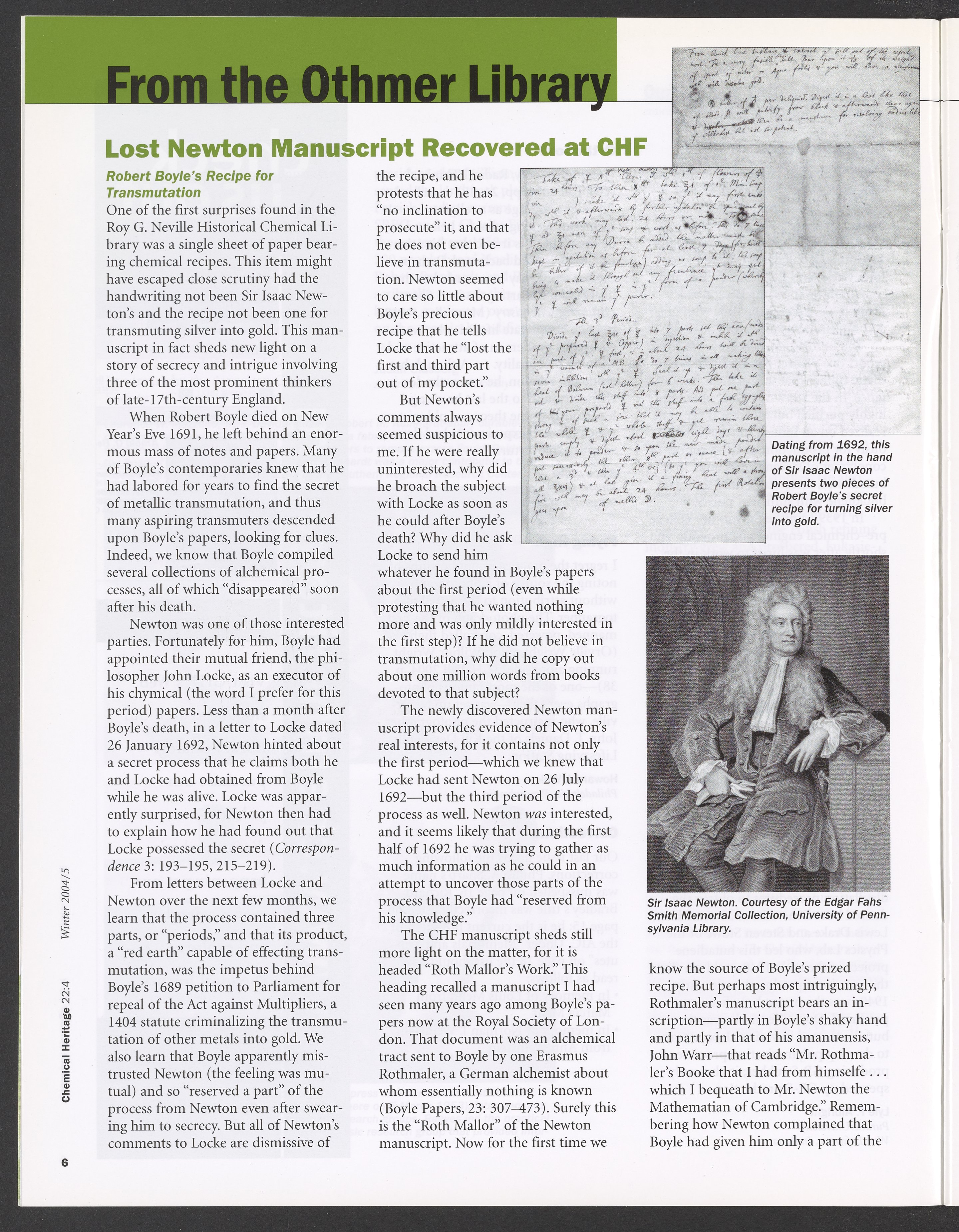 Chemical Heritage, Volume 22 Number 4