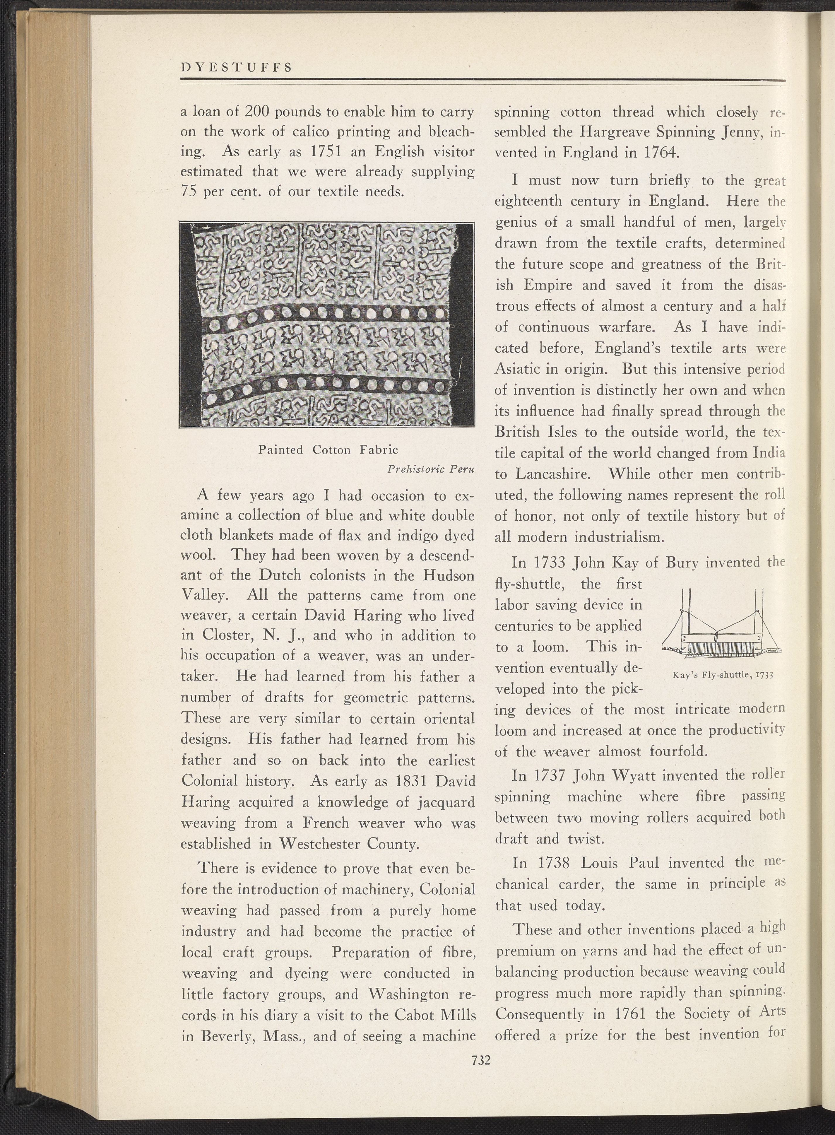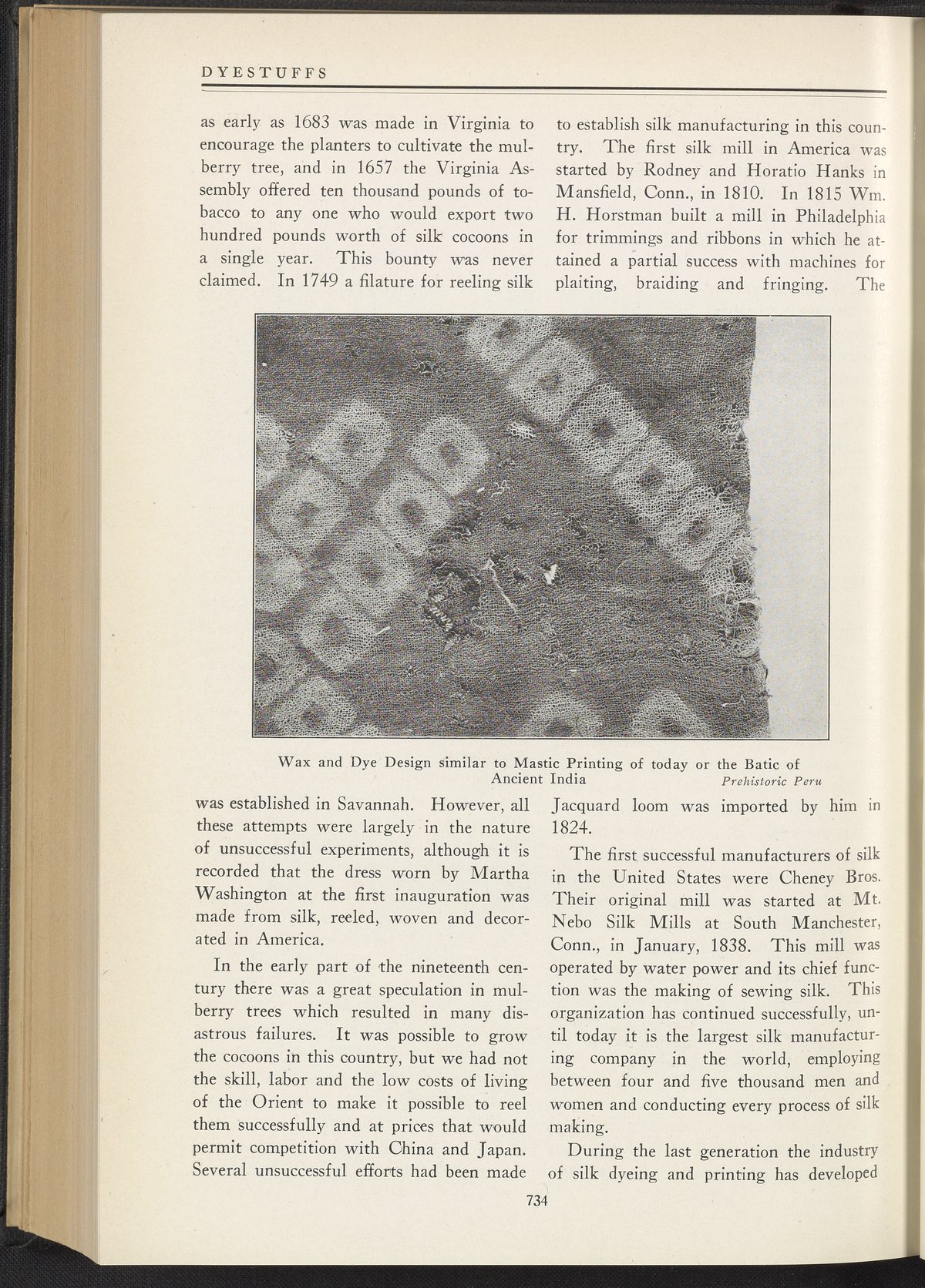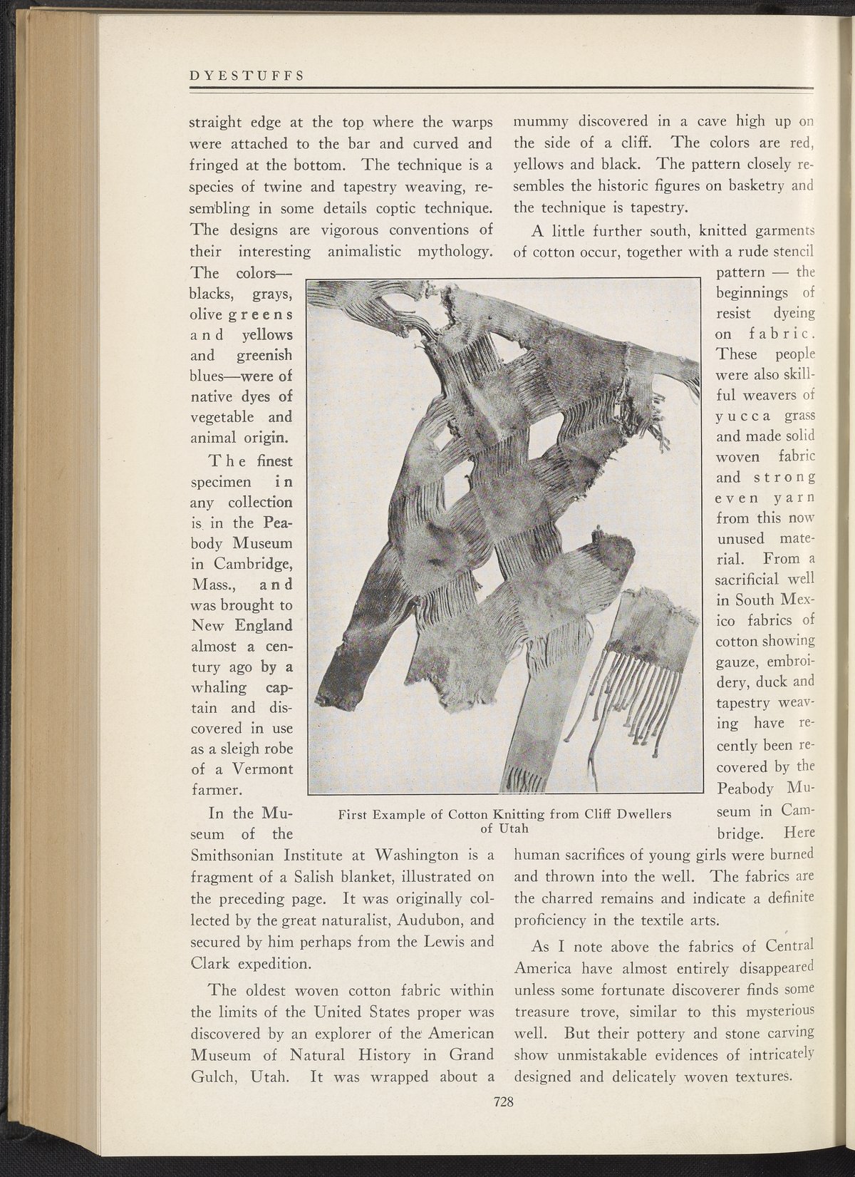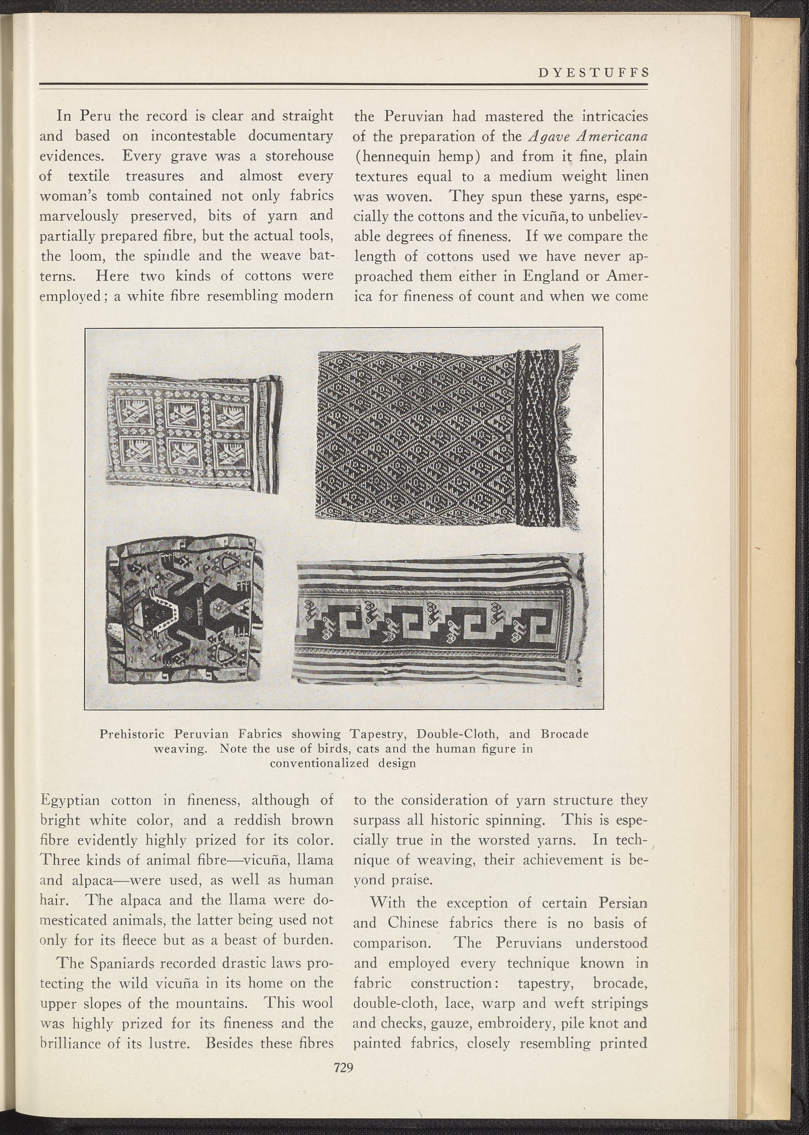The journal contains reprints of select articles from periodicals in the dyeing and textile fields. This issue is the "Textile Exposition Number" and contains an article by M. D. C. Crawford titled The History of Textiles in the New World in which the author discusses textile arts of indigenous peoples of the Americas. This issue includes black and white printed illustrations.