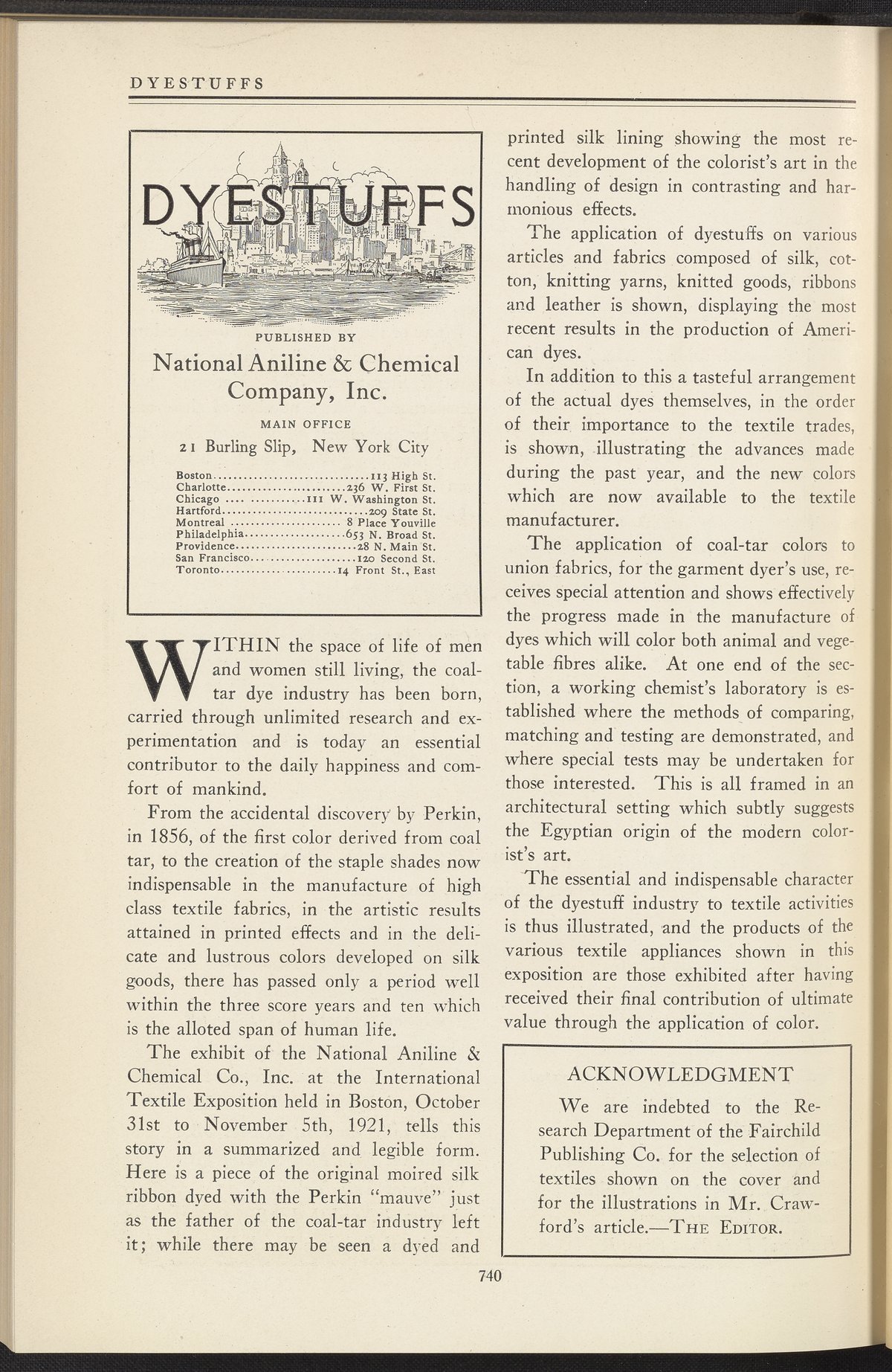 Allied Chemical & Dye Corporation. National Aniline Division. “Dyestuffs, Volume 22 Number 11.” New York, New York, November 1921. MR036D005. Science History Institute. Philadelphia. https://digital.sciencehistory.org/works/didbl4i.