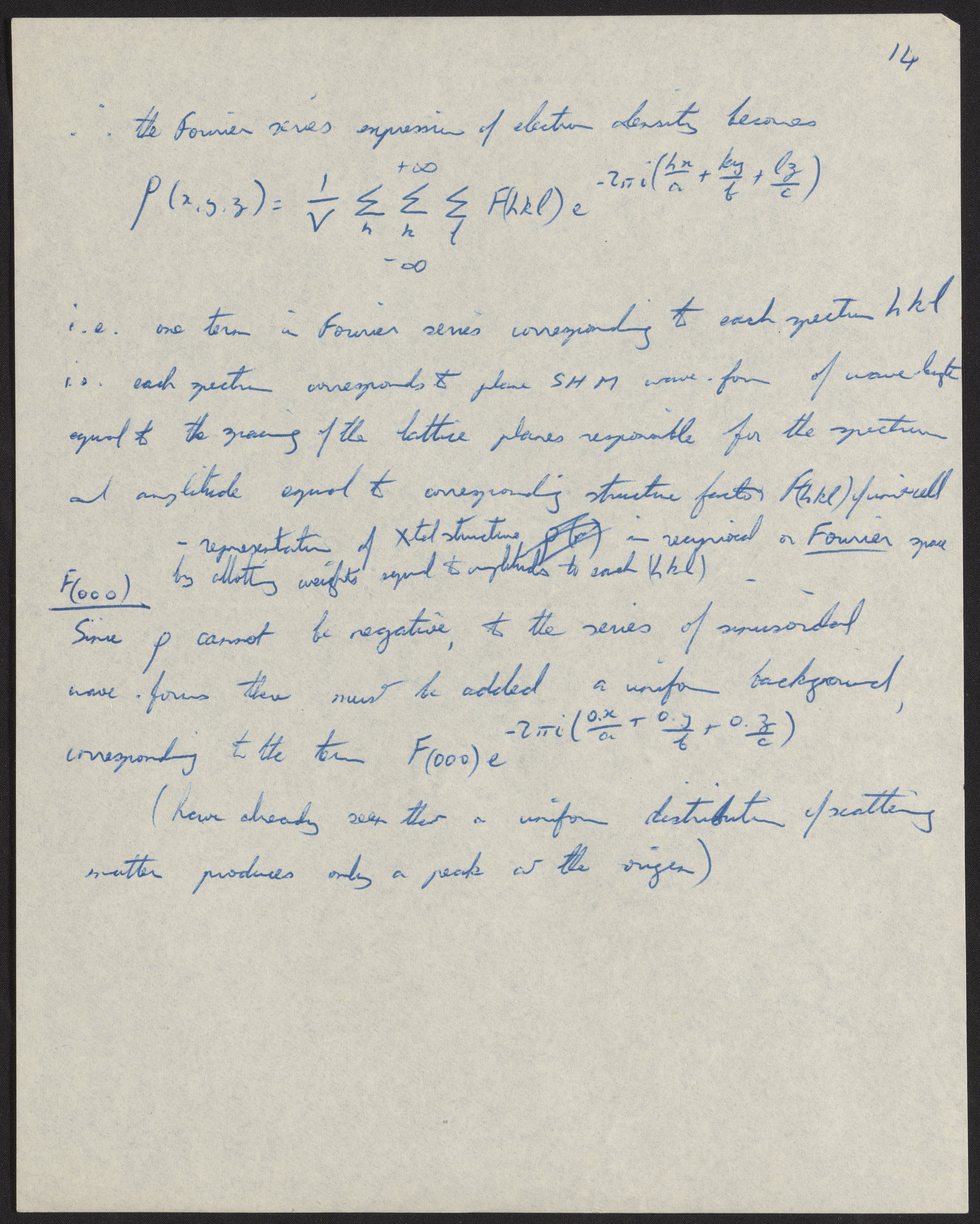 Franklin, Rosalind. “Five Lectures on x-Ray Diffraction,” 1953. History of Molecular Biology Collection, Box 9, Folder 10. Science History Institute. Philadelphia. https://digital.sciencehistory.org/works/dinupz6.