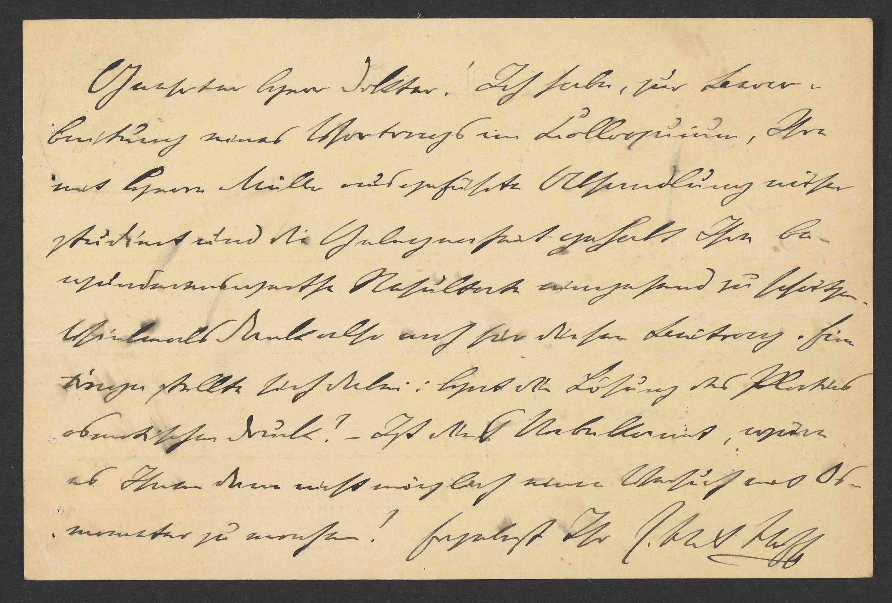Postcard from Jacobus H. van 't Hoff to Georg Bredig, February 1900