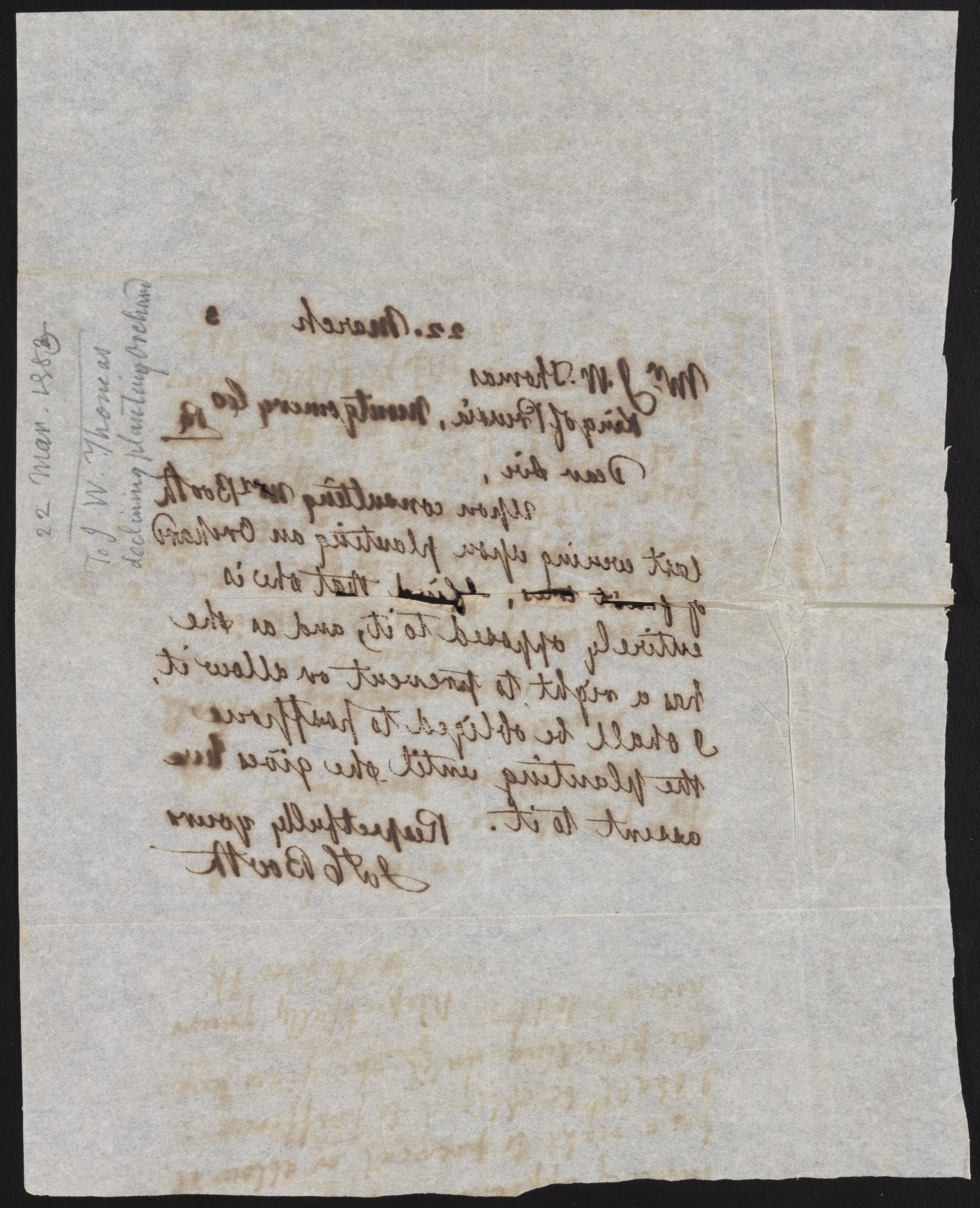 Letter from James Curtis Booth to J.W. Thomas, March 22, 1883