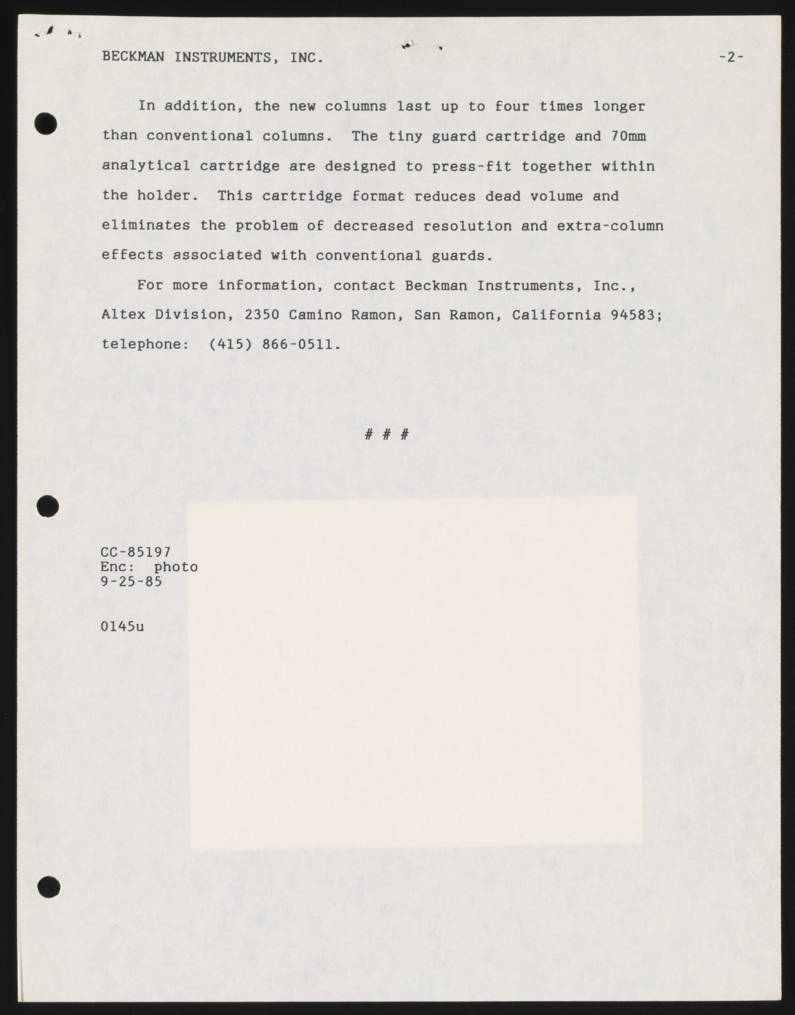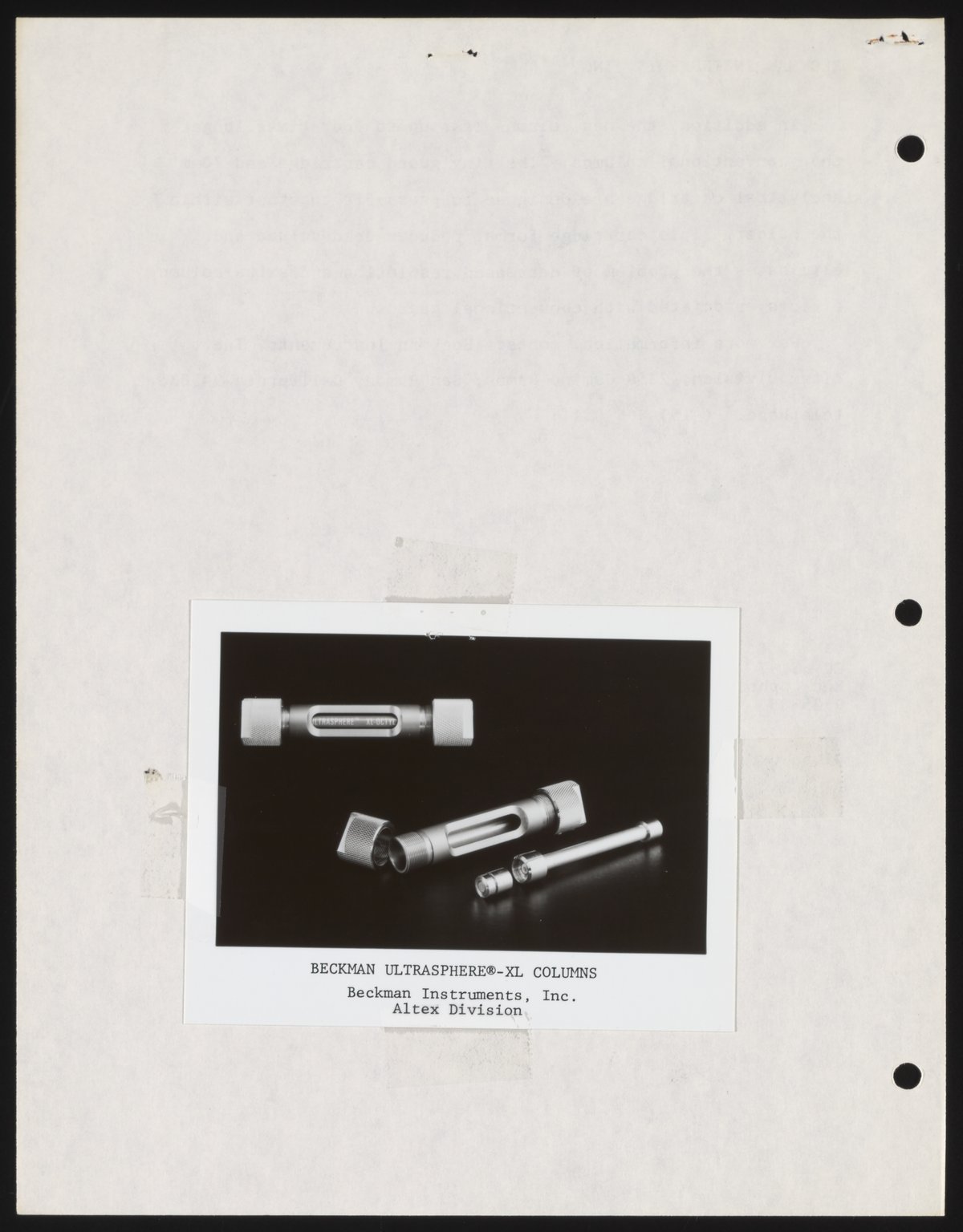 Schneider, Ilene. “New Ultrasphere-XL Columns Work Faster, Last Longer,” September 25, 1985. Beckman Historical Collection, Box 58, Folder 70. Science History Institute. Philadelphia. https://digital.sciencehistory.org/works/dv13zt93f.