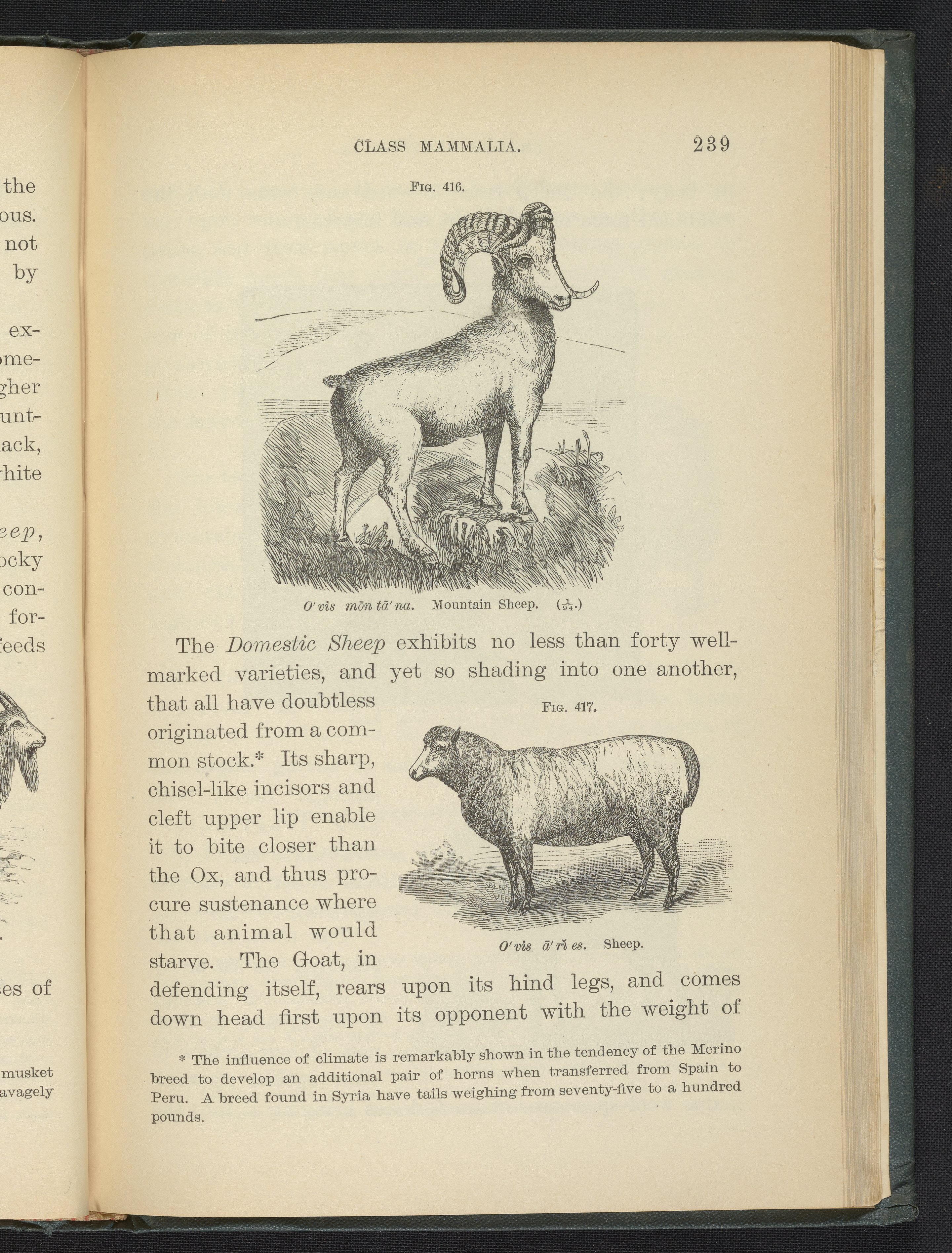 Figures 416 and 417 of the 1887 volume Popular Zoology. Figure 416 depicts a mountain sheep. Figure 417 depicts a domestic sheep.