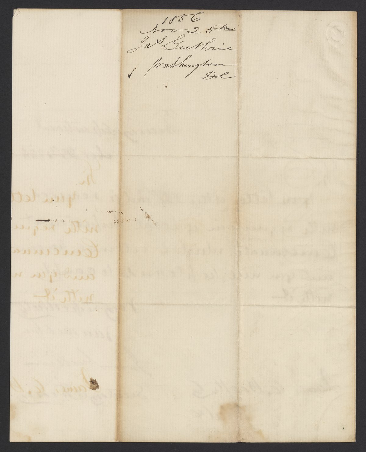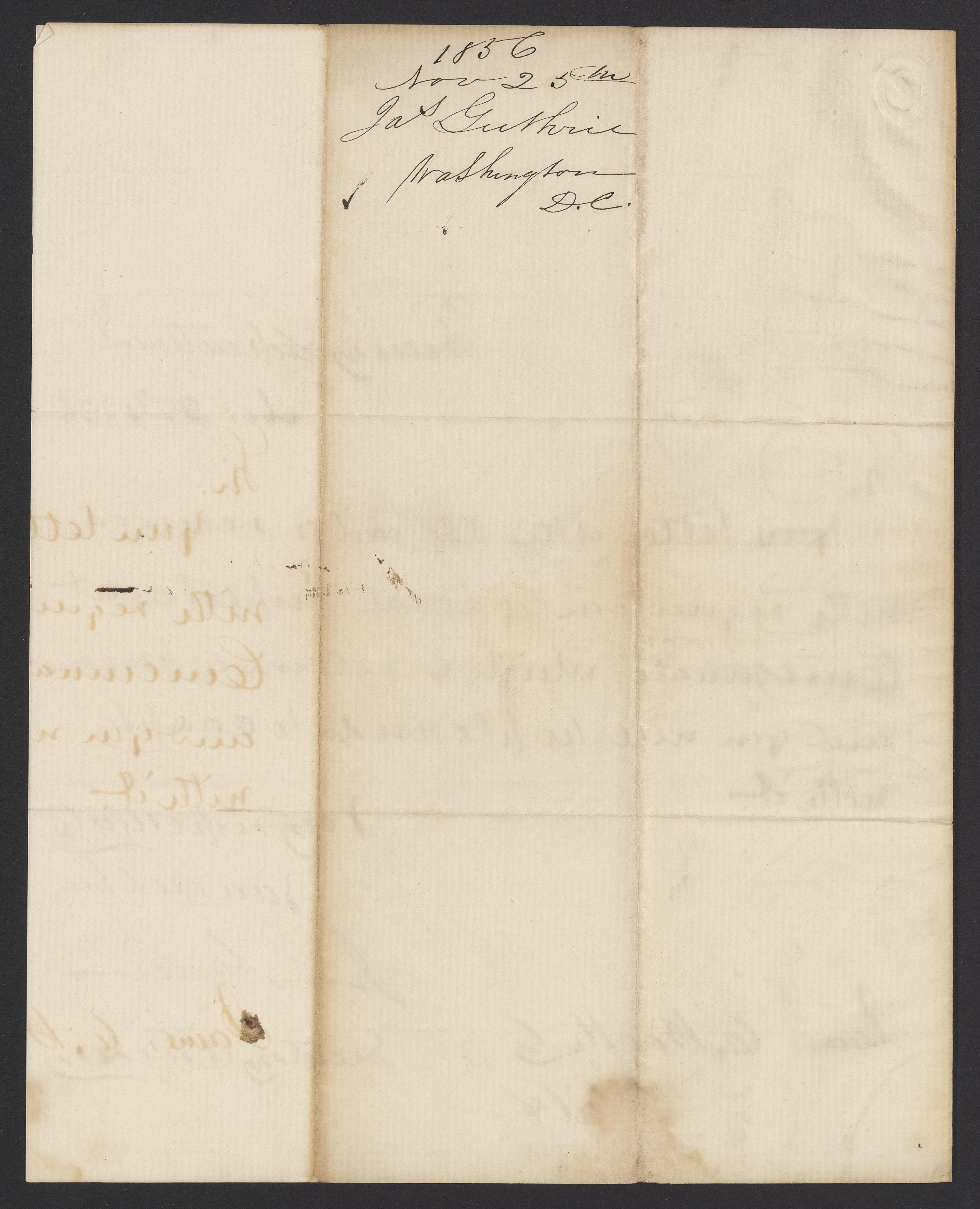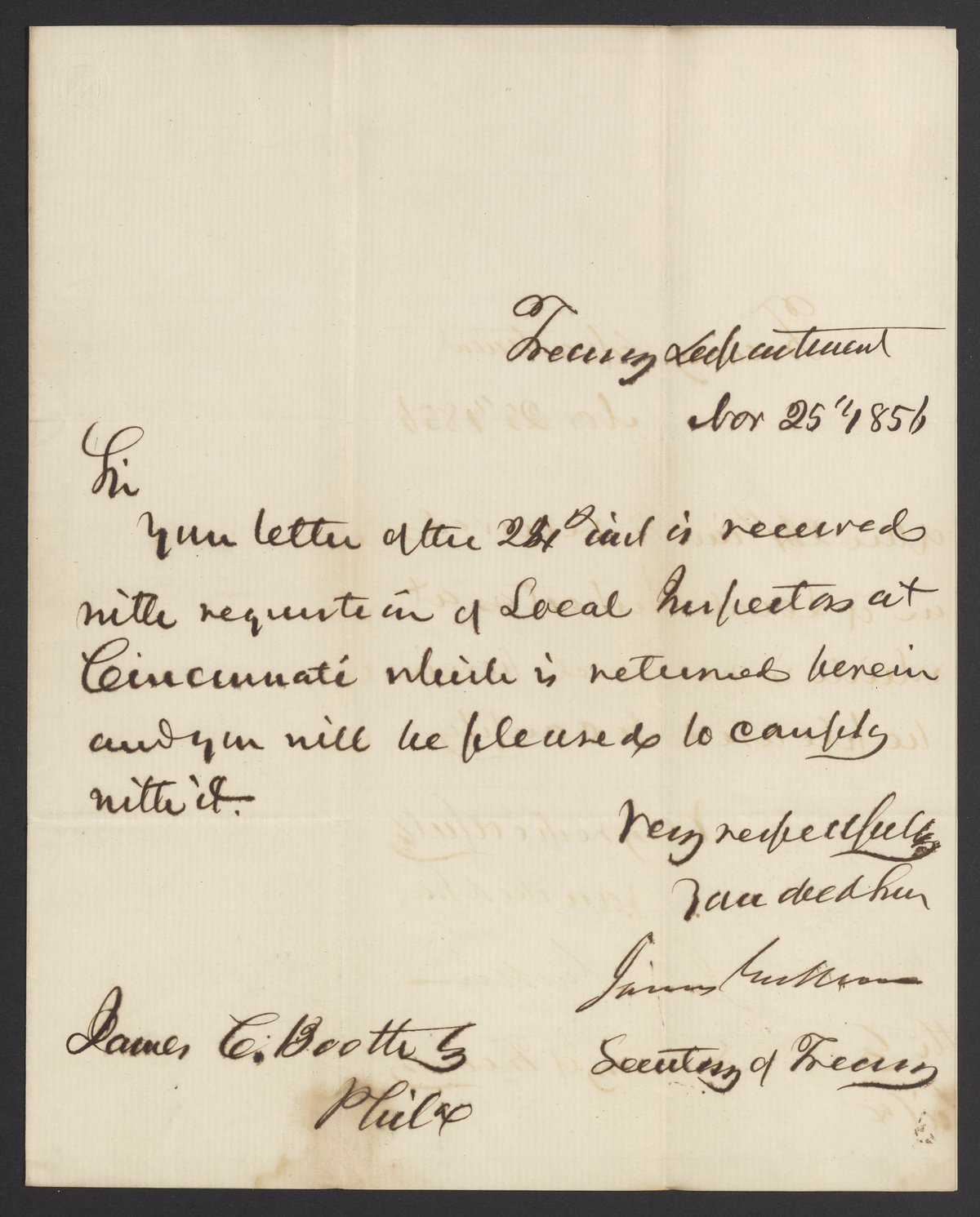 Letter from James B. Guthrie to James Curtis Booth, November 25, 1856