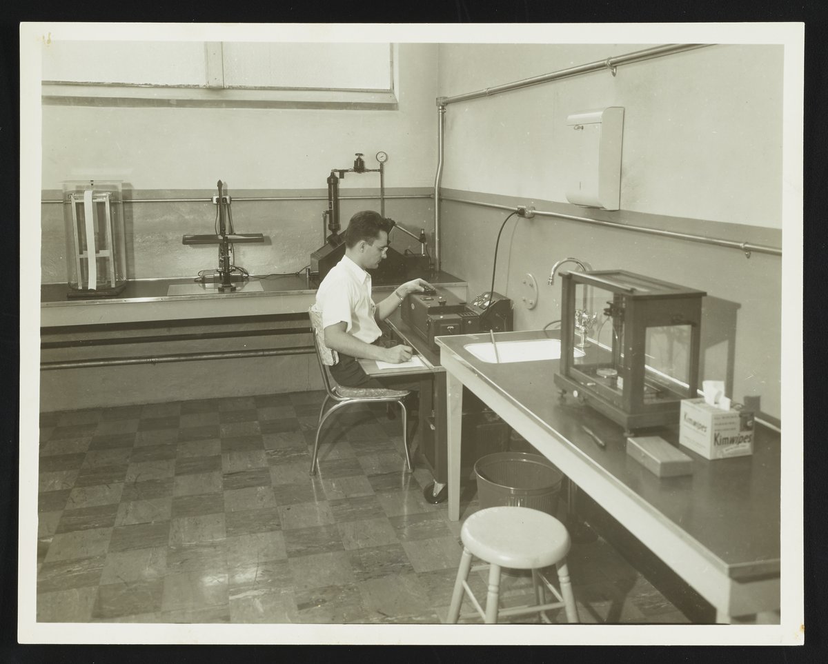 “Beckman Model DU Spectrophotometer in Use at Althouse Research Laboratory,” 1951. Photographs from the Records of the Althouse, Bates, and Crompton Chemical Companies, Box 1. Science History Institute. Philadelphia. https://digital.sciencehistory.org/works/dz010q07r.