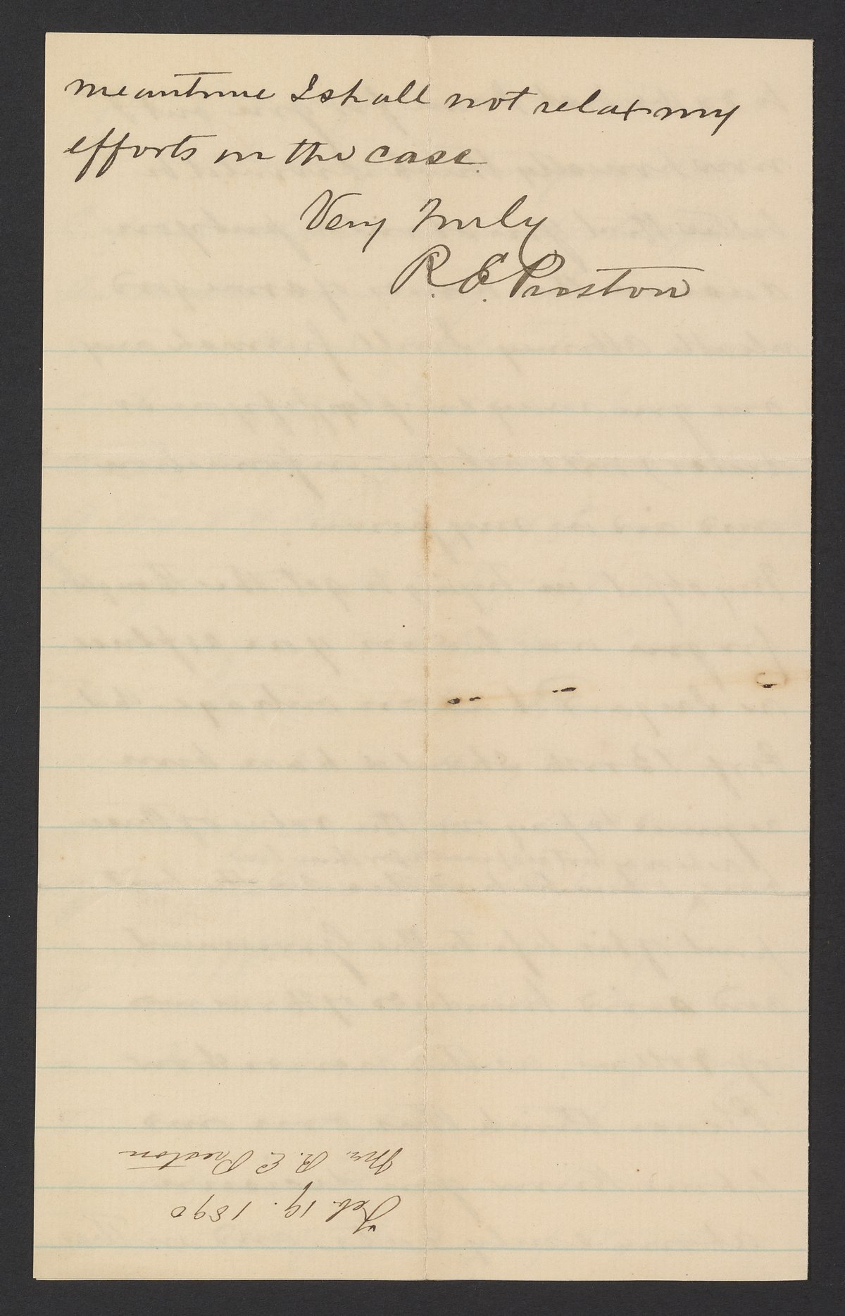 Letter from R.E. Preston to Margaret M. Booth, February 19, 1890