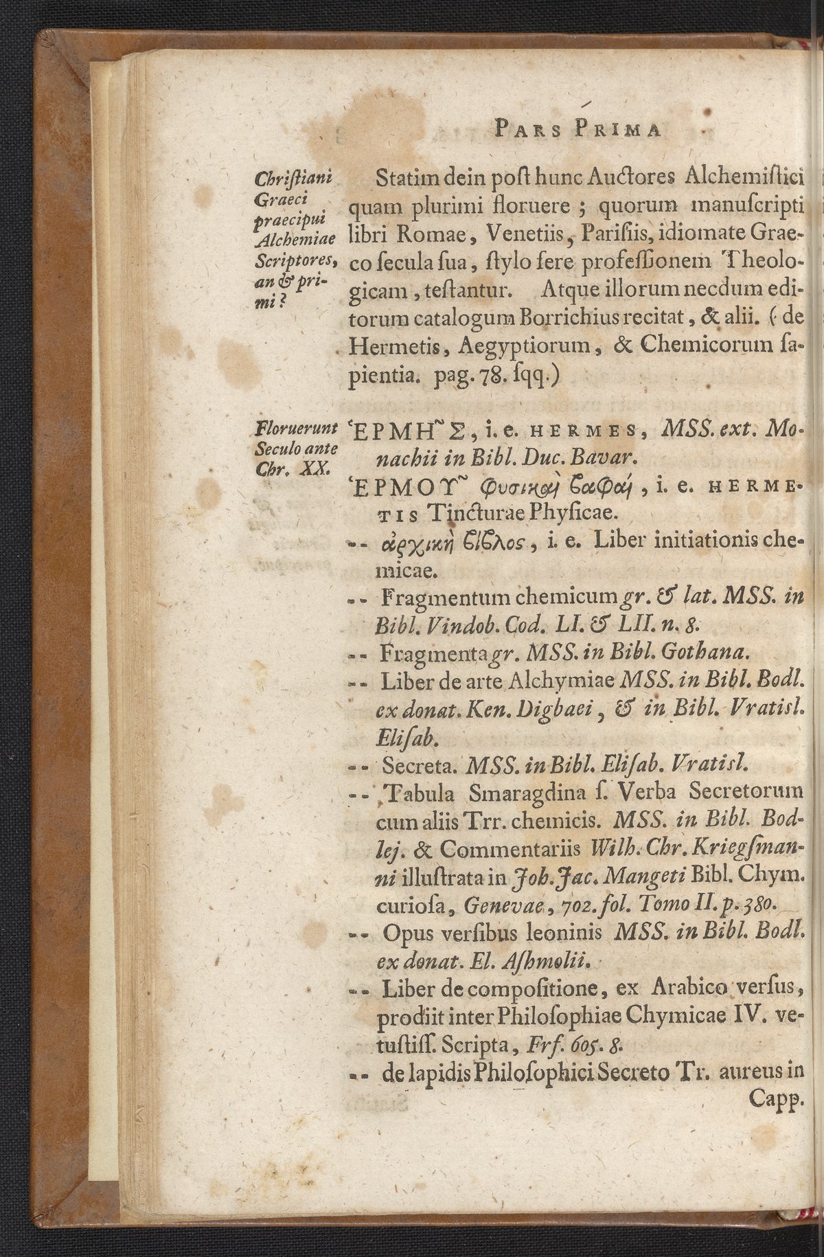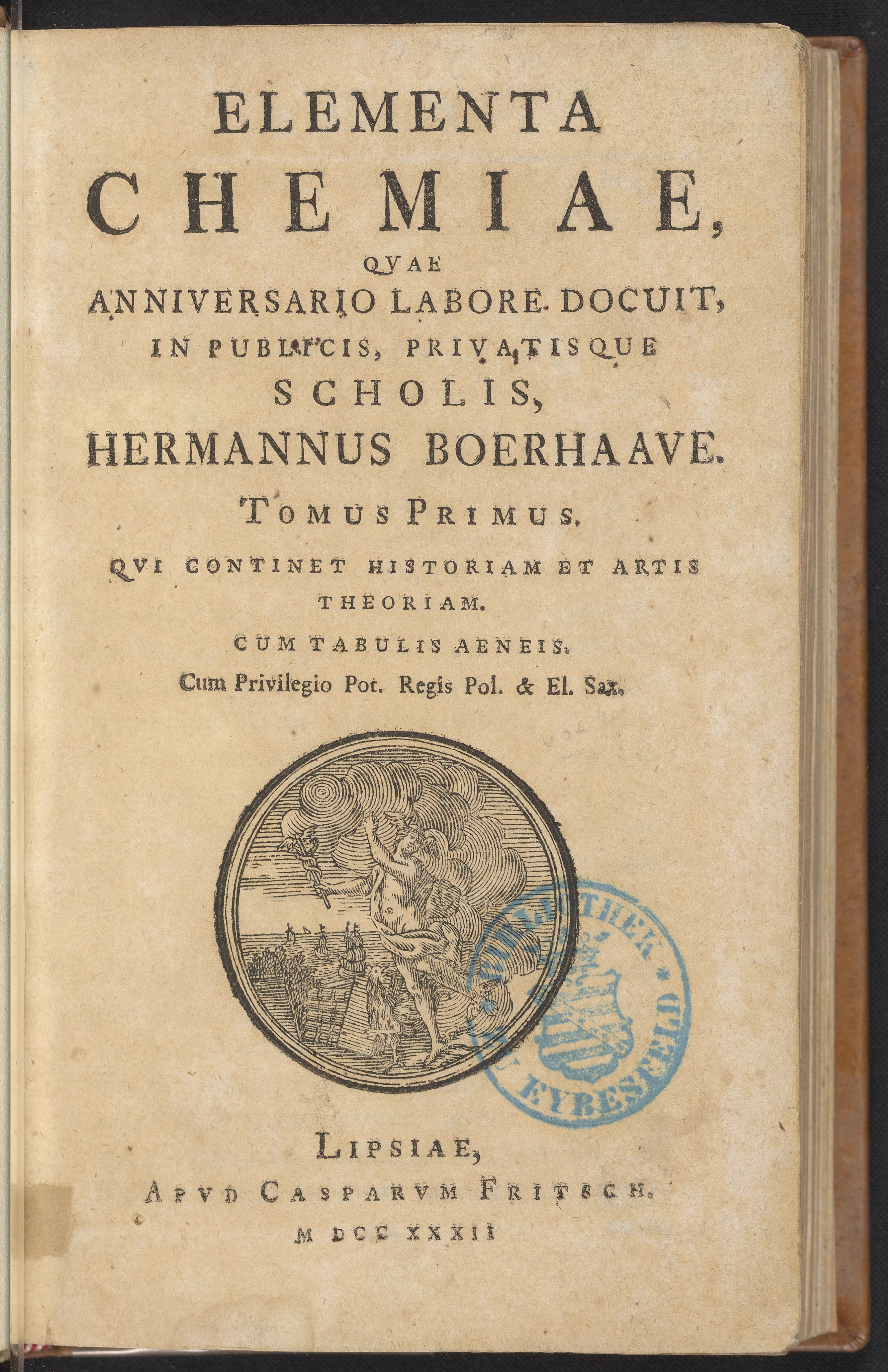 Boerhaave, Herman. Elementa Chemiae : Quae Anniversario Labore Docuit, in Publicis, Privatisque Scholis, Volume 1. Leipzig, Germany: Apud Casparaum Fritsch, 1732. https://digital.sciencehistory.org/works/e5795b7.