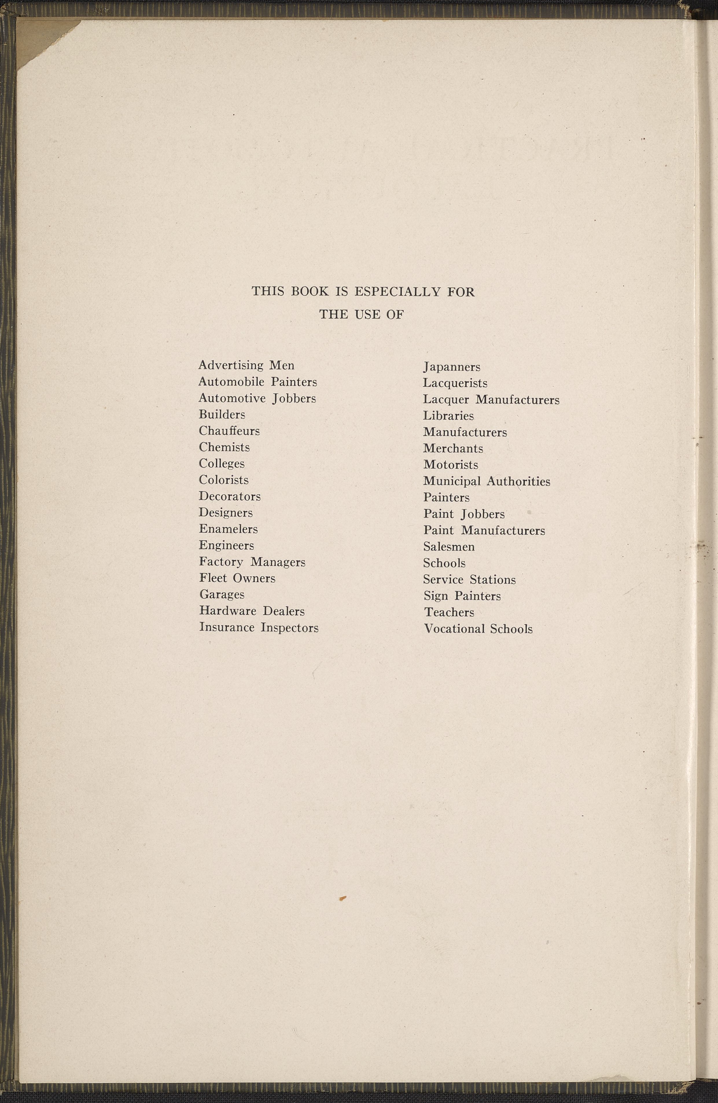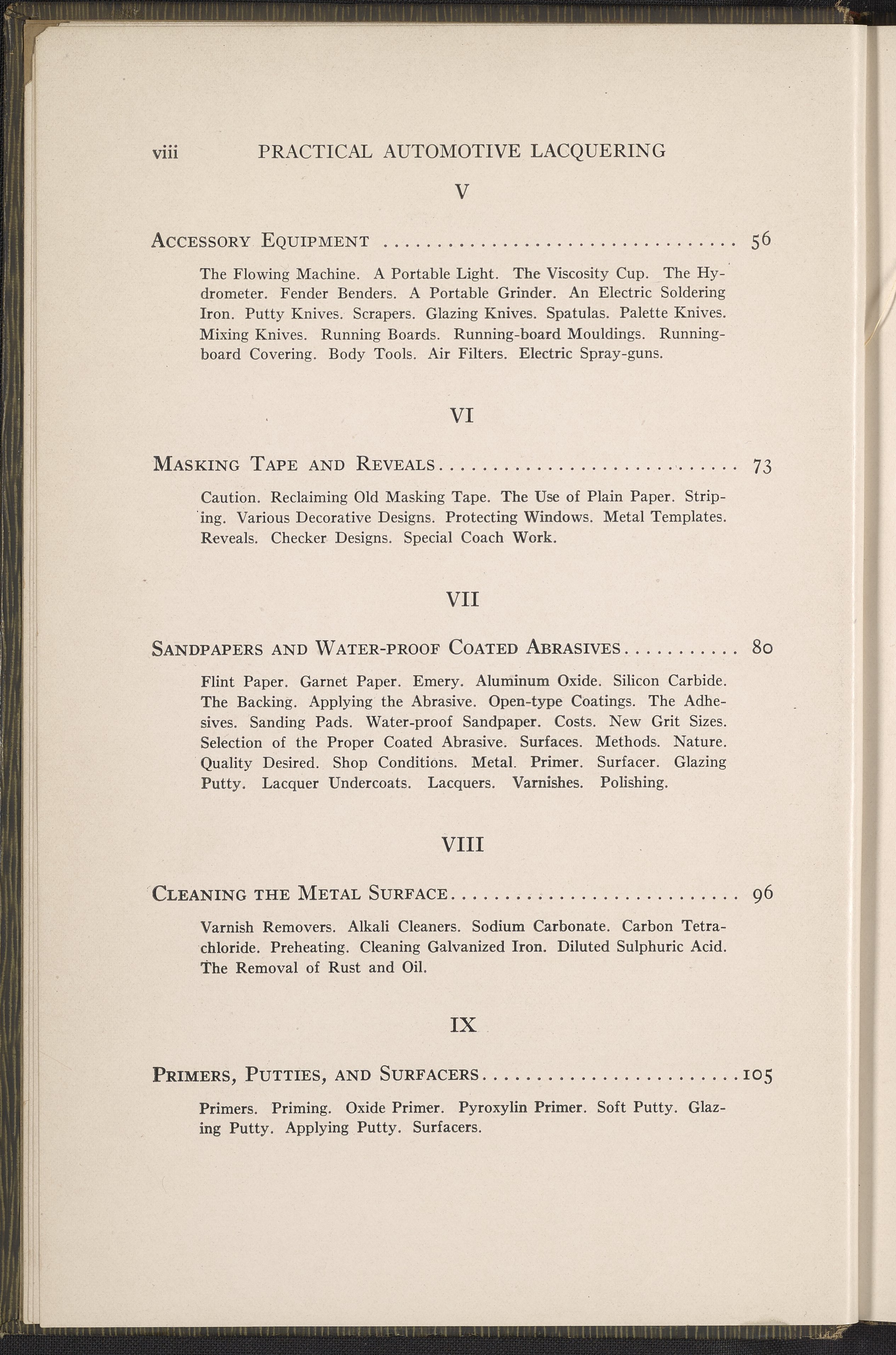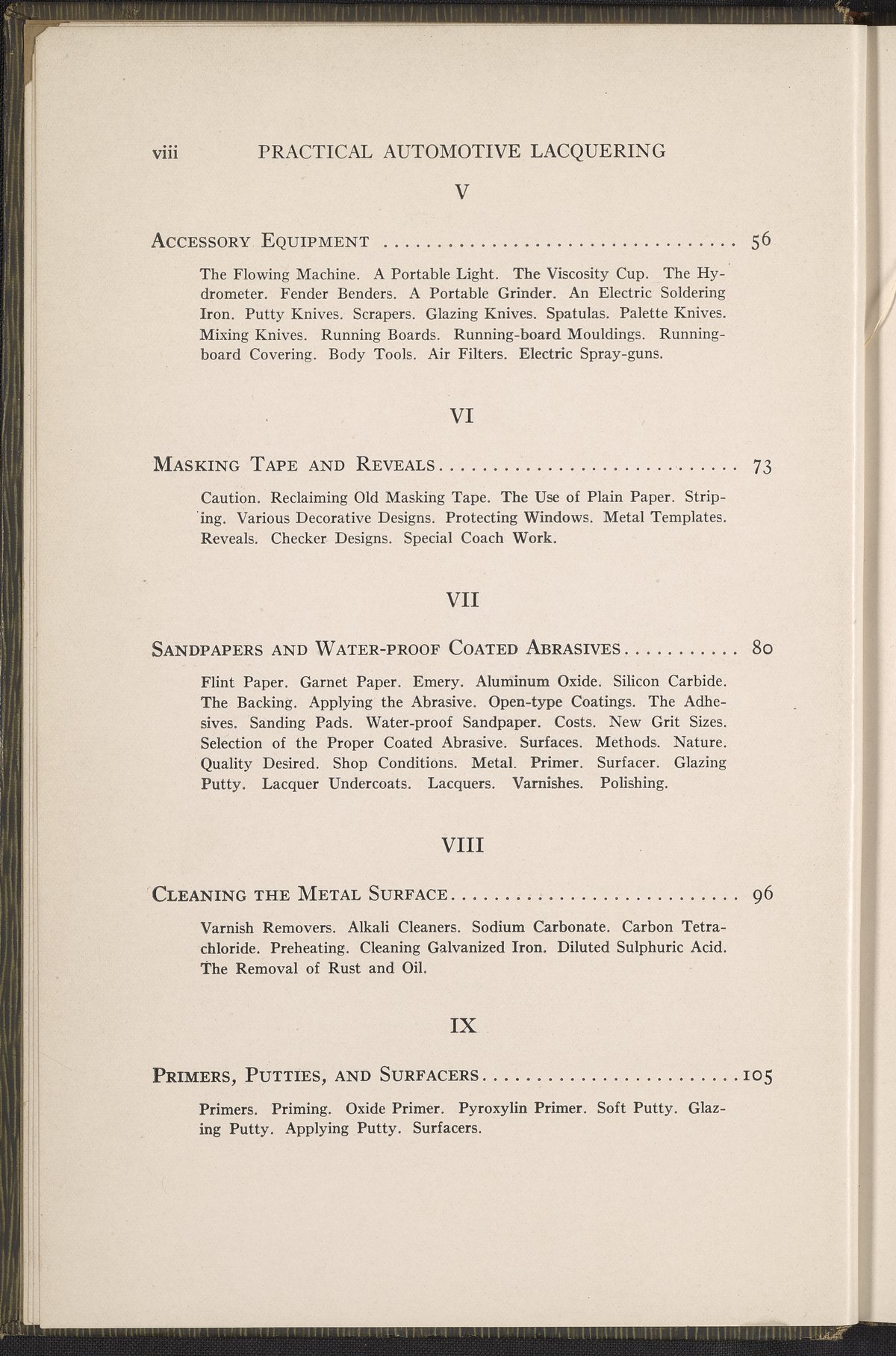 Miskella, William J. (William James). “Practical Automotive Lacquering.” Chicago, Illinois: Inc. Finishing Research Laboratories, 1928. TL154 .M57 1928. Science History Institute. Philadelphia. https://digital.sciencehistory.org/works/e65vrfq.