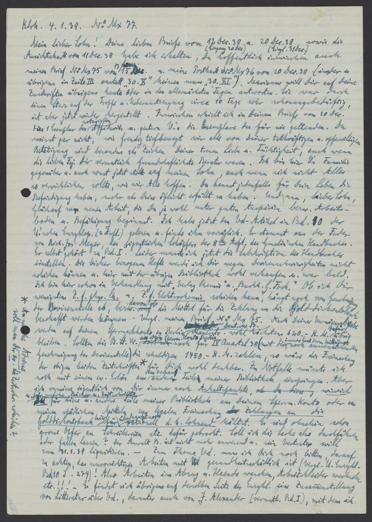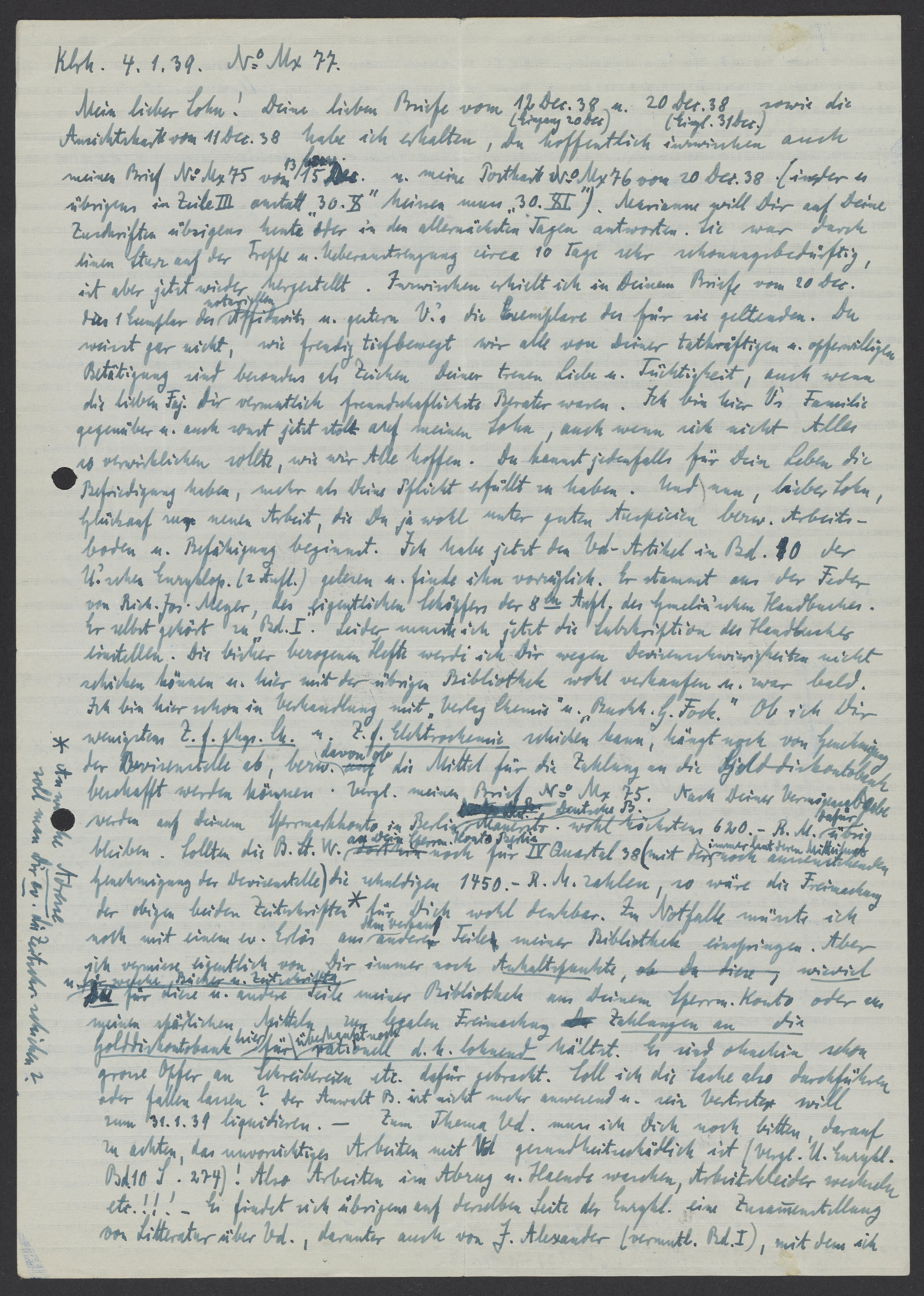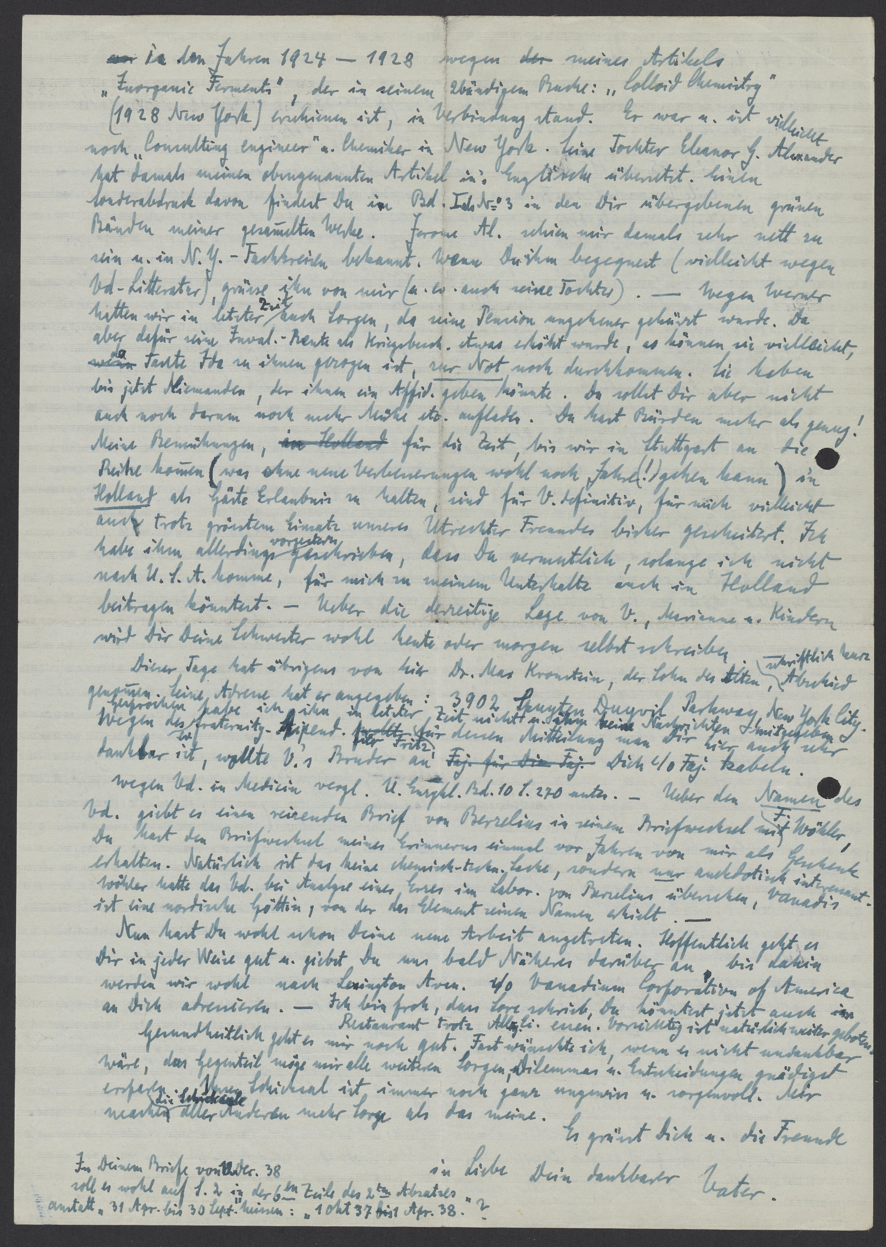 Bredig, Georg. “Letter from Georg Bredig to Max Bredig, January 4, 1939,” January 4, 1939. Papers of Georg and Max Bredig, Box 7, Folder 15. Science History Institute. Philadelphia. https://digital.sciencehistory.org/works/e68inef.