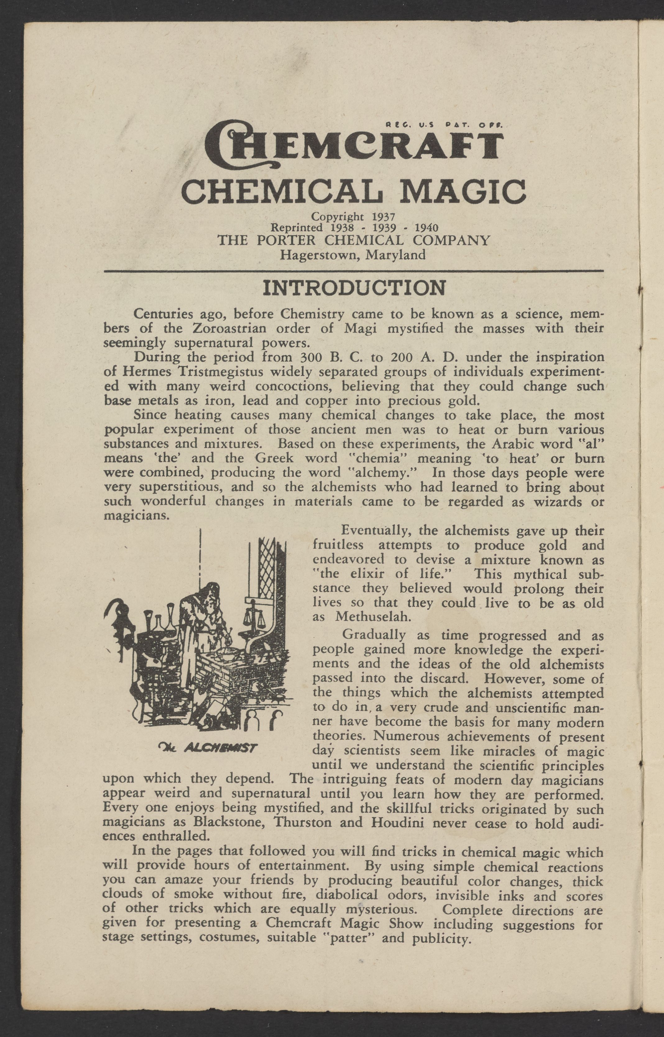 “Chemcraft Chemical Magic.” Hagerstown, Maryland: Porter Chemical Company, 1940. Science History Institute. Philadelphia. https://digital.sciencehistory.org/works/e7ft0h9.