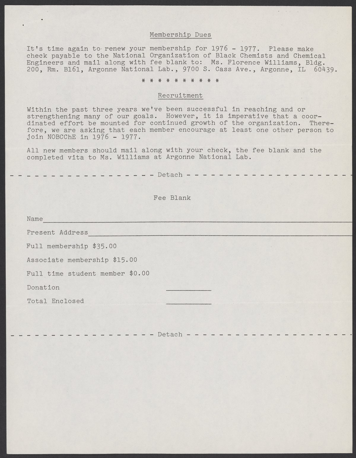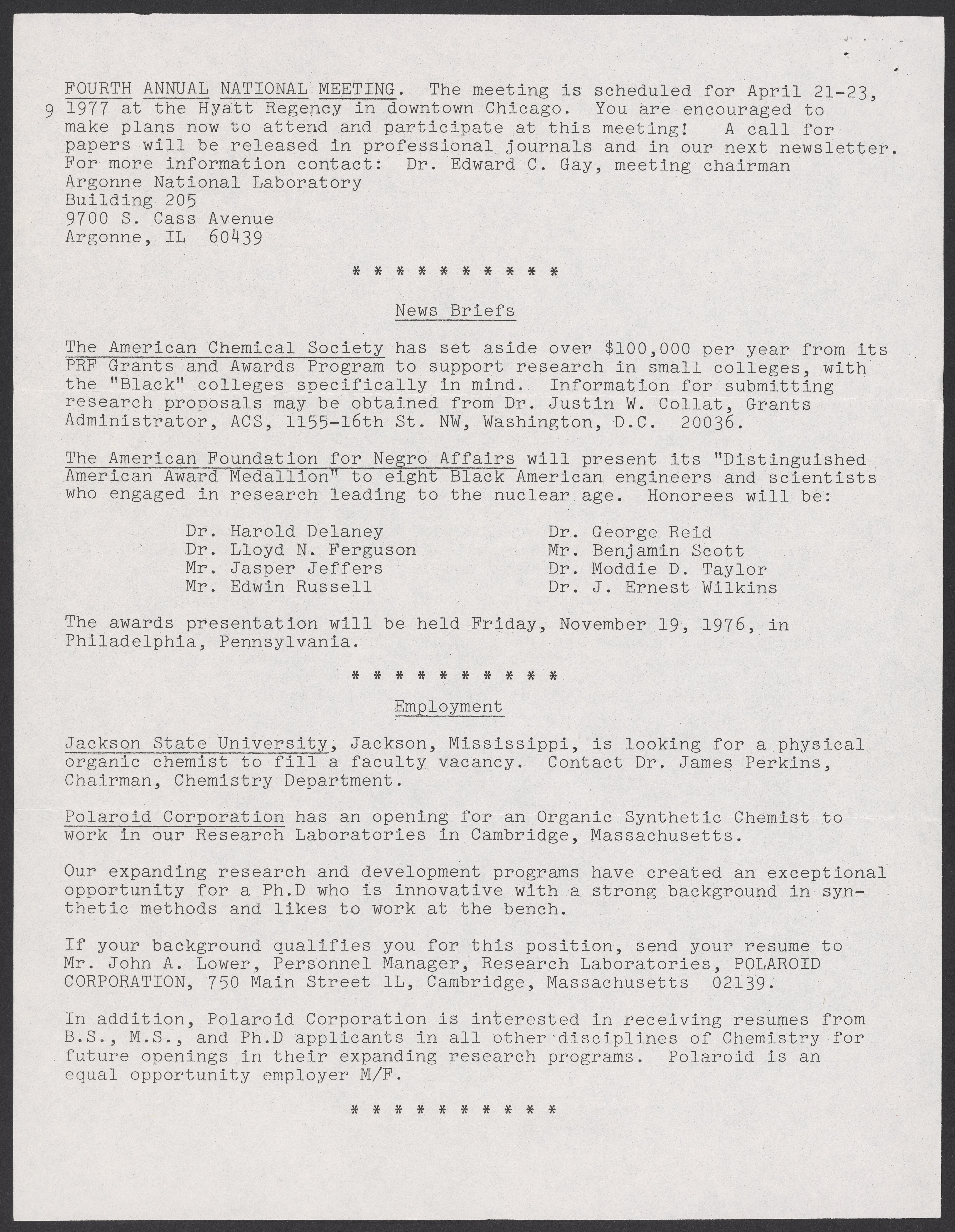 National Organization for the Professional Advancement of Black Chemists and Chemical Engineers newsletter, August 1976