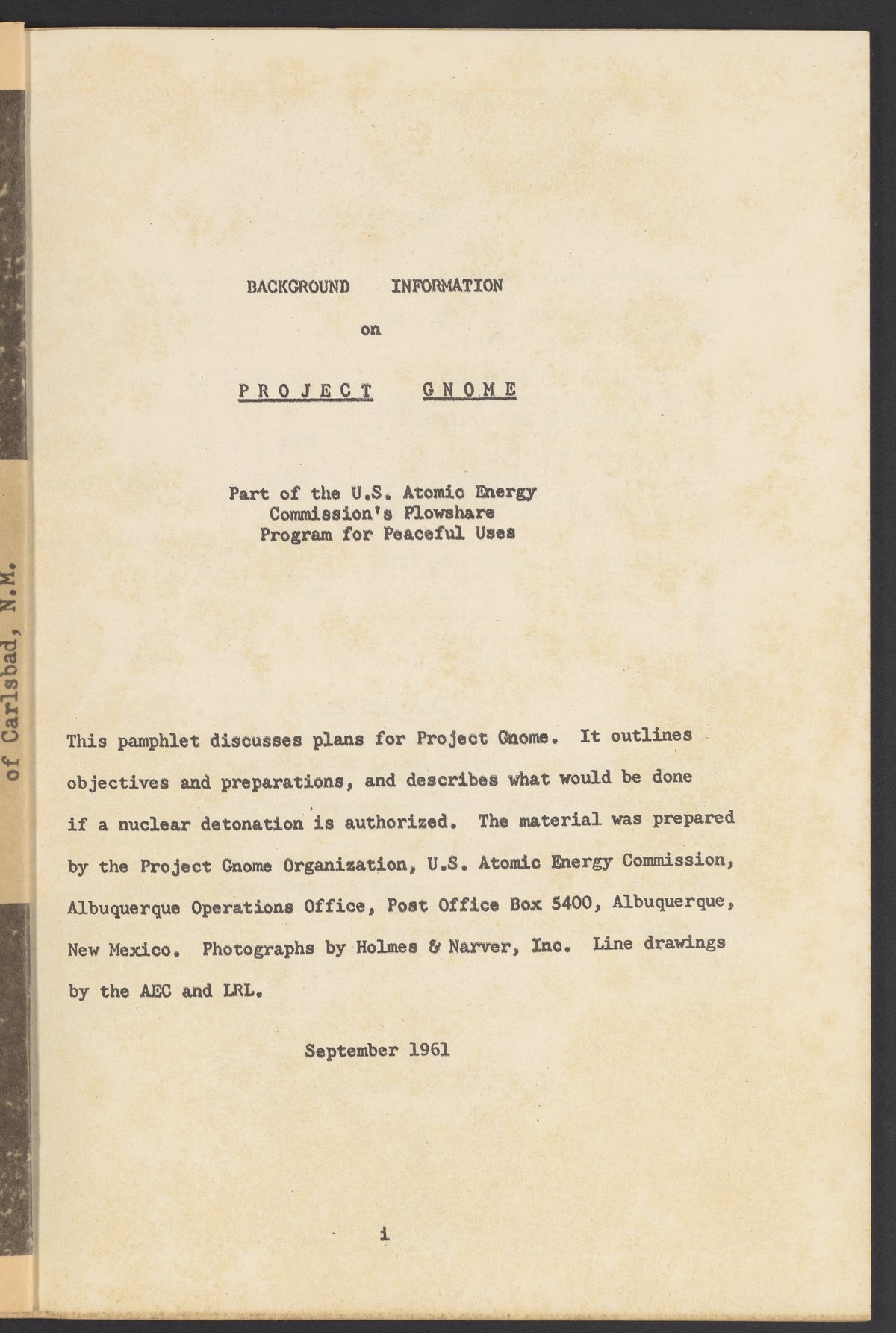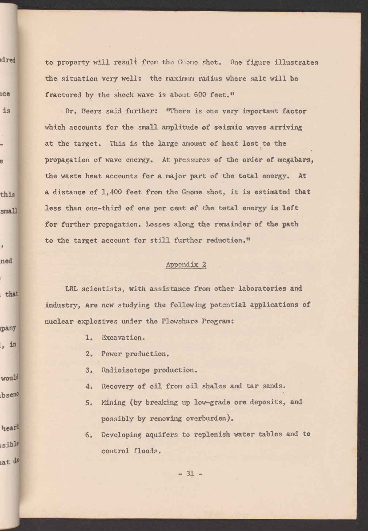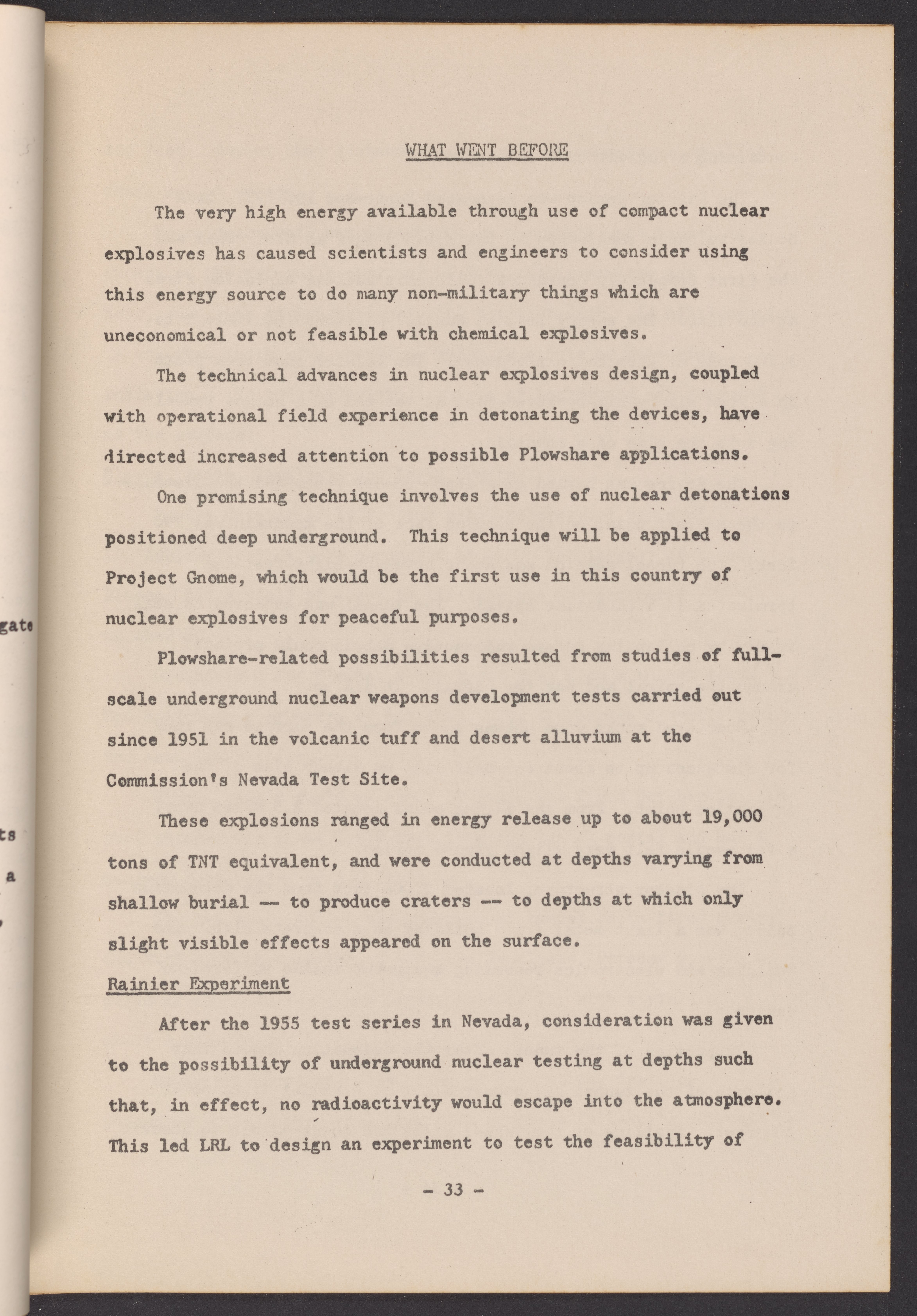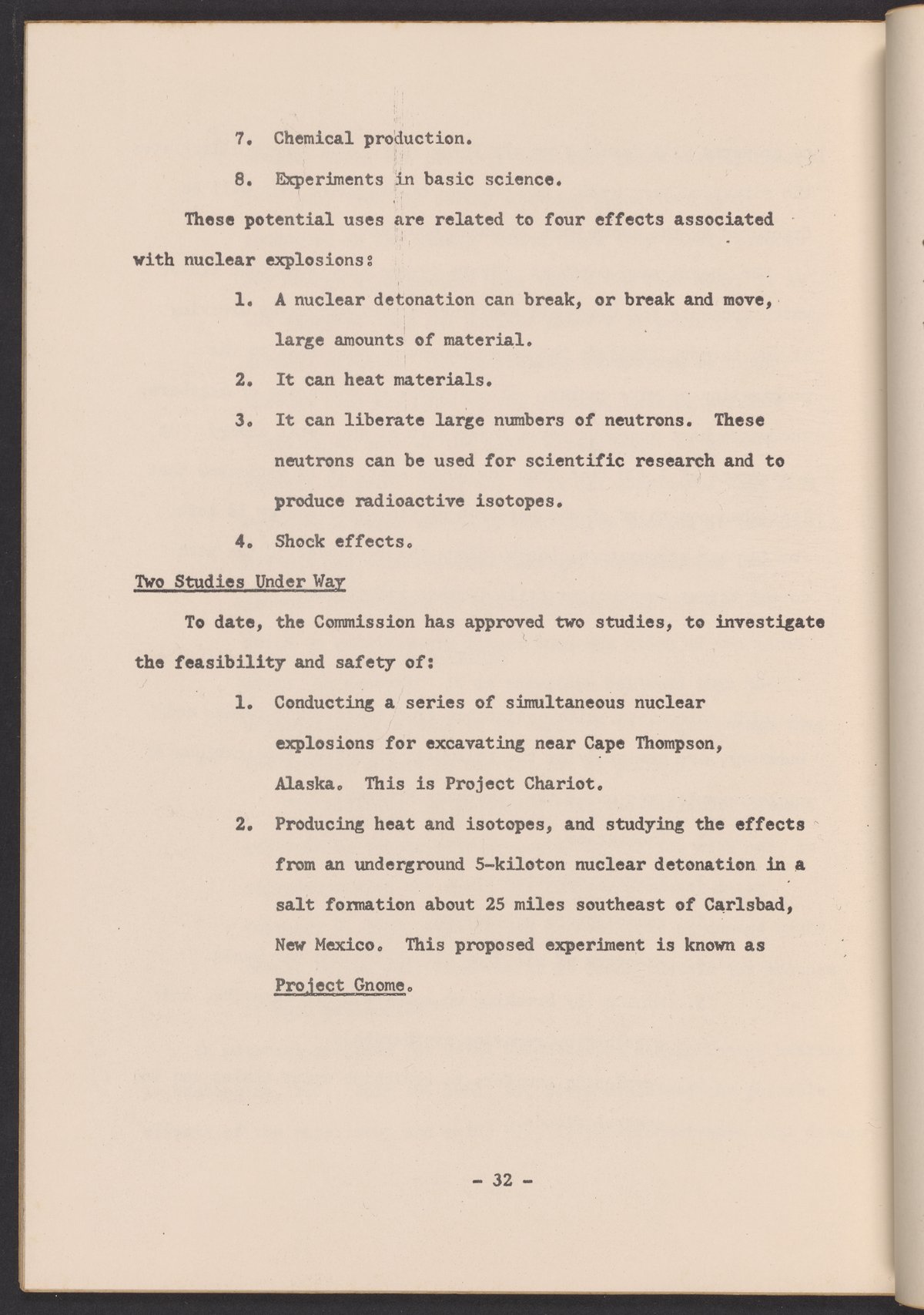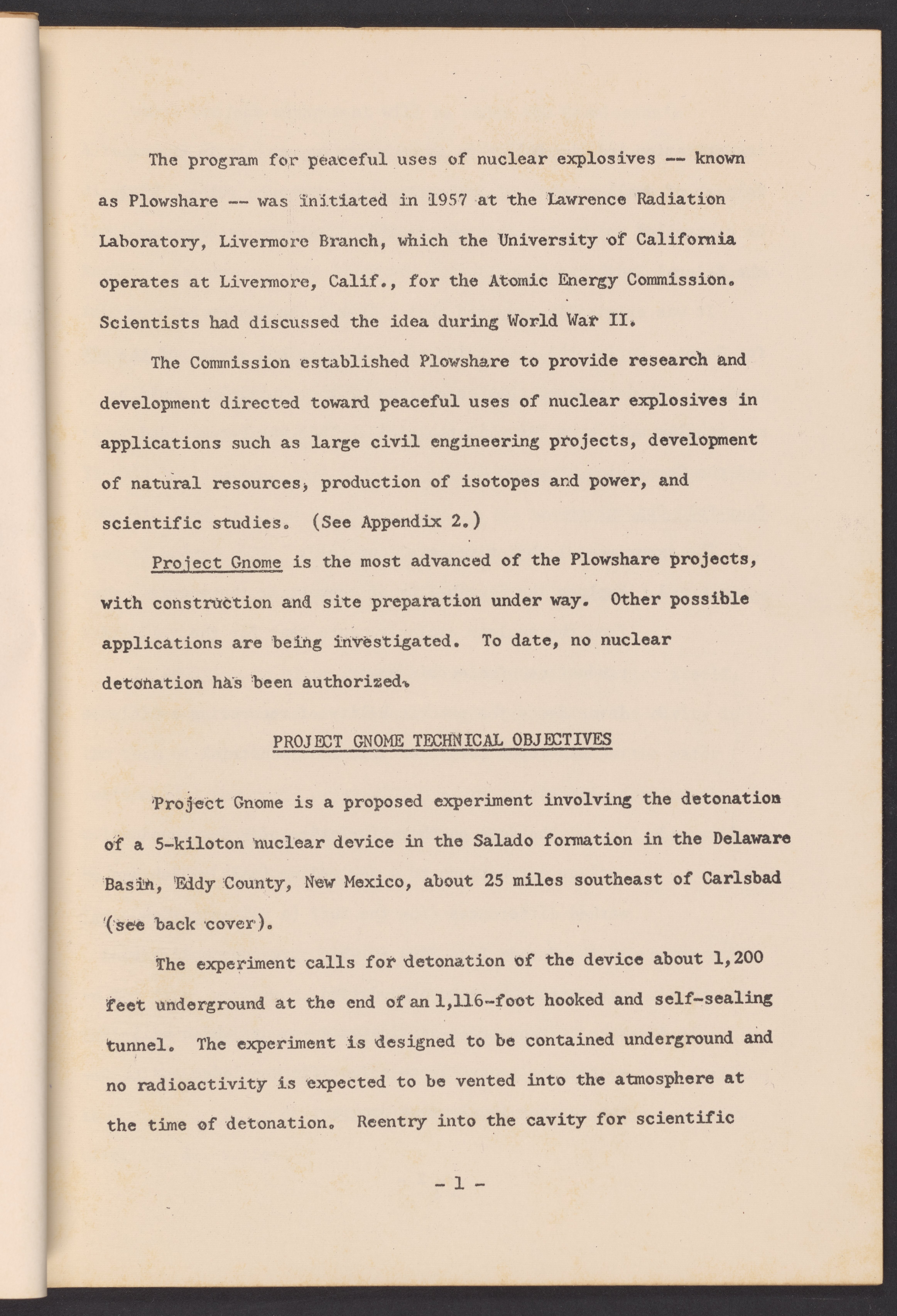 • Part of the U.S. Atomic Energy Commission's Plowshare Program for Peaceful Uses