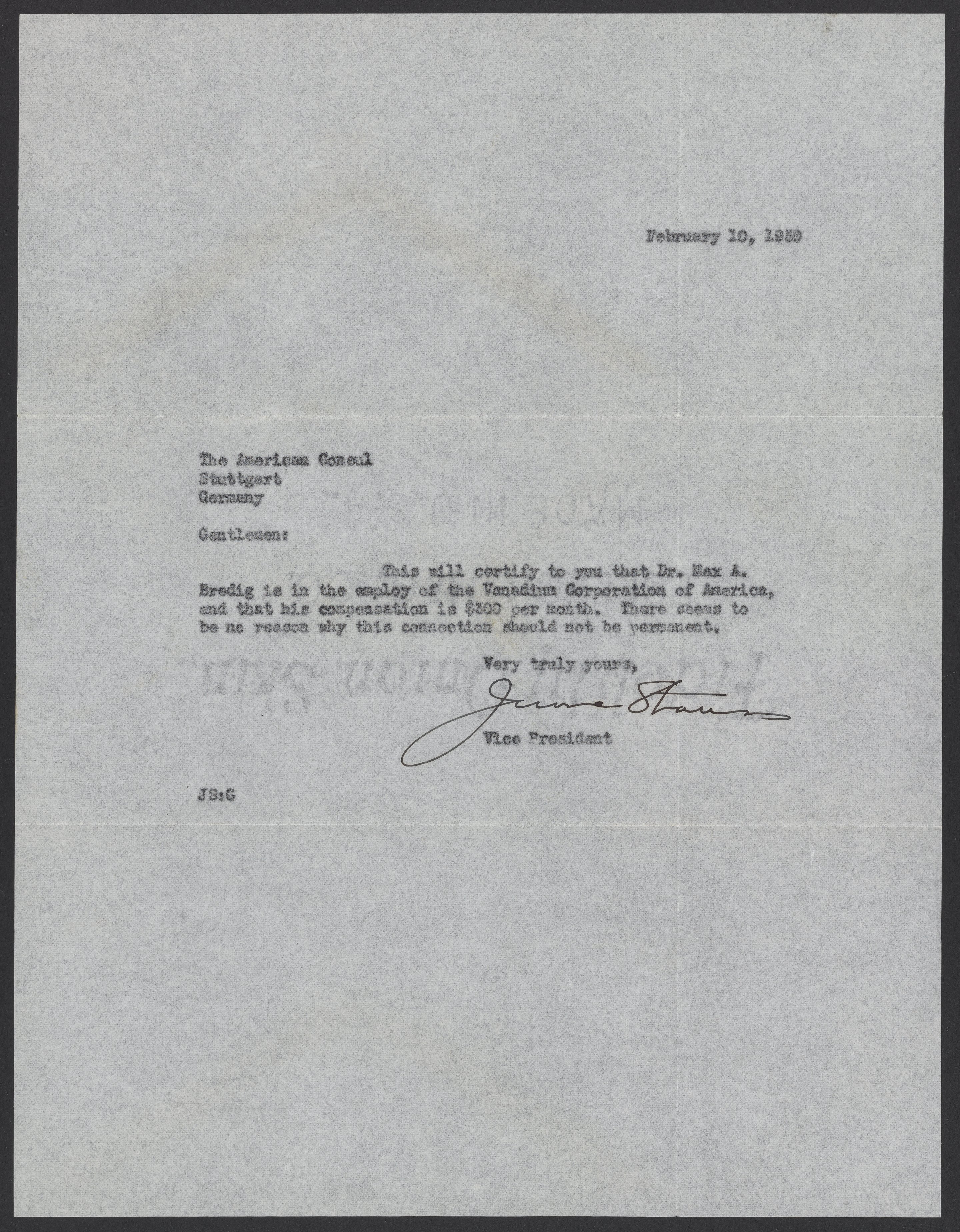 Letter to the American Consul of Stuttgart Germany, February 10, 1939