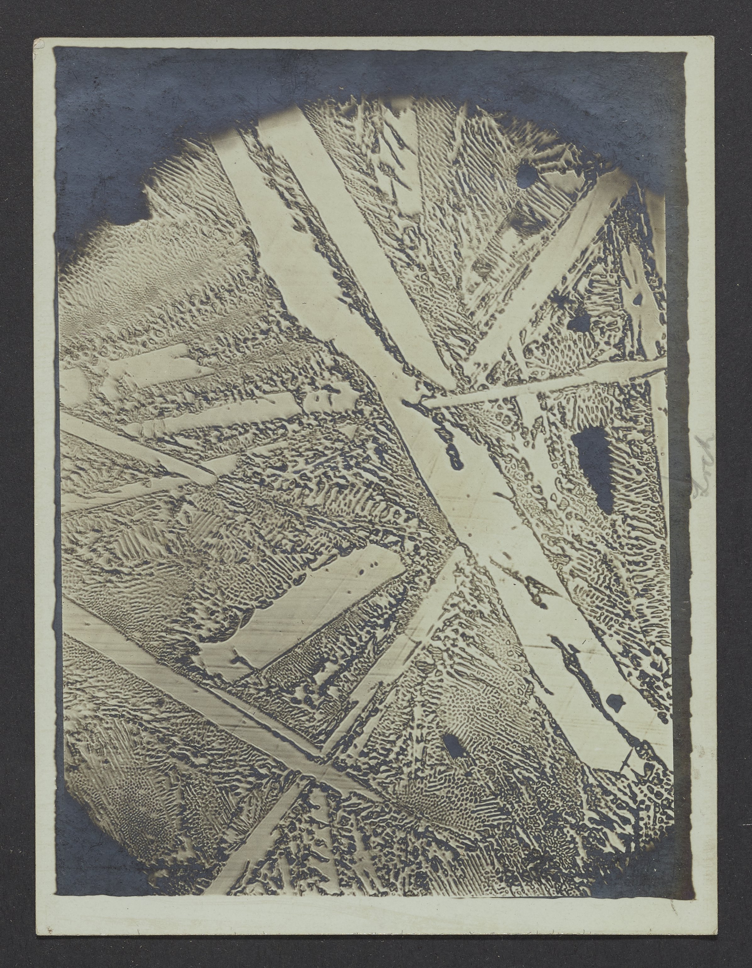 Small JPG1200 x 1545px — 456 KBFull-sized JPG2392 x 3080px — 1.4 MBOriginal fileTIFF — 2392 x 3080px — 21.1 MBBlack and white photograph of a sample through a microscope. On the back of the photograph are notes written in German.