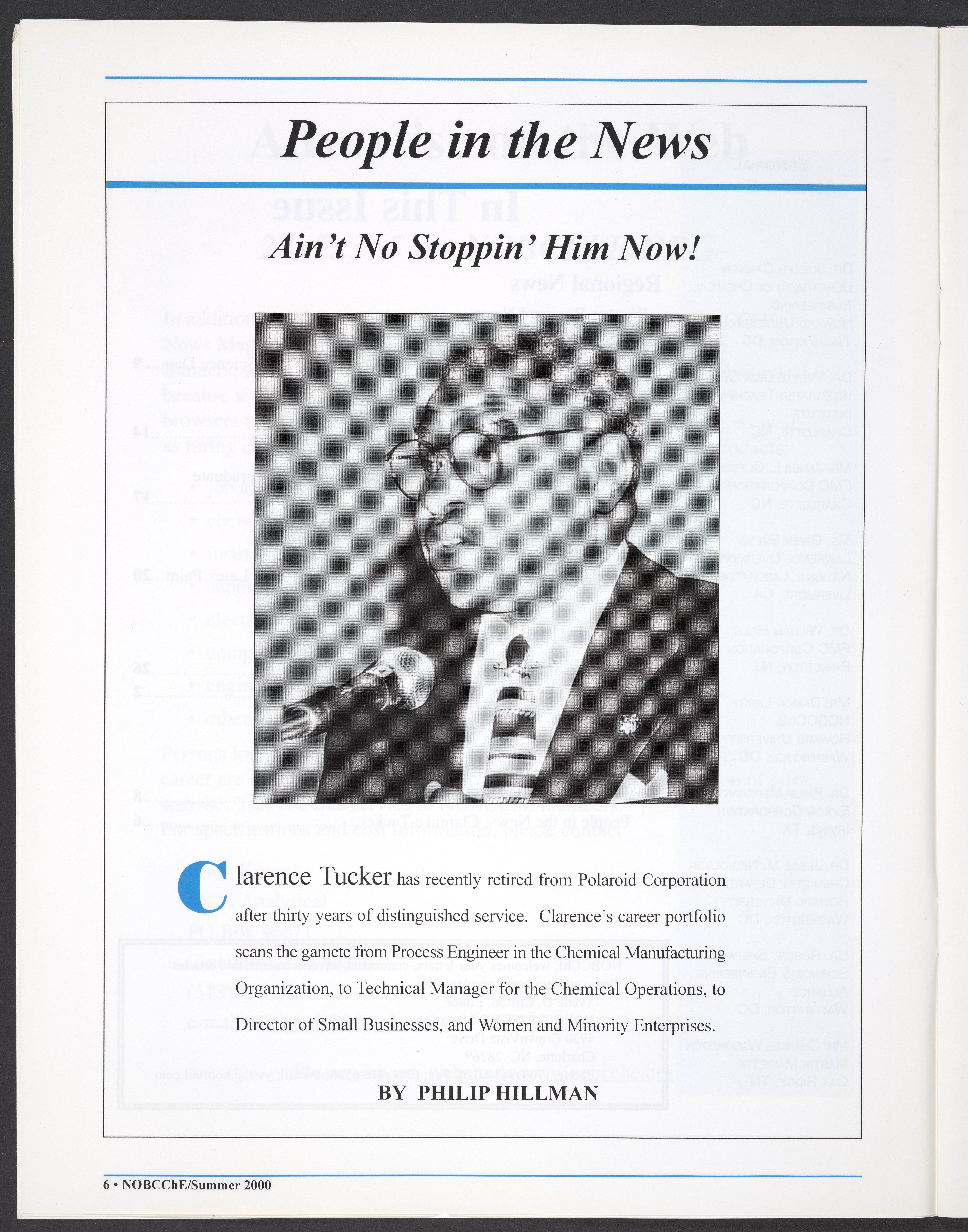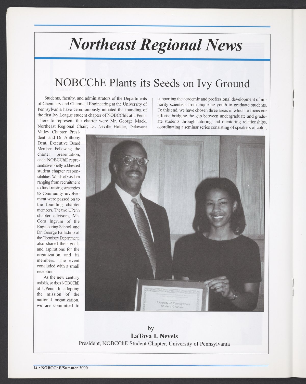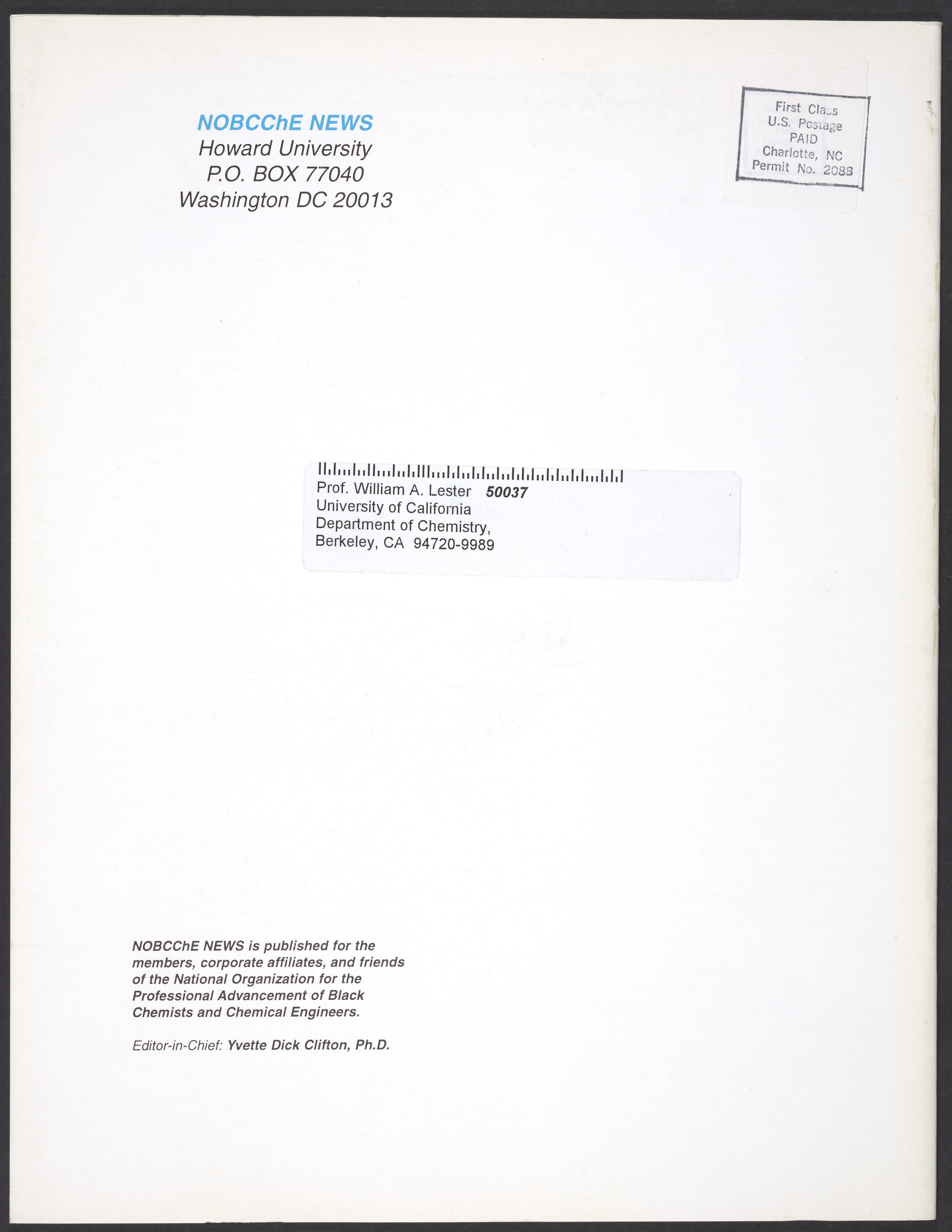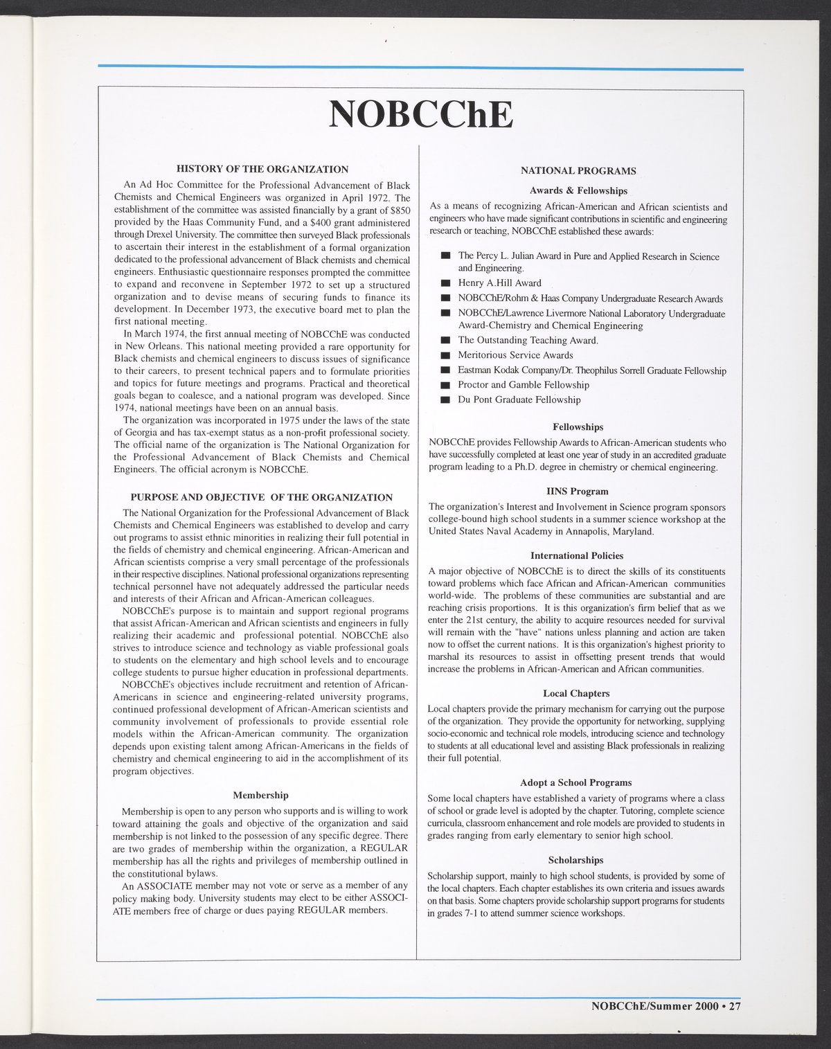 “NOBCChE News, Volume 22, Number 2.” National Organization for Black Chemists and Chemical Engineers, 2000. William A. Lester, Jr. Papers, Box 46, Folder 34. Science History Institute. Philadelphia. https://digital.sciencehistory.org/works/enc4nmt.
