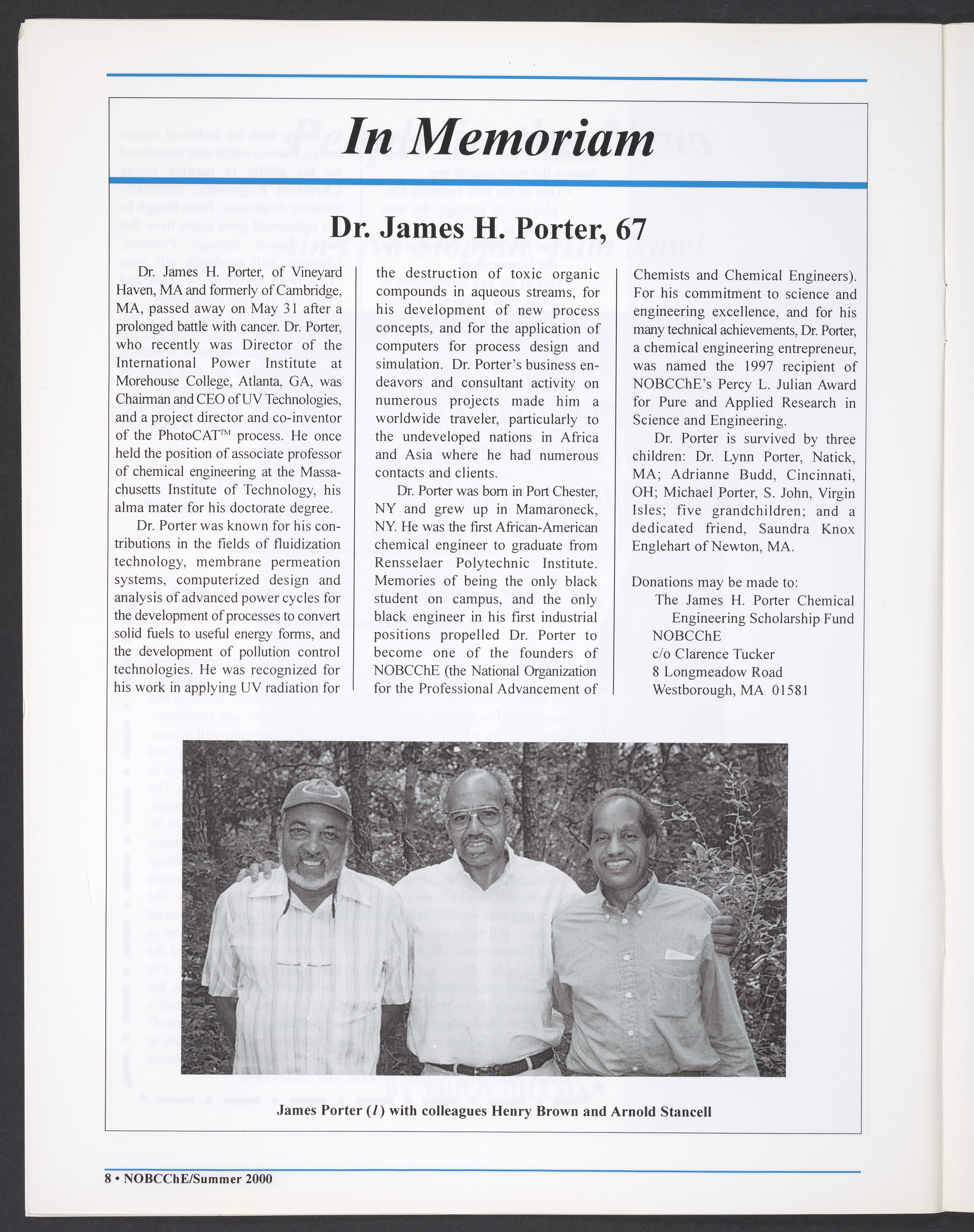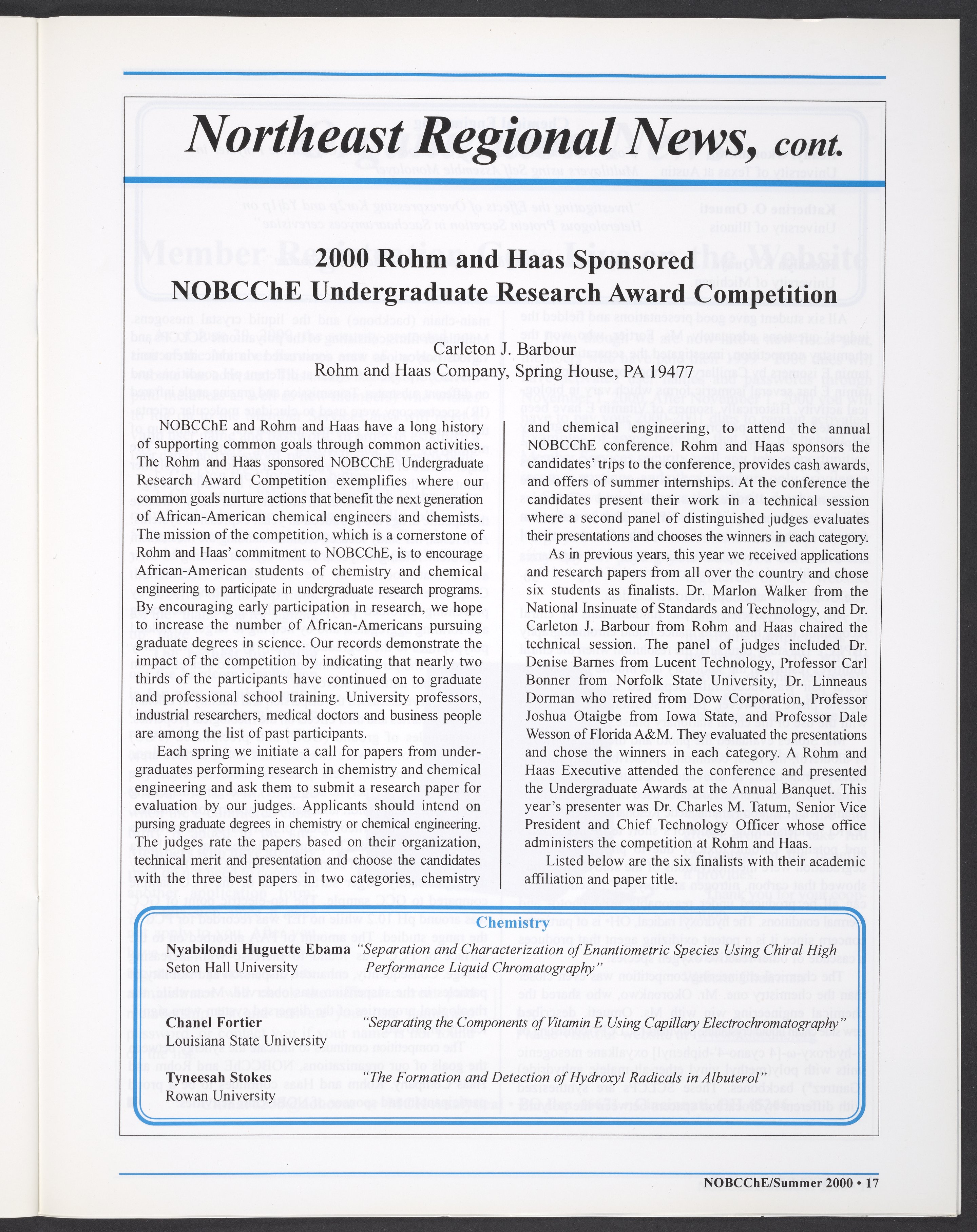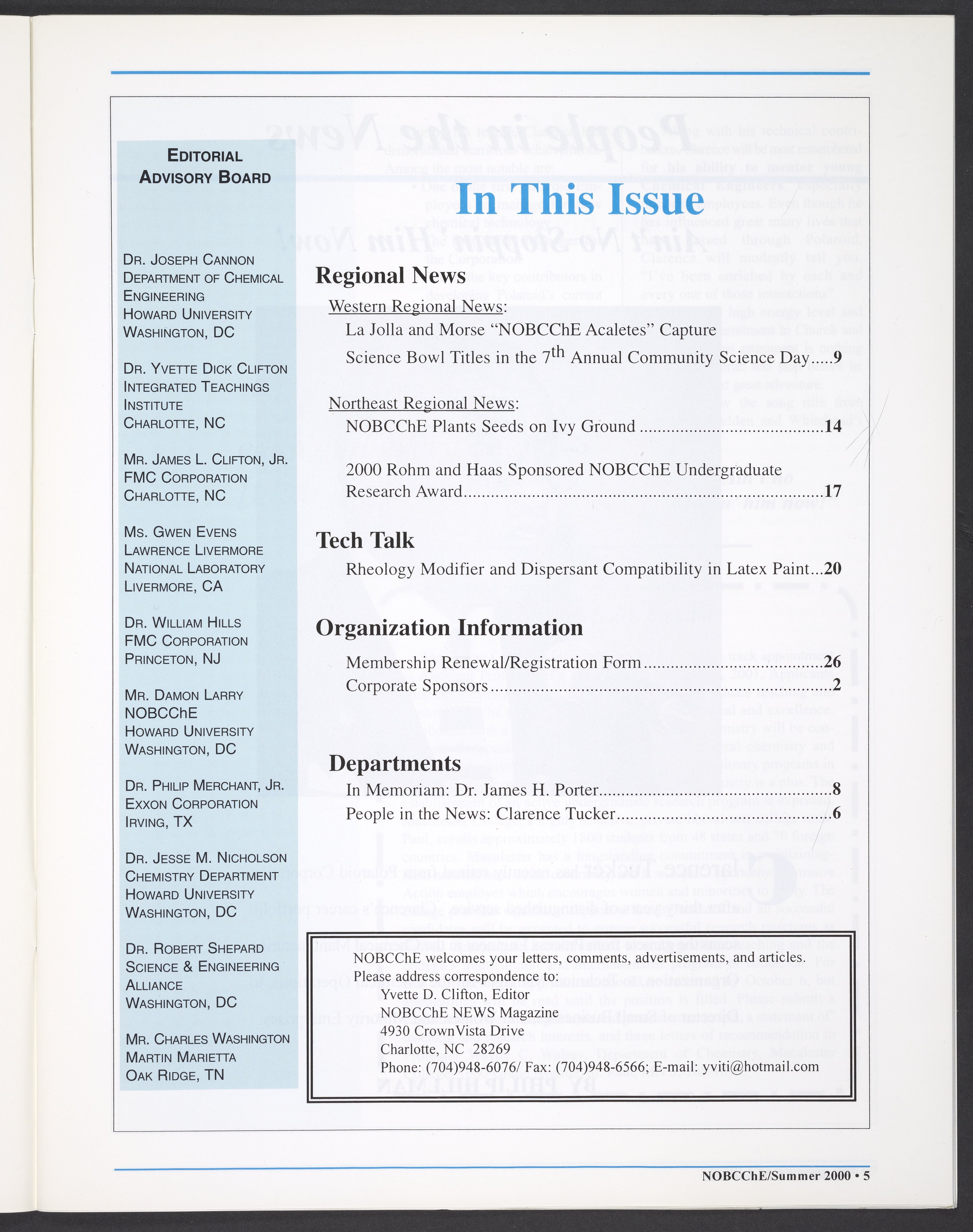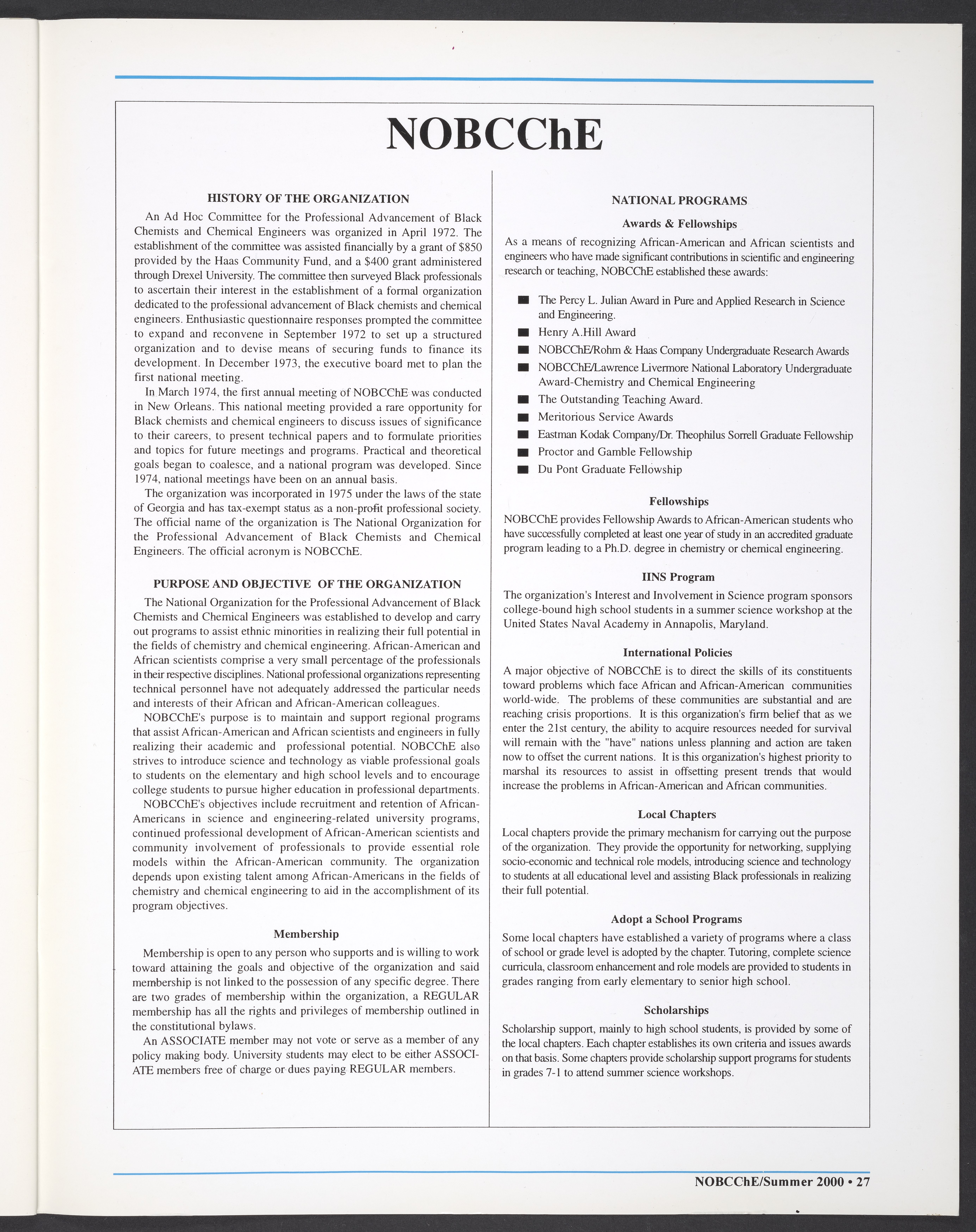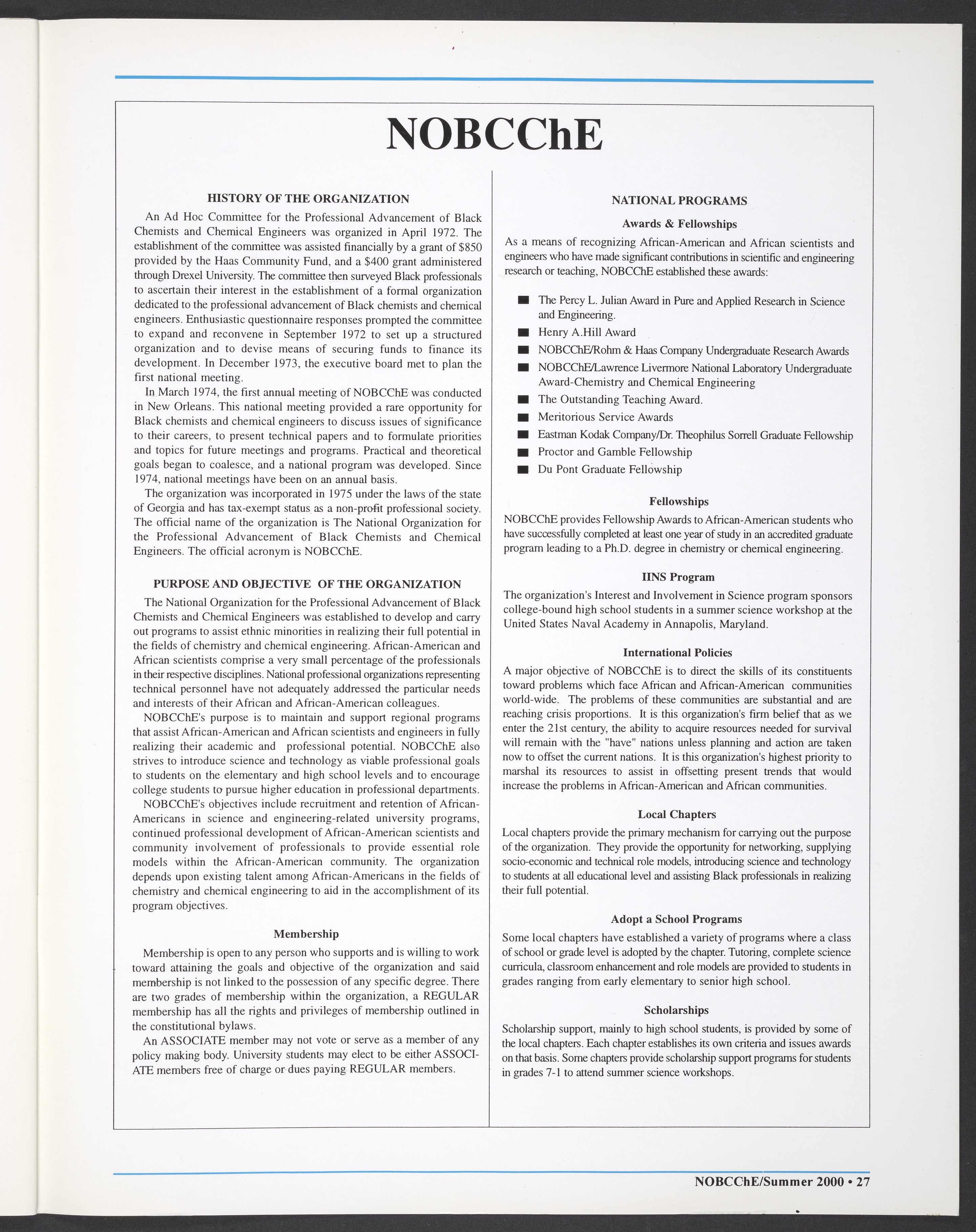 “NOBCChE News, Volume 22, Number 2.” National Organization for Black Chemists and Chemical Engineers, 2000. William A. Lester, Jr. Papers, Box 46, Folder 34. Science History Institute. Philadelphia. https://digital.sciencehistory.org/works/enc4nmt.
