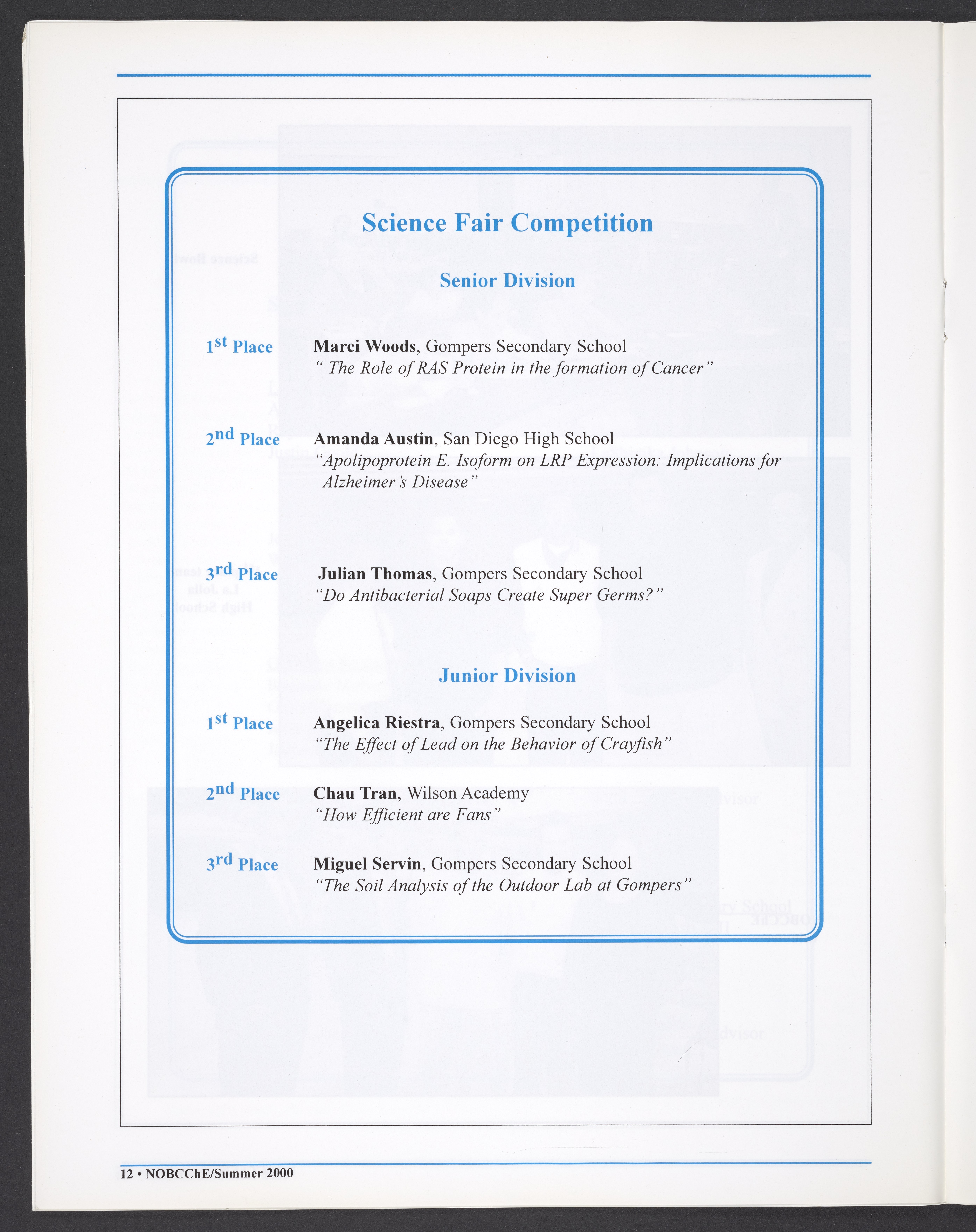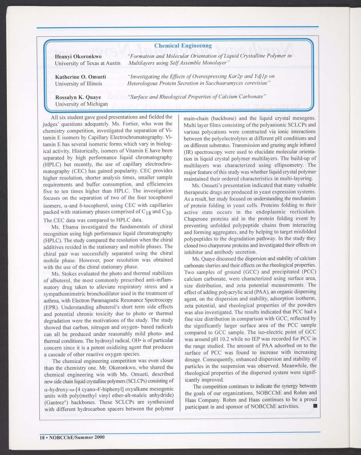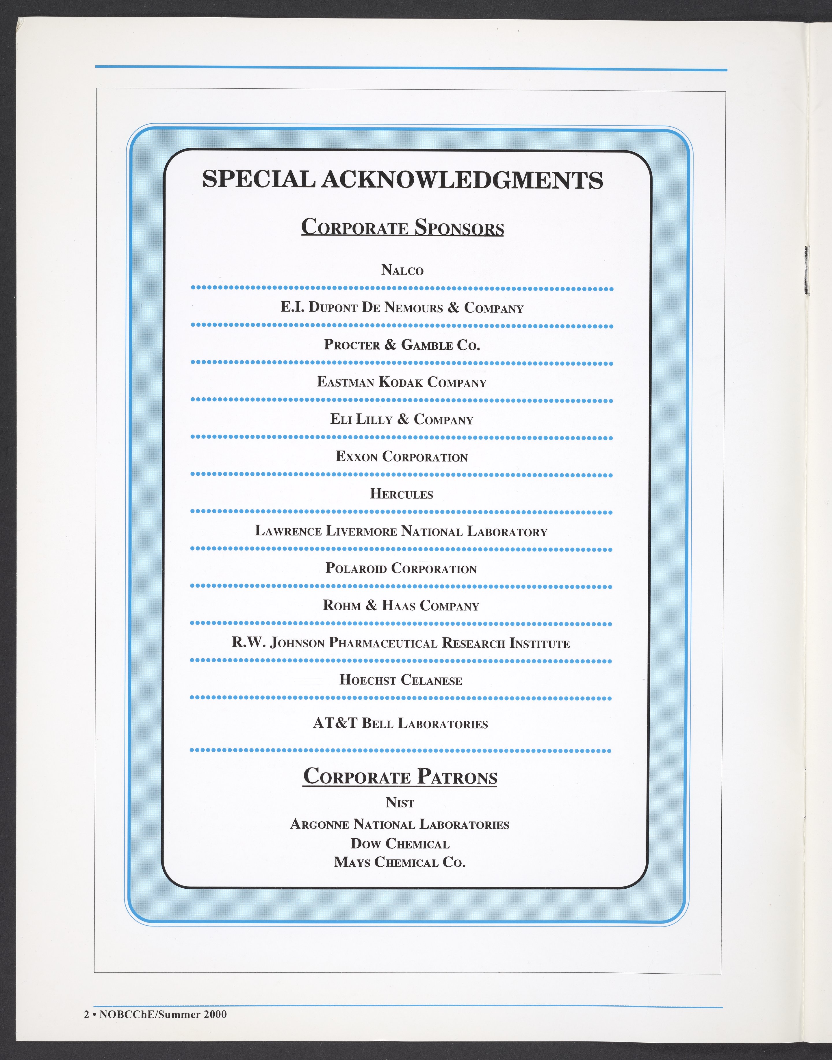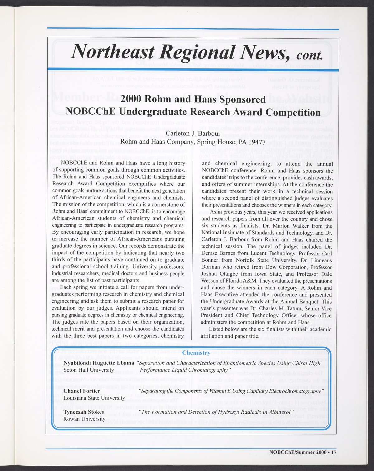 Small JPG1200 x 1544px — 265 KBLarge JPG2880 x 3706px — 3.0 MBFull-sized JPG5472 x 7042px — 11.1 MBOriginal fileTIFF — 5472 x 7042px — 110 MBSummer 2000 issue of NOBCChE News. The enumeration on the cover is an error: this should be volume 30, number 2.