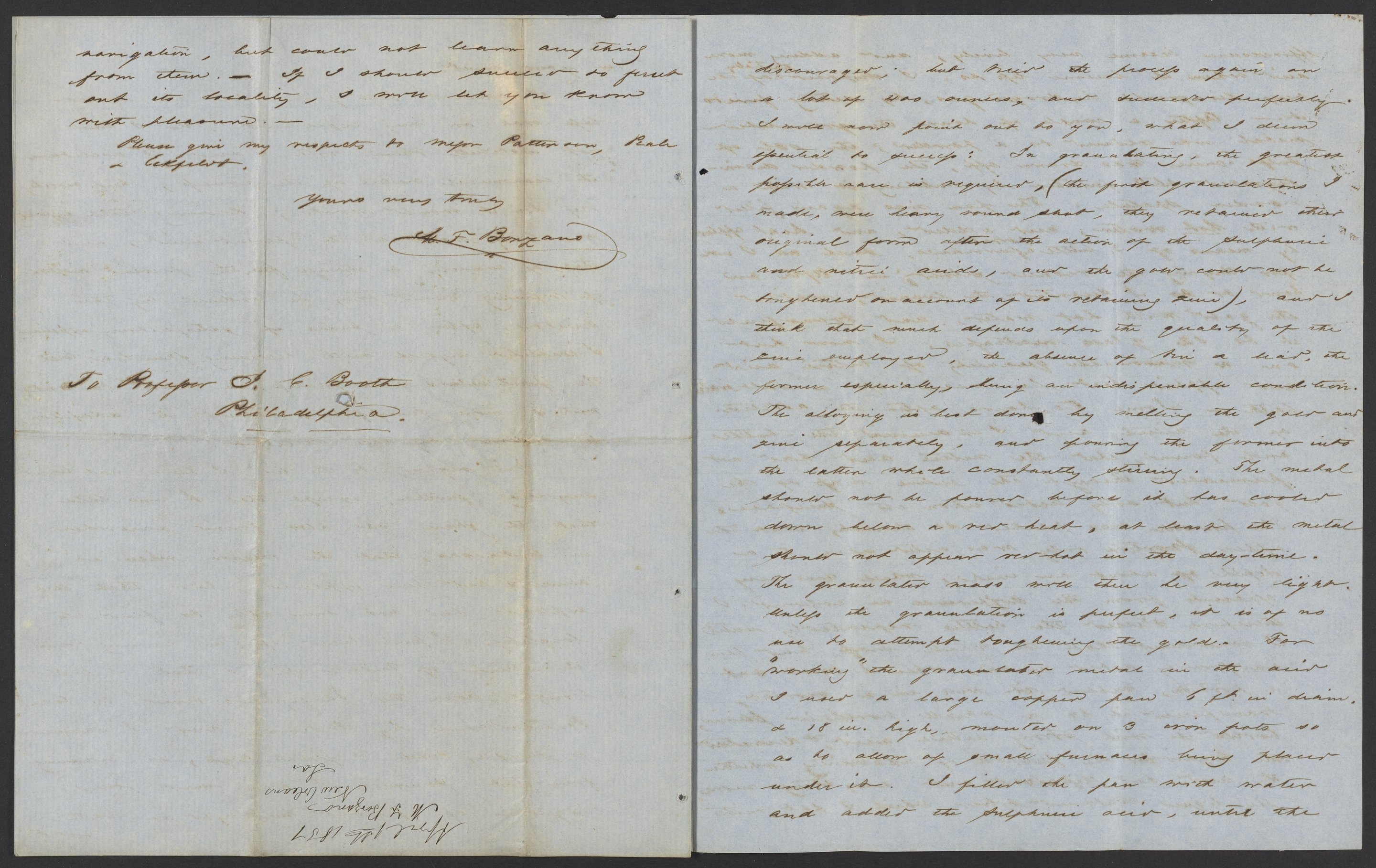 Borzano, M. F. “Letter from M. F. Borzano to James Curtis Booth,” April 1, 1851. Papers of James Curtis Booth, Box 1, Folder 6. Science History Institute. Philadelphia. https://digital.sciencehistory.org/works/enj0s22.