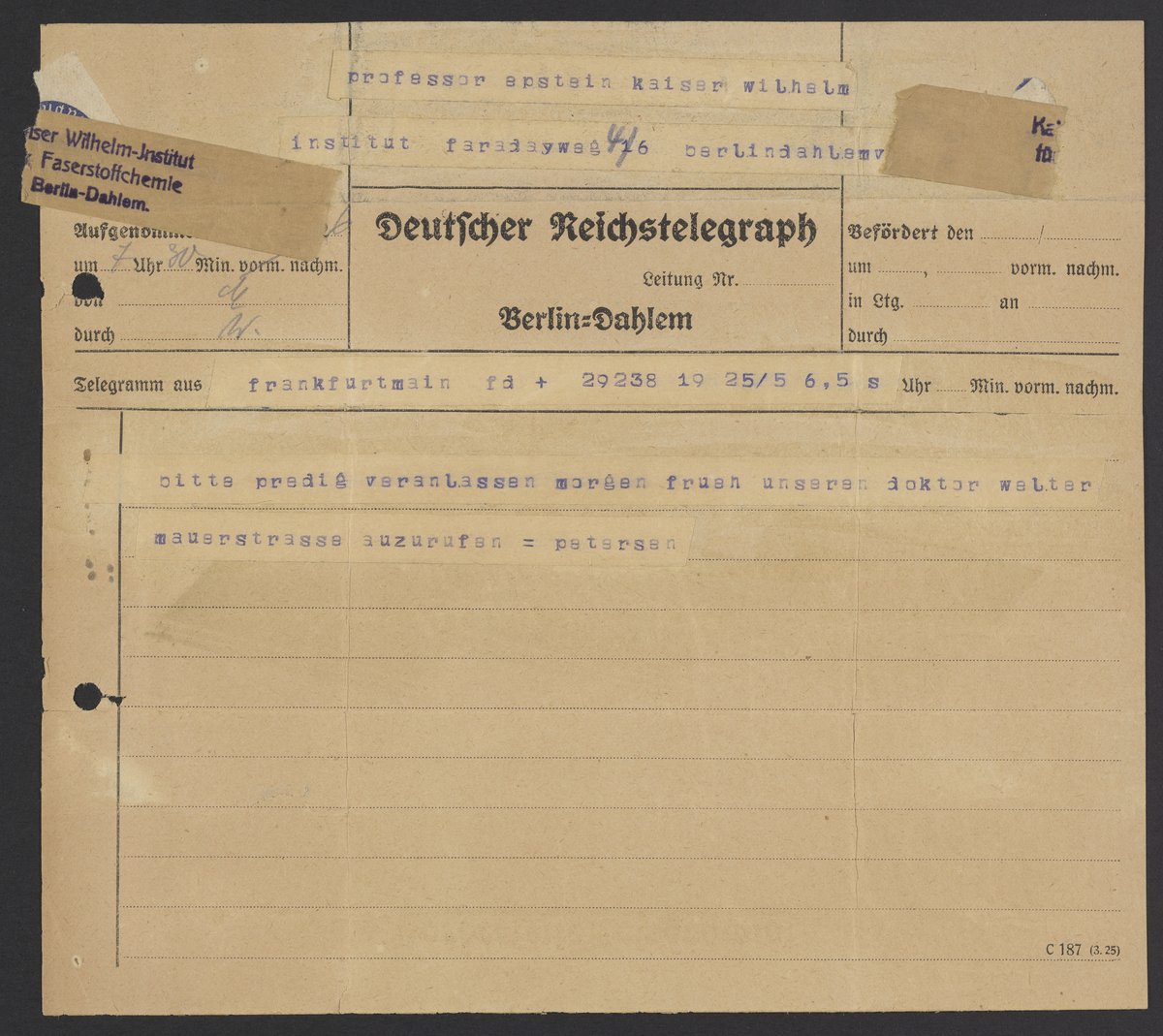 Telegram to Professor Epstein