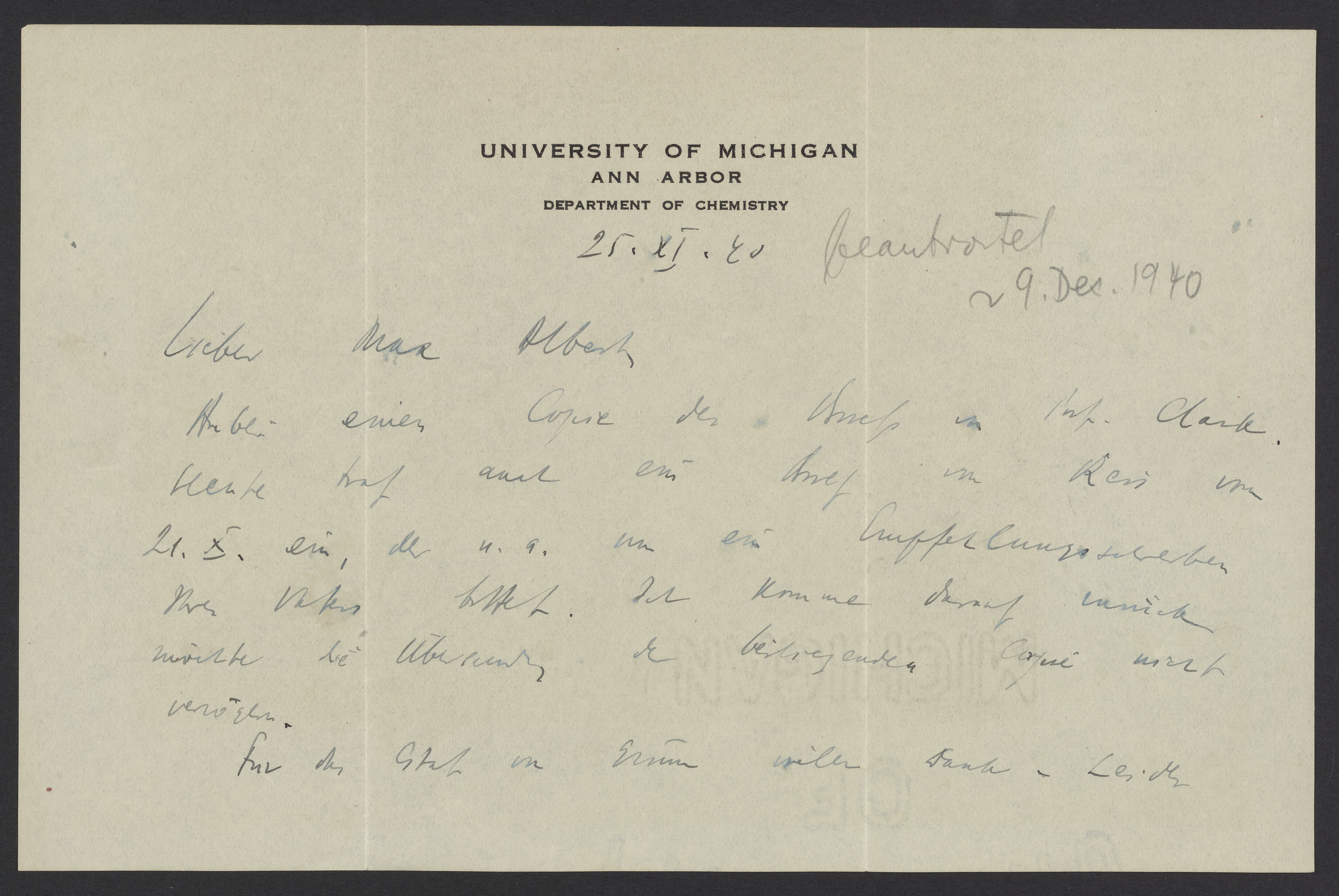 [Max Bredig‘s hand: beantwortet 29. Dec 40)