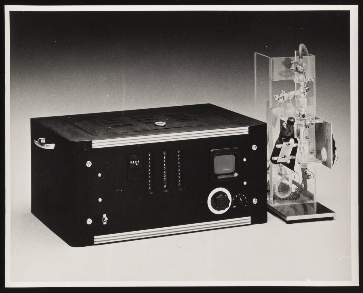 “Coulter Counter Model A Cell Counter,” 1970–1989. Beckman Historical Collection, Box 58, Folder 92. Science History Institute. Philadelphia. https://digital.sciencehistory.org/works/f1881m41k.