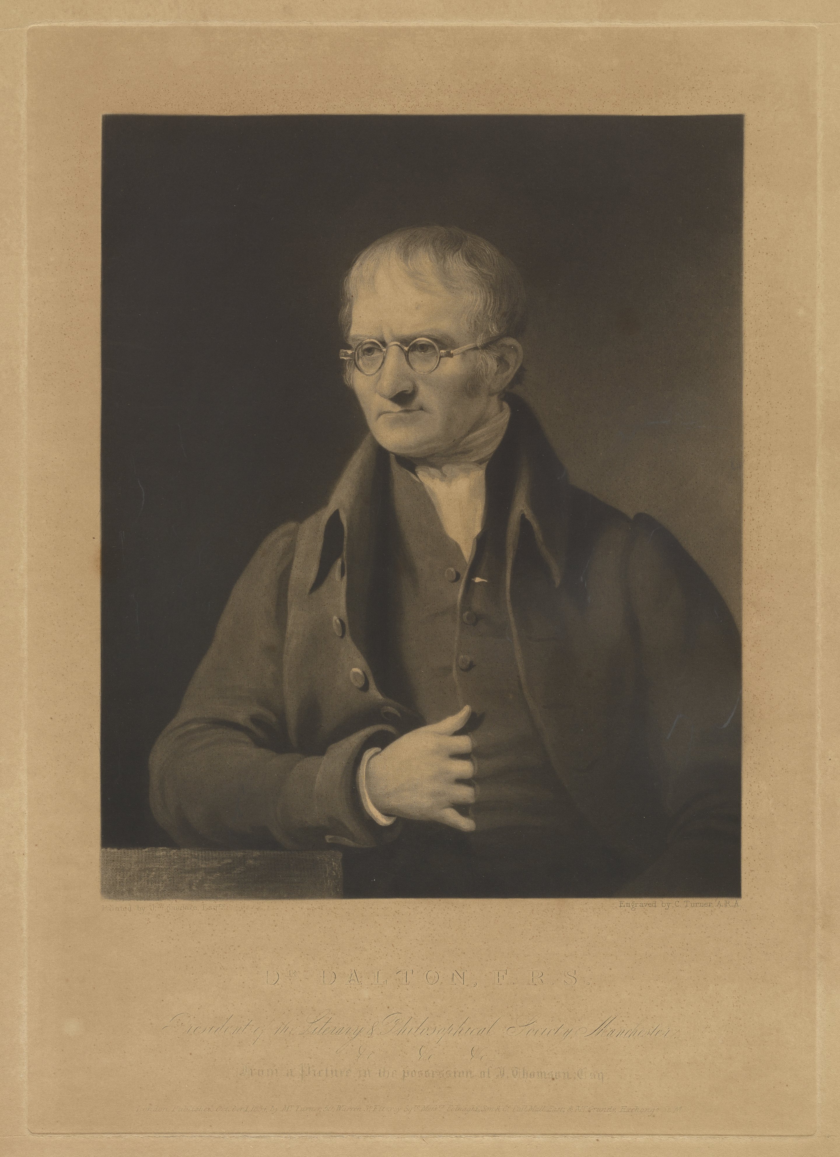 Lonsdale, James. “Portrait Print of Dr. John Dalton, F.R.S.” Paper (fiber product), October 1, 1834. Science History Institute. Philadelphia. https://digital.sciencehistory.org/works/f1881m63m.