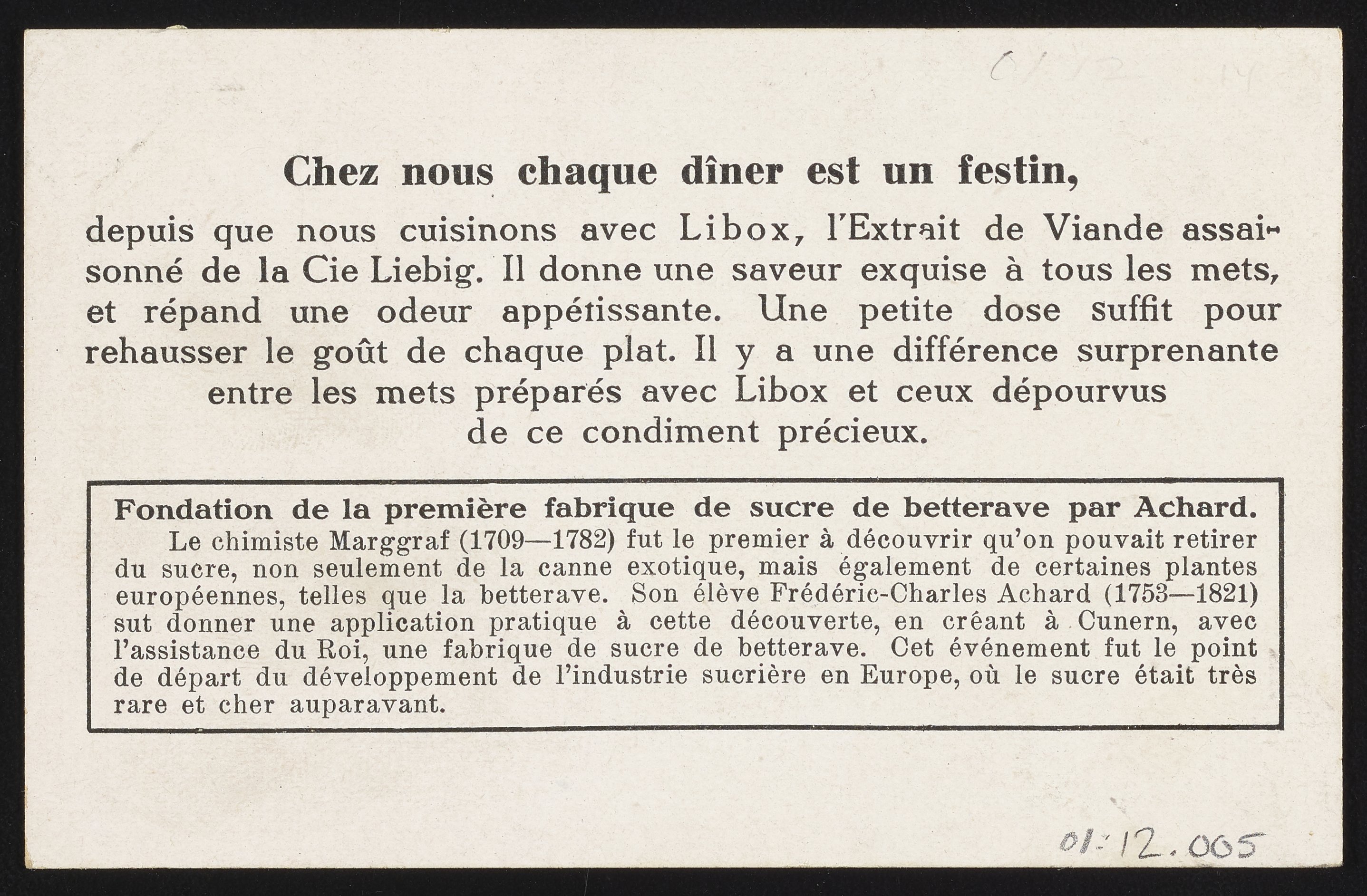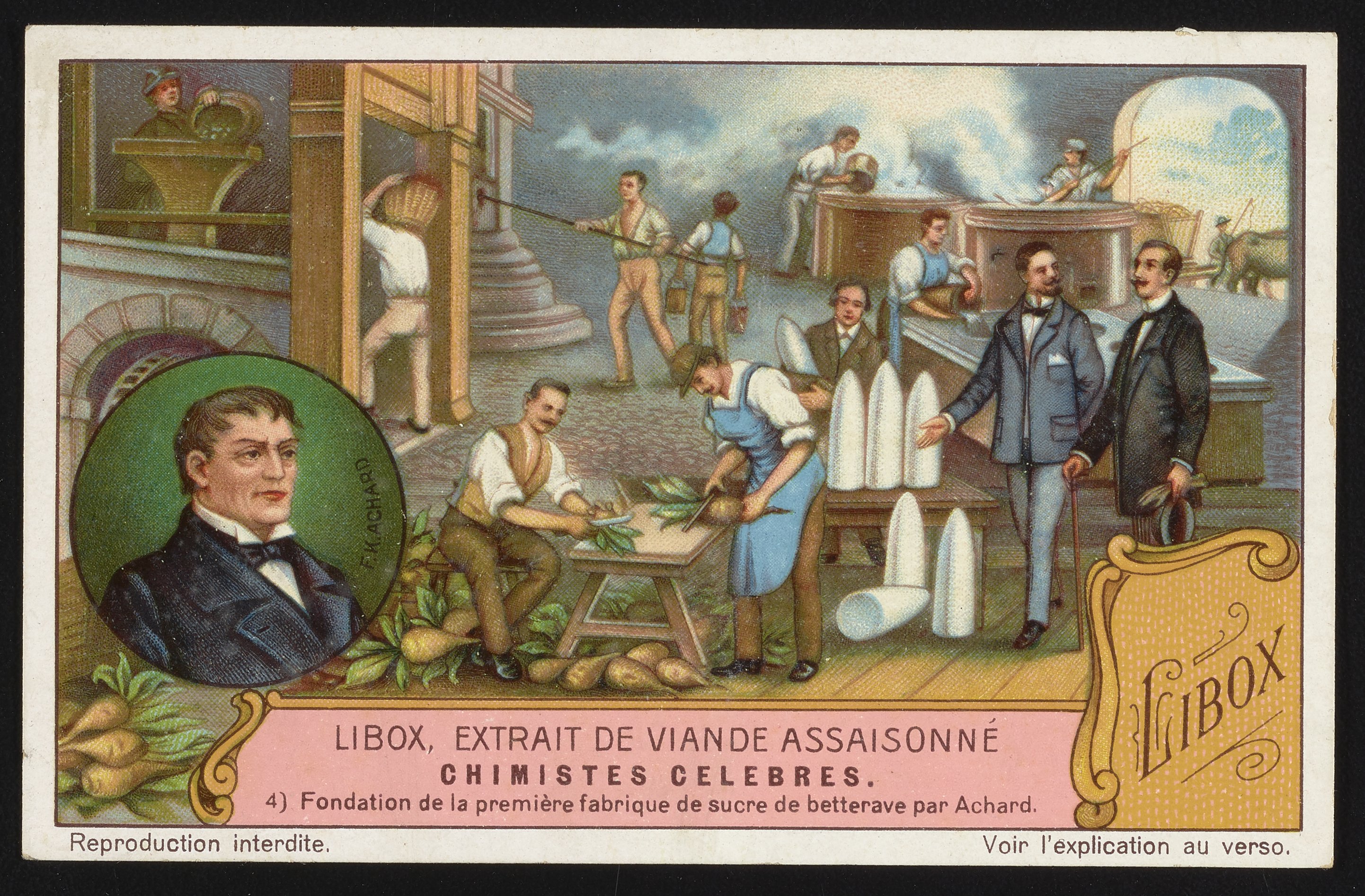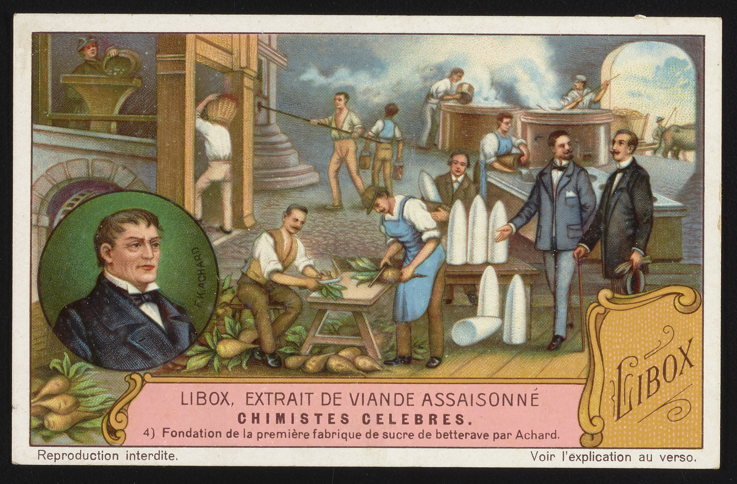 Trade card for Libox, Extrait de Viande Assaisonné [Libox, Seasoned Beef Extract] with Franz Karl Achard