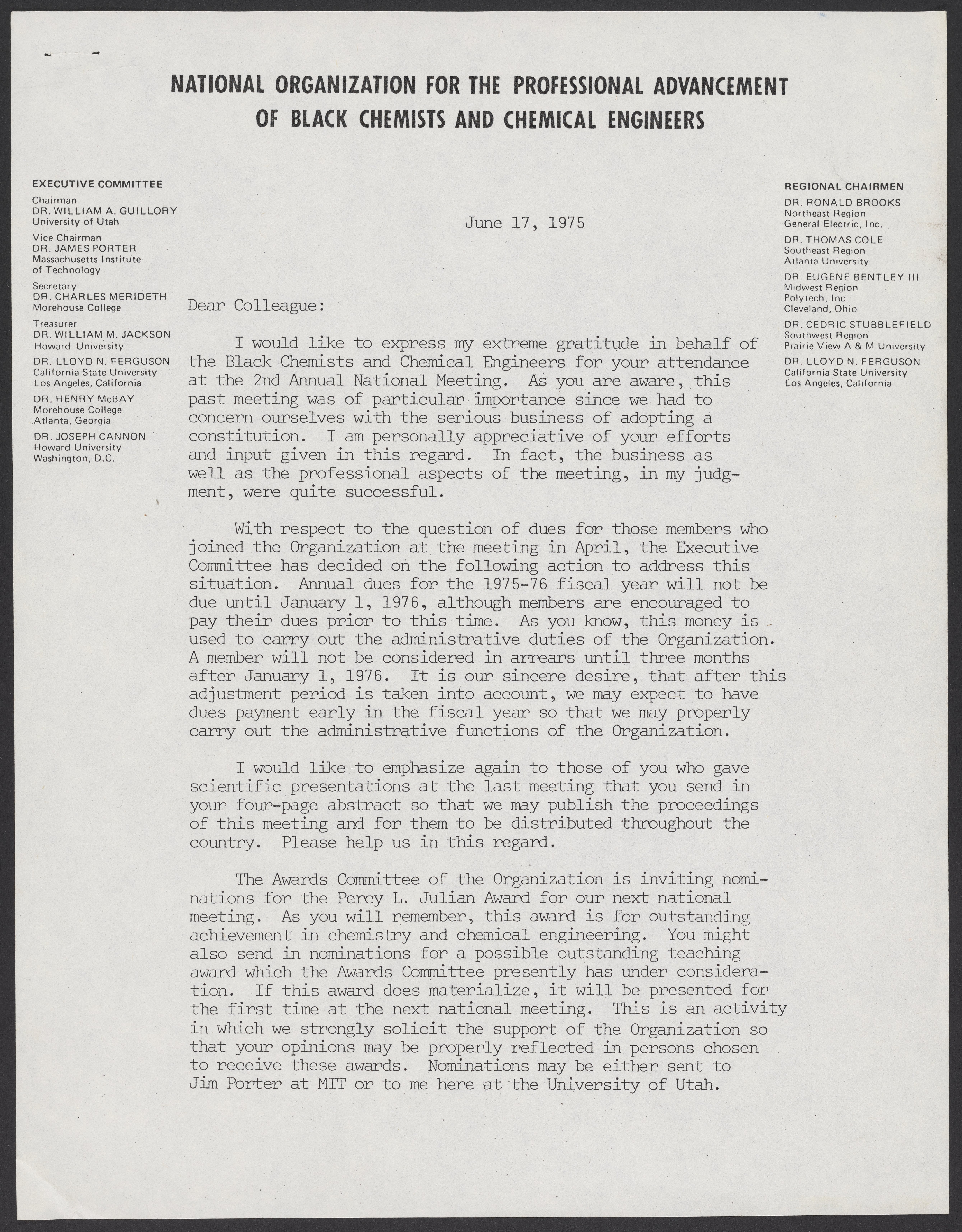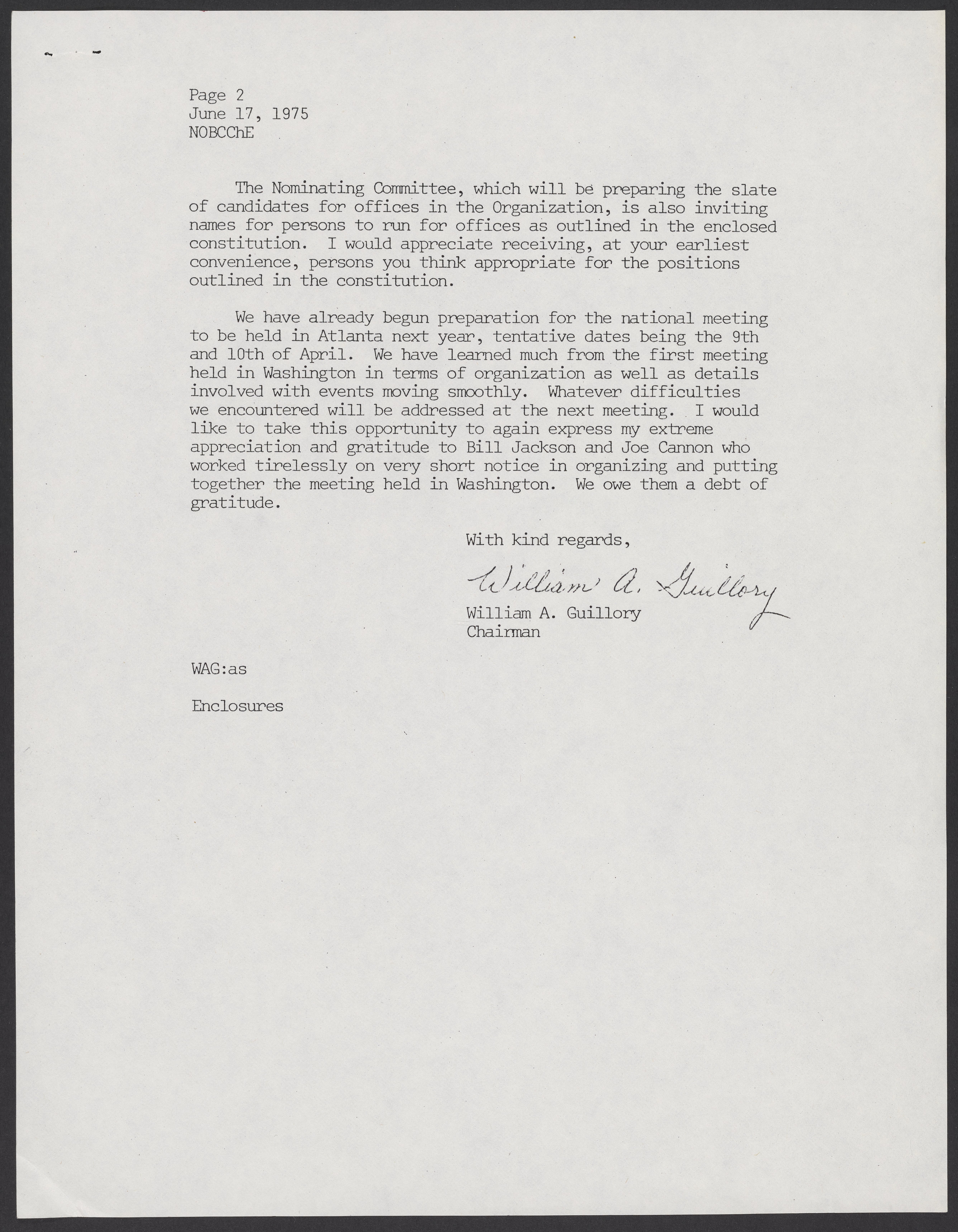 Letter from William A. Guillory, June 17, 1975