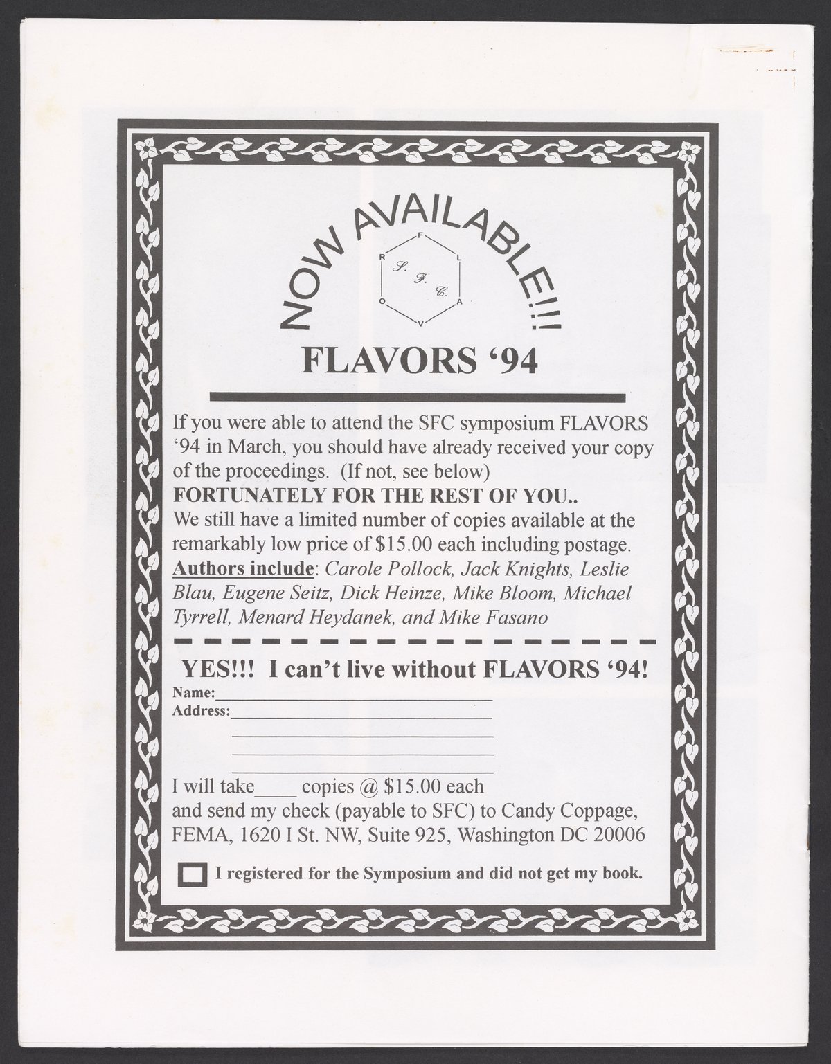 Photographs from the Flavors '94 Symposium