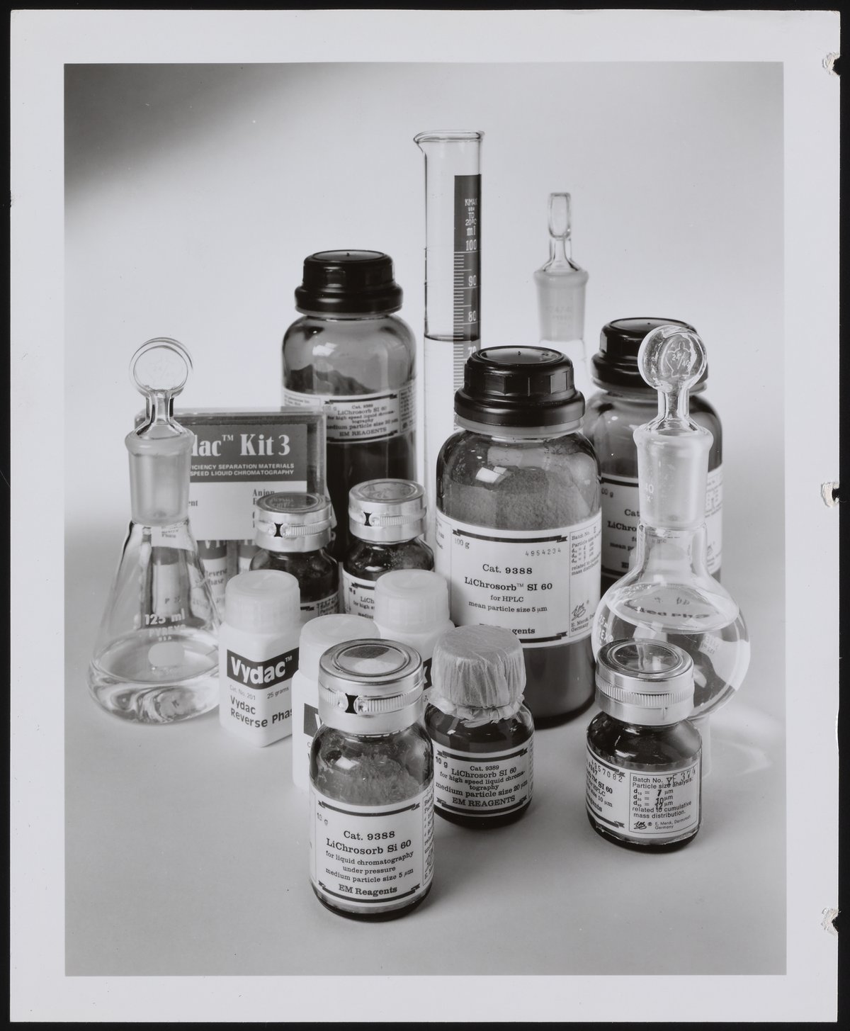 Herrington-Olson Photography. “HPLC Reagents,” circa 1978. Beckman Historical Collection, Box 83. Science History Institute. Philadelphia. https://digital.sciencehistory.org/works/f4752g86z.