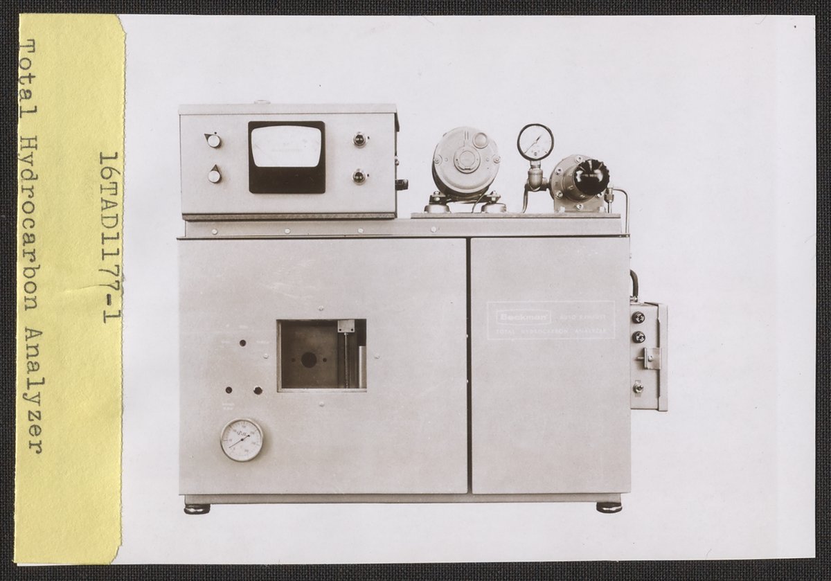 Dietrich, T. A. “Beckman Total Hydrocarbon Analyzer,” n.d. Beckman Historical Collection, Box 84. Science History Institute. Philadelphia. https://digital.sciencehistory.org/works/f4752g98r.
