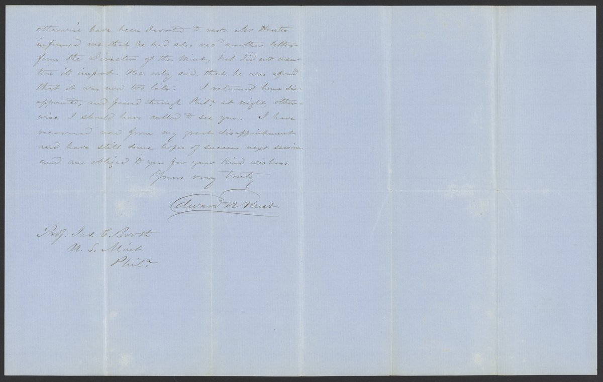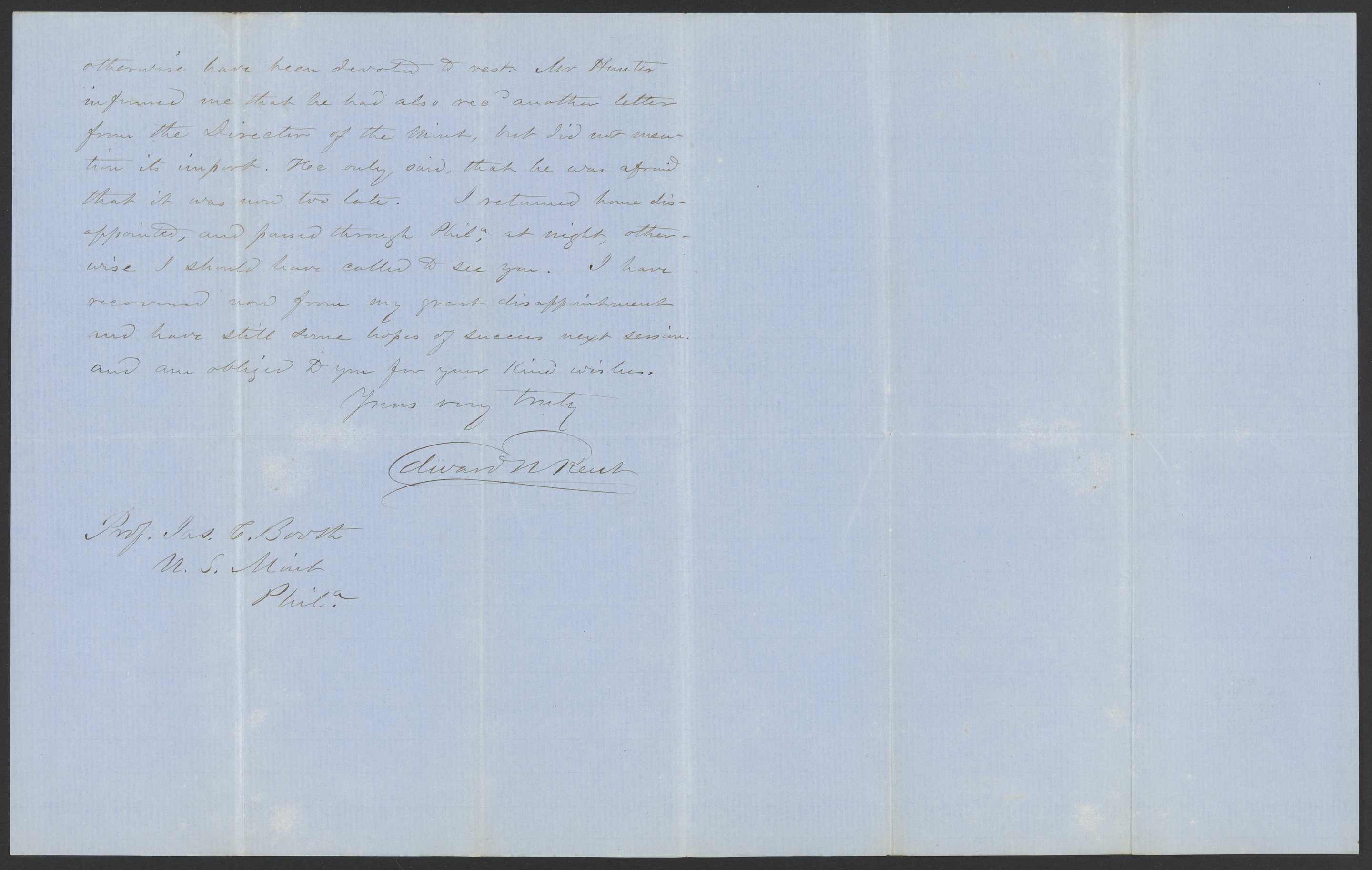 Kent, Edward. “Letter from Edward N. Kent to James Curtis Booth, May 5, 1857,” May 5, 1857. Papers of James Curtis Booth, Box 1, Folder 9. Science History Institute. Philadelphia. https://digital.sciencehistory.org/works/f6wqk3p.