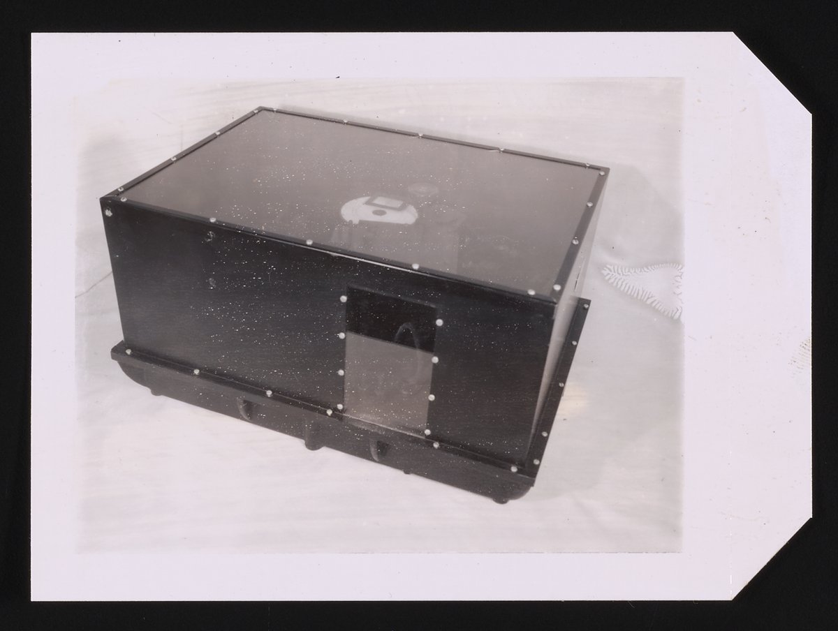 “Beckman IR-1 Spectrophotometer with Glass Lid,” circa 1942. Beckman Historical Collection, Box 55, Folder 79. Science History Institute. Philadelphia. https://digital.sciencehistory.org/works/f7623c57r.