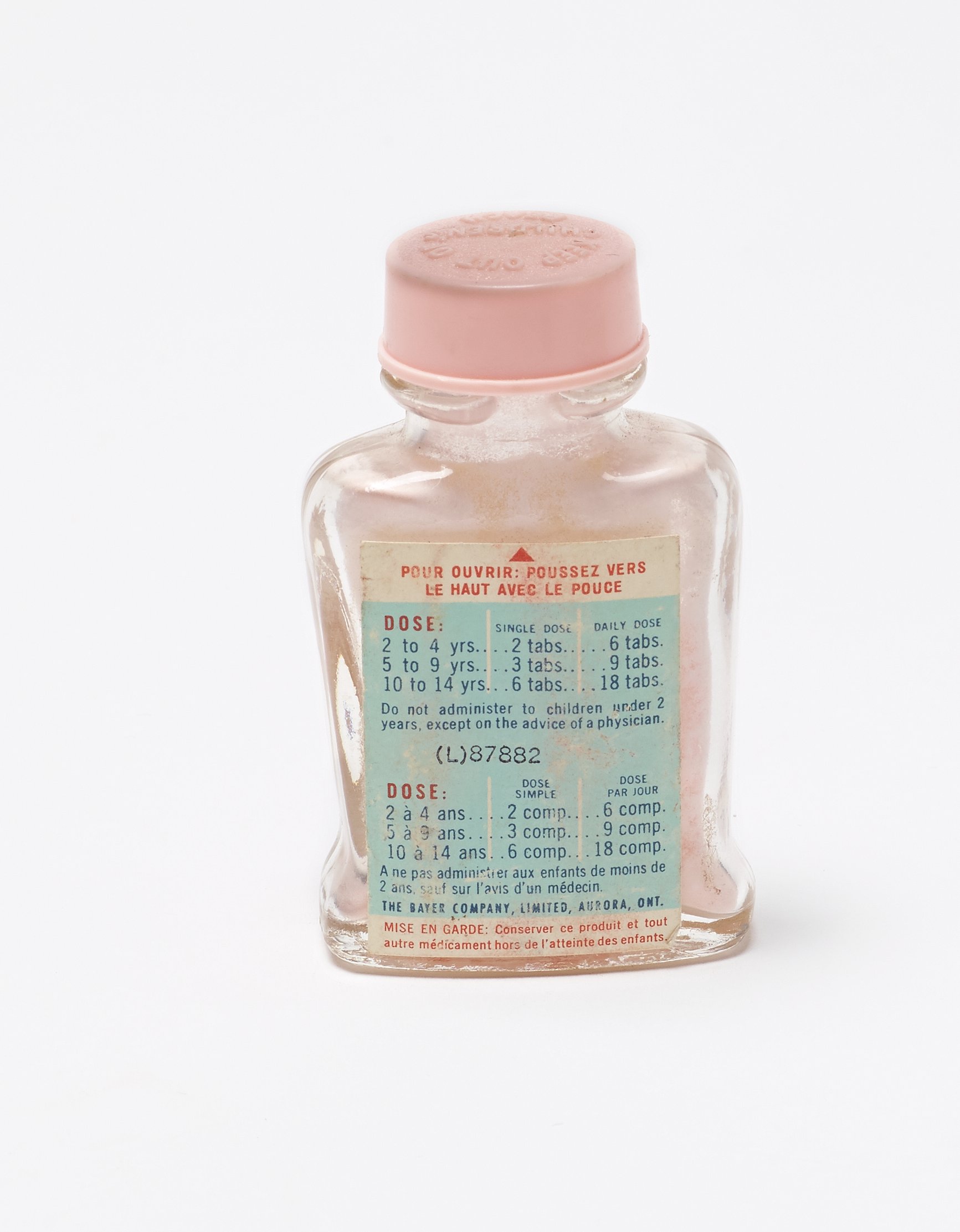 Science History Institute. Bayer Flavoured Children's Size Aspirin Bottle. Photograph, 2017. Science History Institute. Philadelphia. https://digital.sciencehistory.org/works/f7623d081.