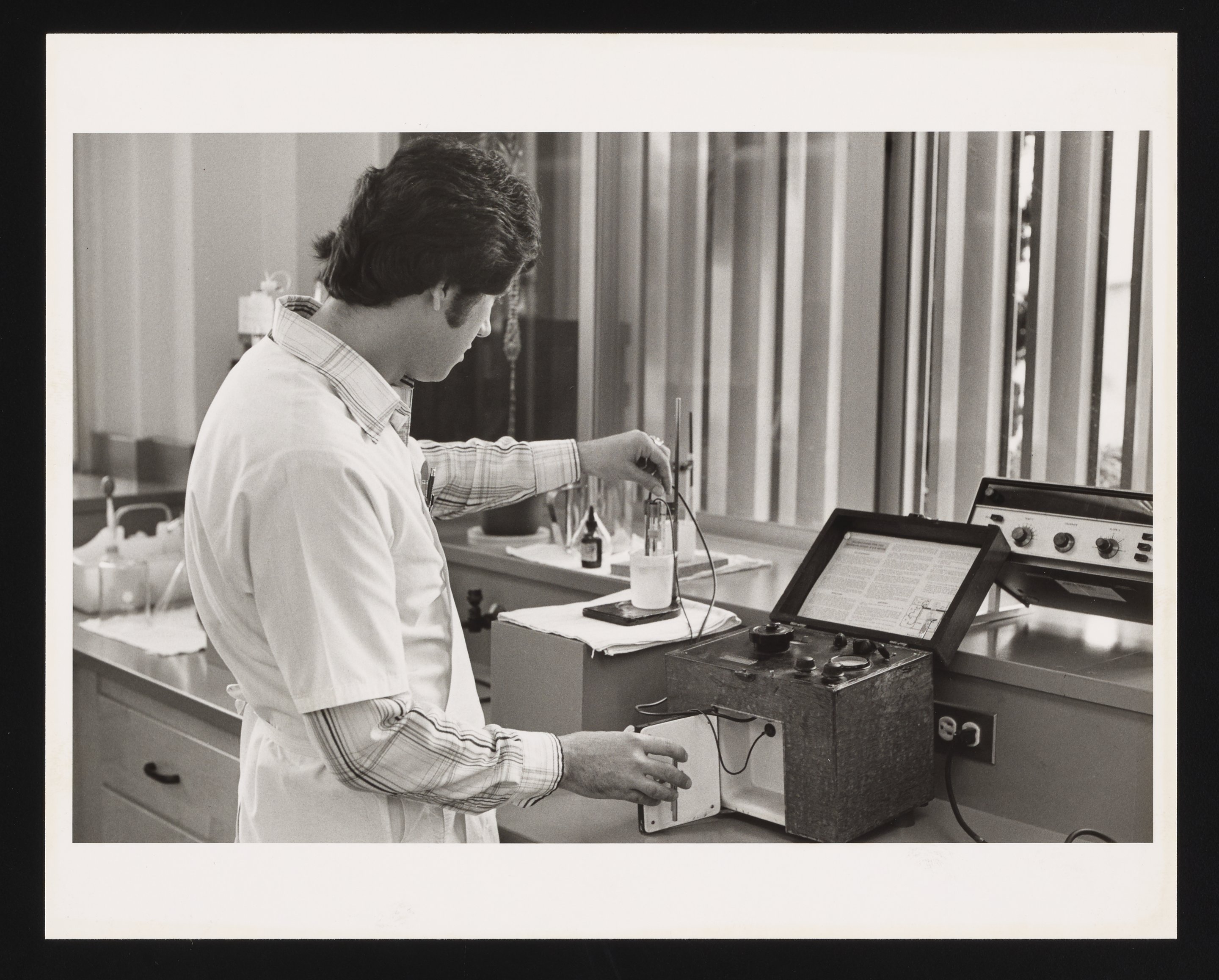 “Unidentified Man Using a Beckman Model G PH Meter,” n.d. Beckman Historical Collection, Box 82. Science History Institute. Philadelphia. https://digital.sciencehistory.org/works/fb494851m.