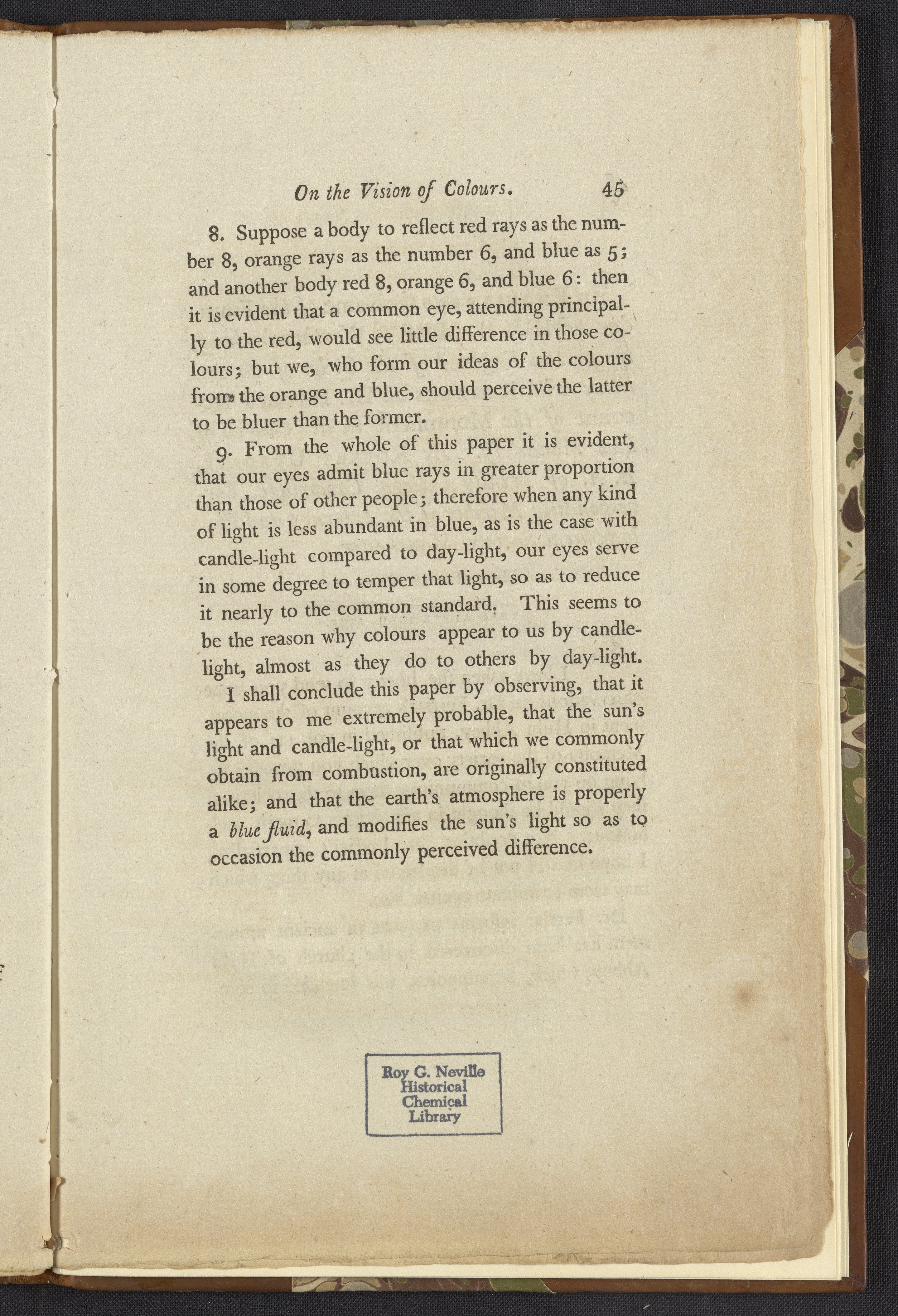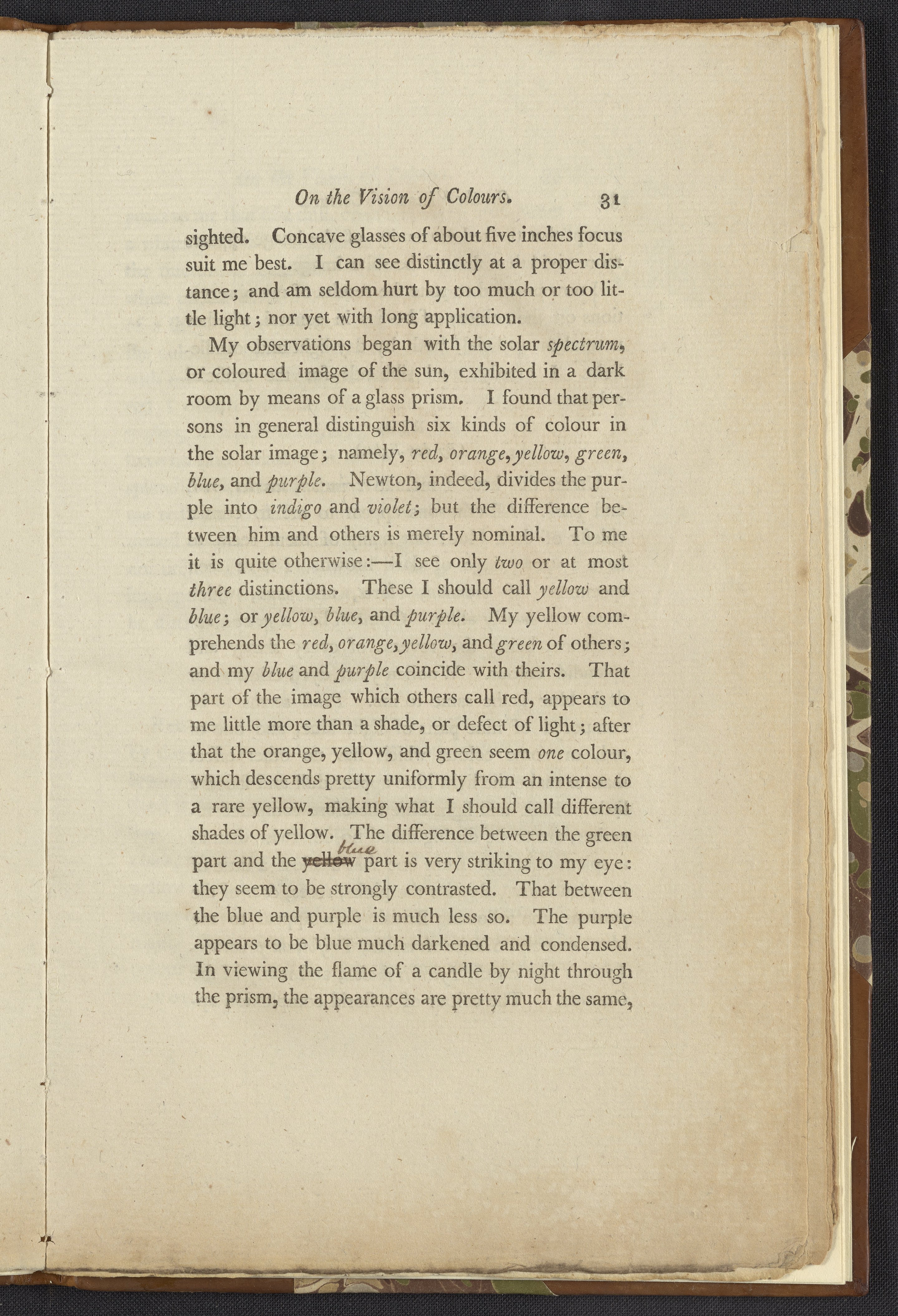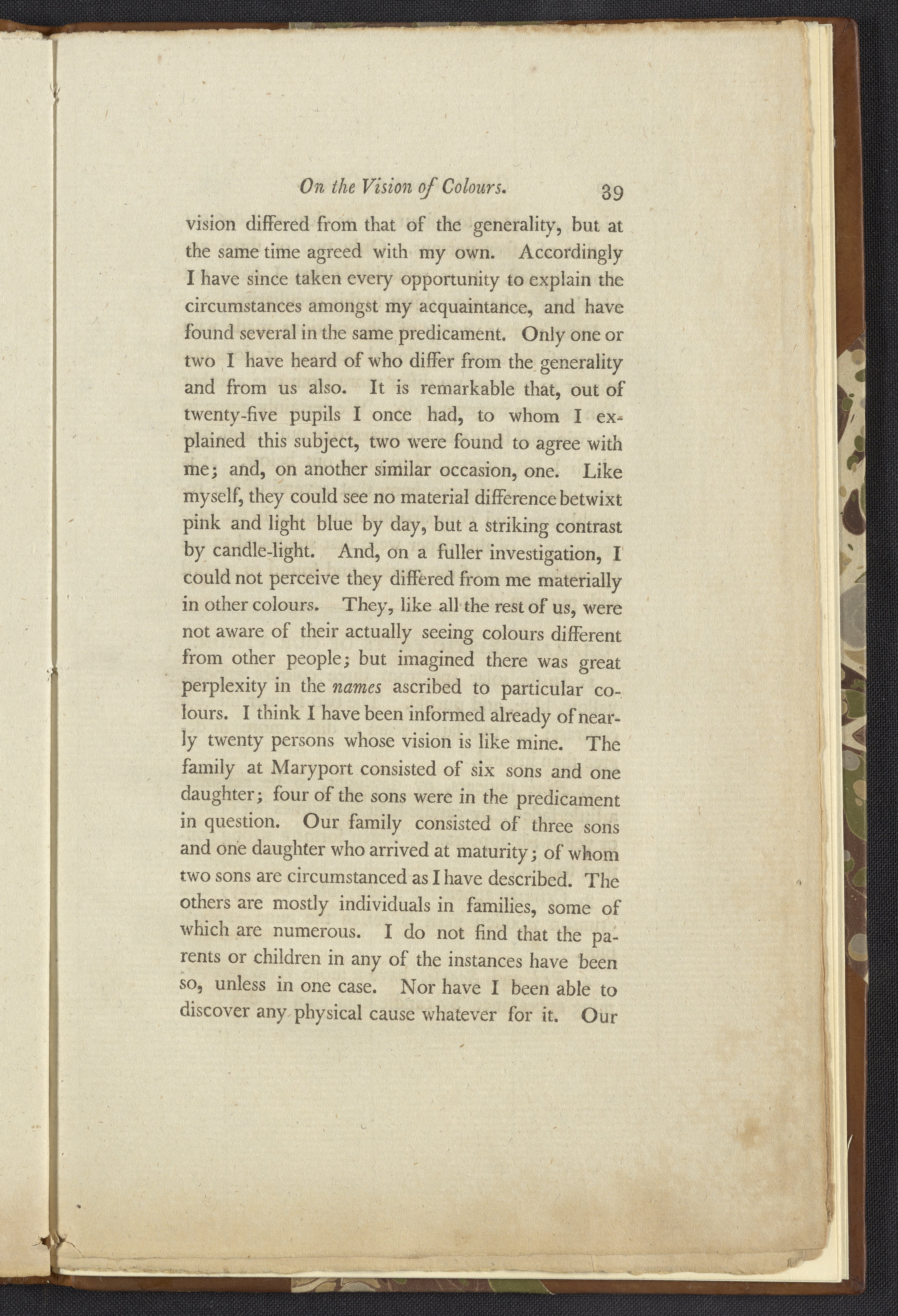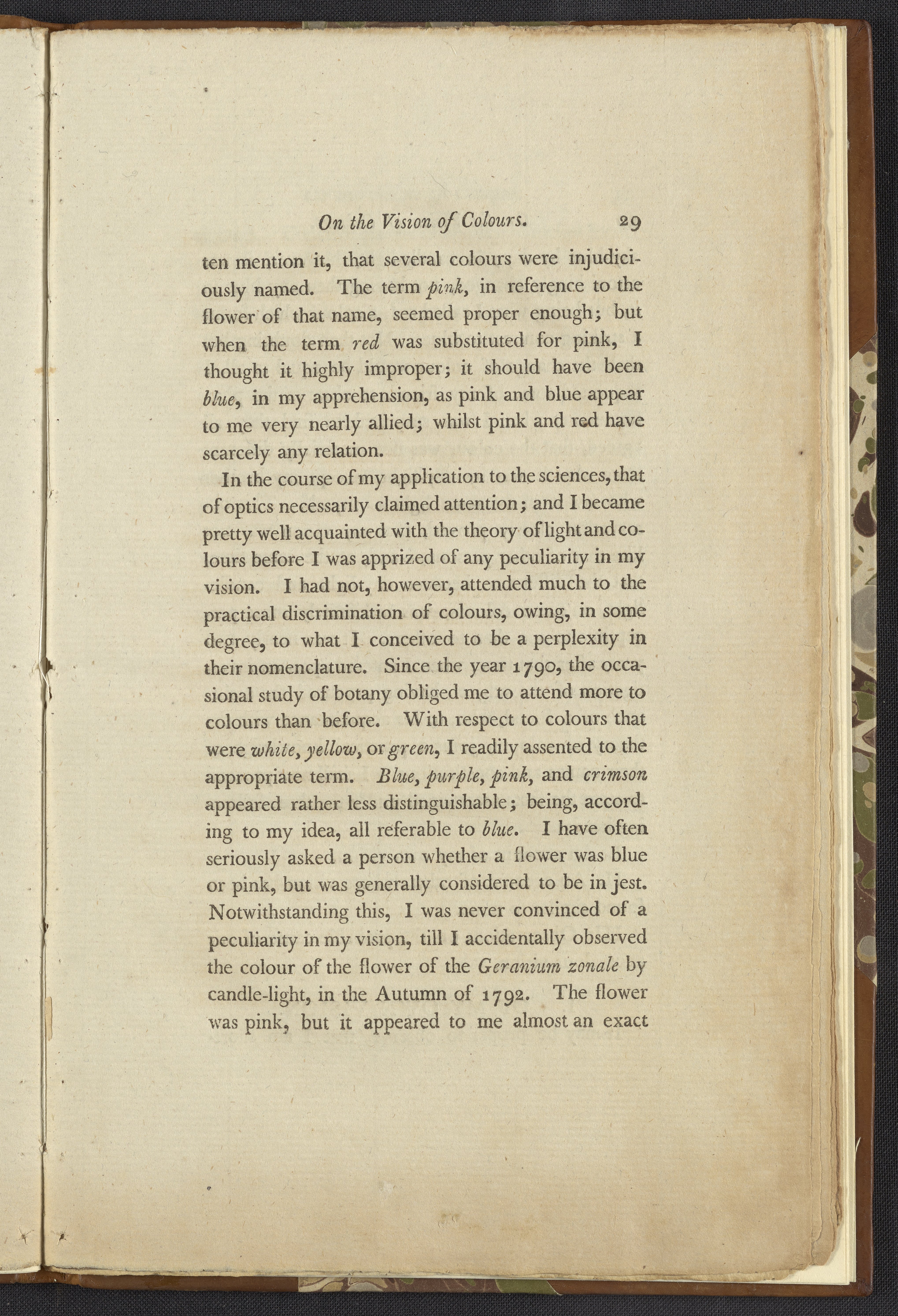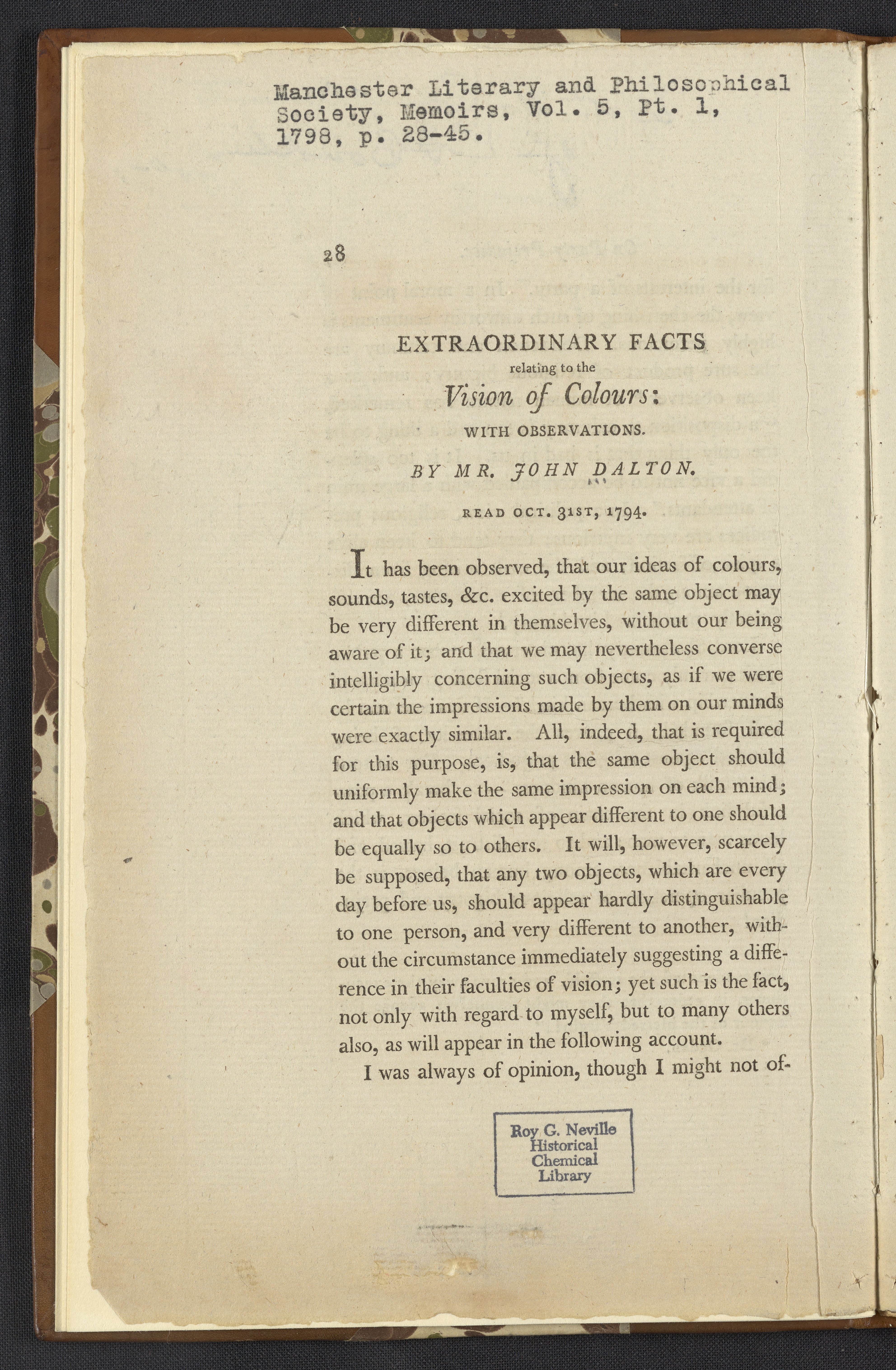 Dalton, John. Extraordinary Facts Relating to the Vision of Colours: With Observations. Manchester, England, 1794. https://digital.sciencehistory.org/works/fb4949523.