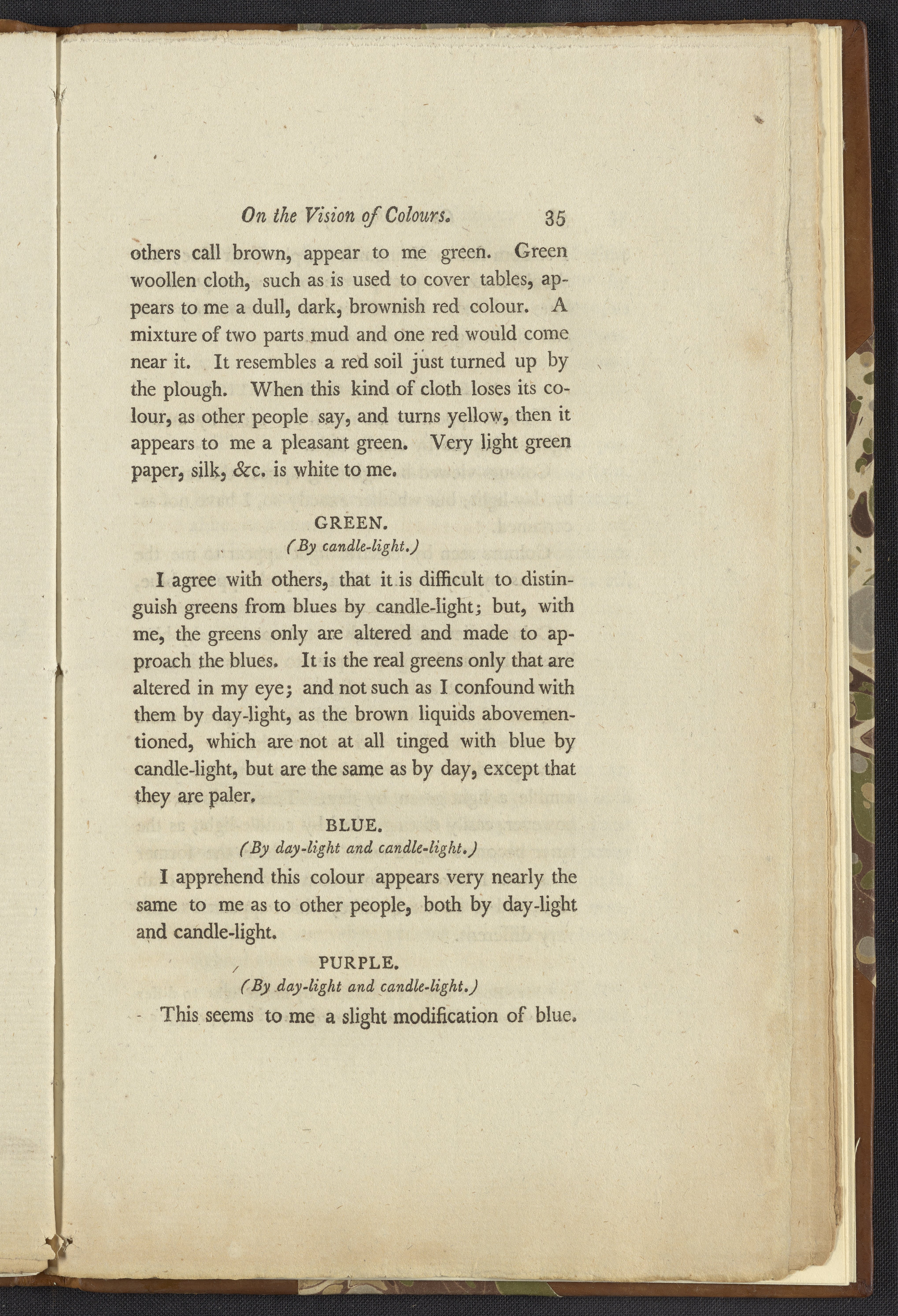 Small JPG1200 x 1834px — 423 KBLarge JPG2880 x 4401px — 2.6 MBFull-sized JPG3968 x 6064px — 4.7 MBOriginal fileTIFF — 3968 x 6064px — 68.9 MBAuthor John Dalton outlines his own red-green color blindness discovered through botanical studies of flower hues. Blank endpapers omitted during digitization.