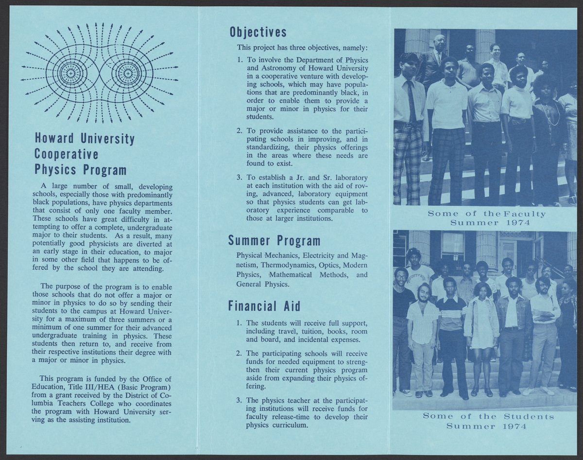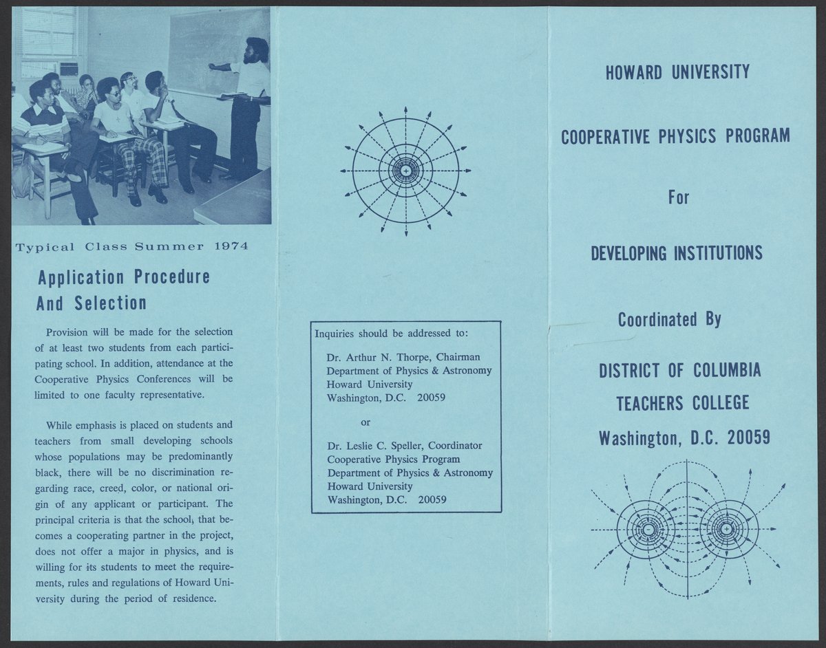 Howard University. “Howard University Cooperative Physics Program for Developing Institutions Brochure,” 1974. William A. Lester, Jr. Papers, Box 5, Folder 7. Science History Institute. Philadelphia. https://digital.sciencehistory.org/works/fb6whhi.