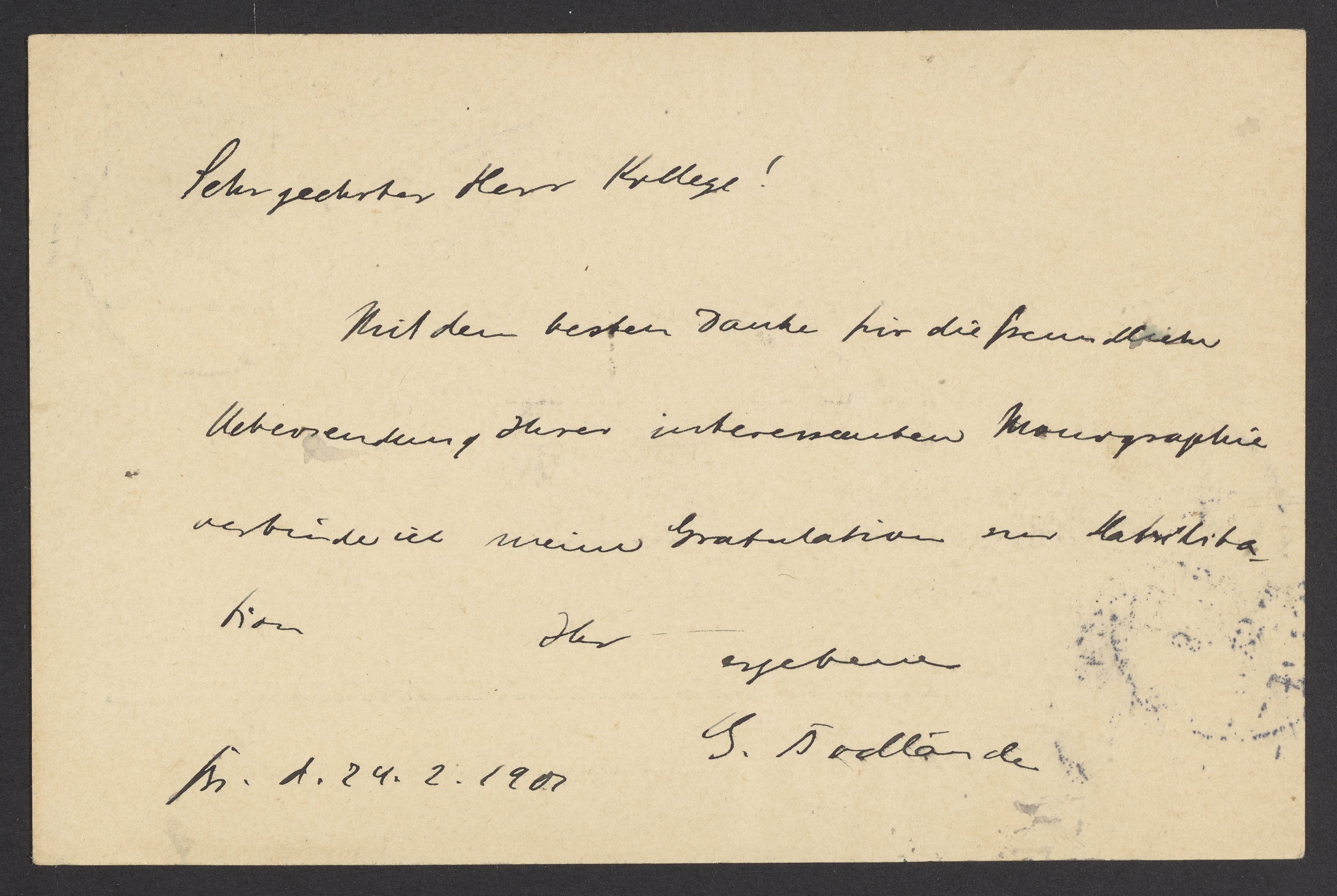 Postcard from Guido Bodländer to Georg Bredig, February 1901
